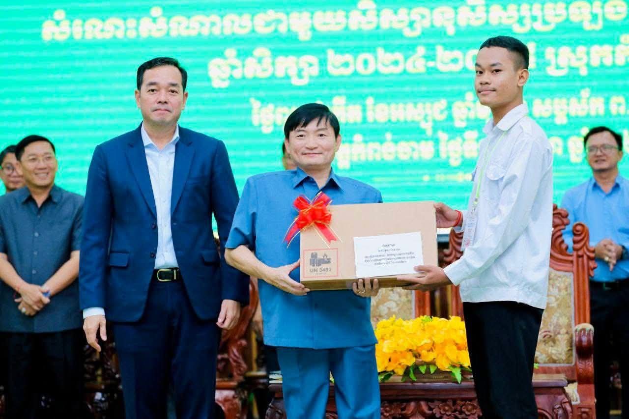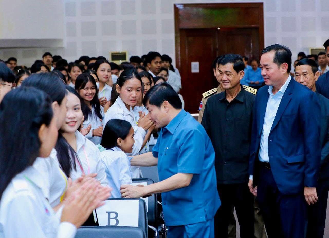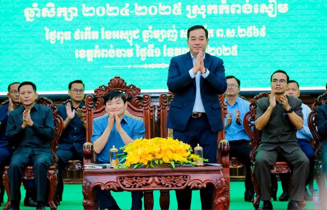 (កំពង់ចាម)៖ នៅព្រឹកថ្ងៃទី ១ ខែតុលា ឆ្នាំ ២០២៥ នេះ ឯកឧត្តម អ៊ុន ចាន់ដា អភិបាល នៃគណៈអភិបាលខេត្តកំពង់ចាម បានអញ្ជើញ ចូលរួមជាគណៈអធិបតីក្នុងពិធីសំណេះសំណាល ជាមួយសិស្សានុសិស្ស និទ្ទេសA និងសិស្សដែលបានប្រឡងមធ្យមសិក្សាទុតិយភូមិក្នុងឆ្នាំ២០២៥ ស្ថិតក្នុងស្រុកកំពង់សៀម ប្រមាណជា ៥០០នាក់ ក្រោមអធិបតីភាព ឯកឧត្តម ហេង សួរ រដ្ឋមន្ត្រីក្រសួងការងារ និងបណ្ដុះបណ្ដាលវិជ្ជាជីវៈ និងជាប្រធានក្រុមការងាររាជរដ្ឋាភិបាលចុះមូលដ្ឋានស្រុកកំពង់សៀម ដែលពិធីនេះធ្វើឡើងនៅសាលសន្និសិទ សាលាខេត្តកំពង់ចាម។