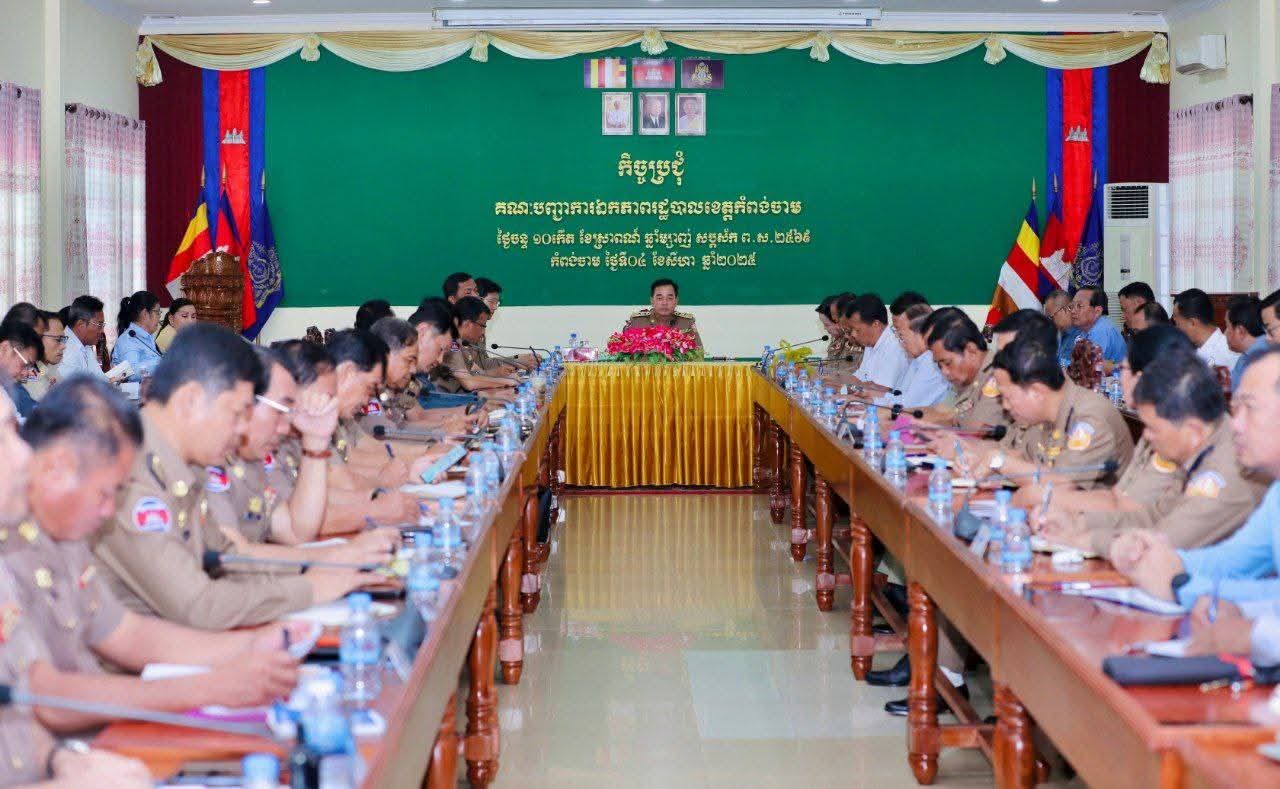 (កំពង់ចាម) :អភិបាលខេត្តកំពង់ចាម ឯកឧត្តម អ៊ុន ចាន់ដា នៅព្រឹកថ្ងៃទី ៤ ខែសីហា ឆ្នាំ ២០២៥ នេះ បានដឹកនាំកិច្ចប្រជុំគណៈបញ្ជាការឯកភាព រដ្ឋបាលខេត្ត ស្ដីអំពីការងារសន្តិសុខ និងការងារសំខាន់ៗ មួយចំនួនទៀត ។