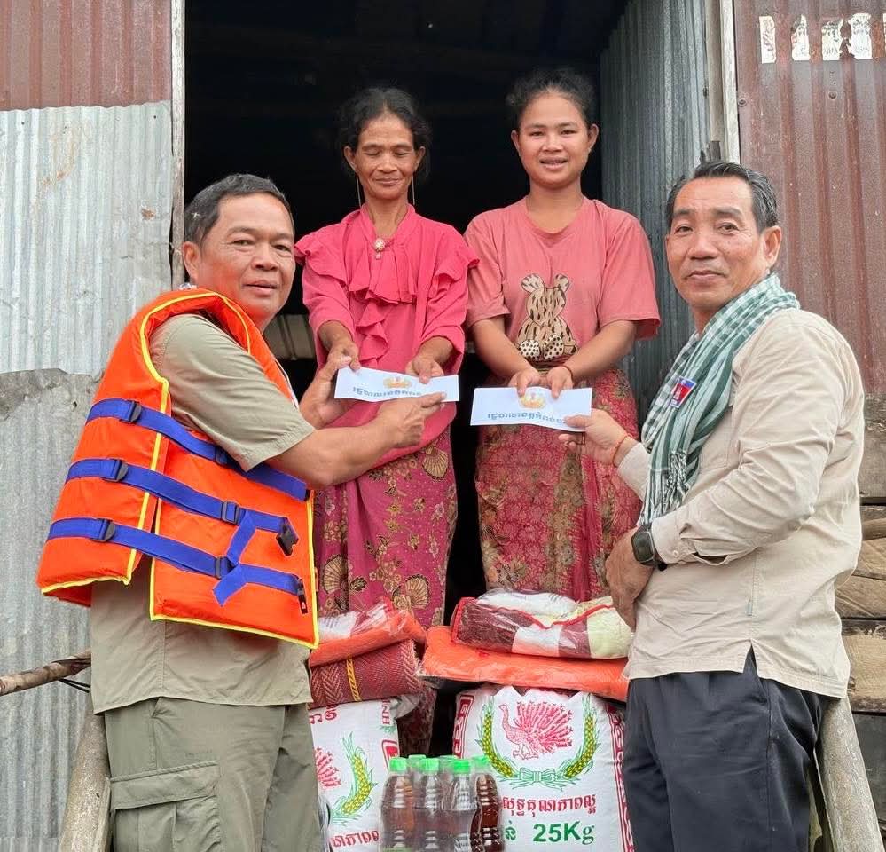 (កំពង់ចាម) : ឯកឧត្តម គន់ សុភា អភិបាលរងខេត្ត តំណាងឯកឧត្តម អ៊ុន ចាន់ដា អភិបាលនៃគណៈអភិបាលខេត្ត និងជាប្រធានគណៈកម្មាធិការគ្រប់គ្រងគ្រោះមហន្តរាយខេត្តកំពង់ចាម អមដំណើរដោយមន្ត្រីពាក់ព័ន្ធ និងអាជ្ញាធរ មូលដ្ឋាន បានចុះសួរសុខទុក្ខ និងនាំអំណោយ សង្គ្រោះបន្ទាន់ចែកជូនប្រជាពលរដ្ឋ ចំនួន ៦៦គ្រួសារ ដែលរងផលប៉ះពាល់ដោយសារគ្រោះ ទឹកជំនន់ នៅភូមិវត្ត ឃុំទួលព្រះឃ្លាំង ស្រុកស្ទឹងត្រង់ នាព្រឹកថ្ងៃទី៣ ខែតុលា ឆ្នាំ២០២៥។