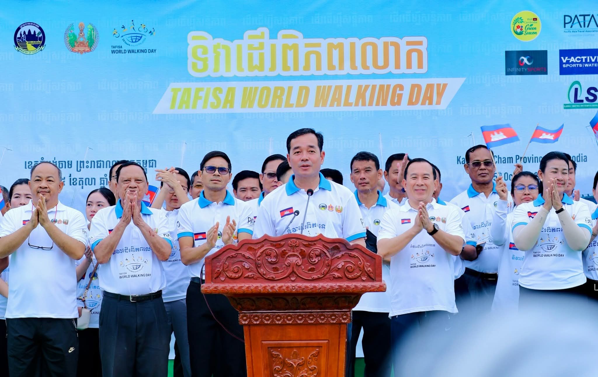 ស្ថិតក្នុងឱកាសនោះ ឯកឧត្តម អ៊ុន ចាន់ដា អភិបាលខេត្តកំពង់ចាម បានមានប្រសាសន៍ថា ជំនួសមុខបងប្អូនប្រជាពលរដ្ឋខេត្តកំពង់ចាមទាំងមូល សូមថ្លែងអំណរគុណយ៉ាងជ្រាលជ្រៅចំពោះក្រសួងទេសចរណ៍ ដែលបានផ្តល់ឱកាសឱ្យខេត្តកំពង់ចាម បានធ្វើជាម្ចាស់ផ្ទះគ្រប់គ្រងរៀបចំទិវាដើរពិភពលោកនាឆ្នាំនេះ បន្ទាប់ពីខេត្តព្រៃវែង ដែលបានធ្វើជាម្ចាស់ផ្ទះកាលពីឆ្នាំ២០២៣ កន្លងទៅ។