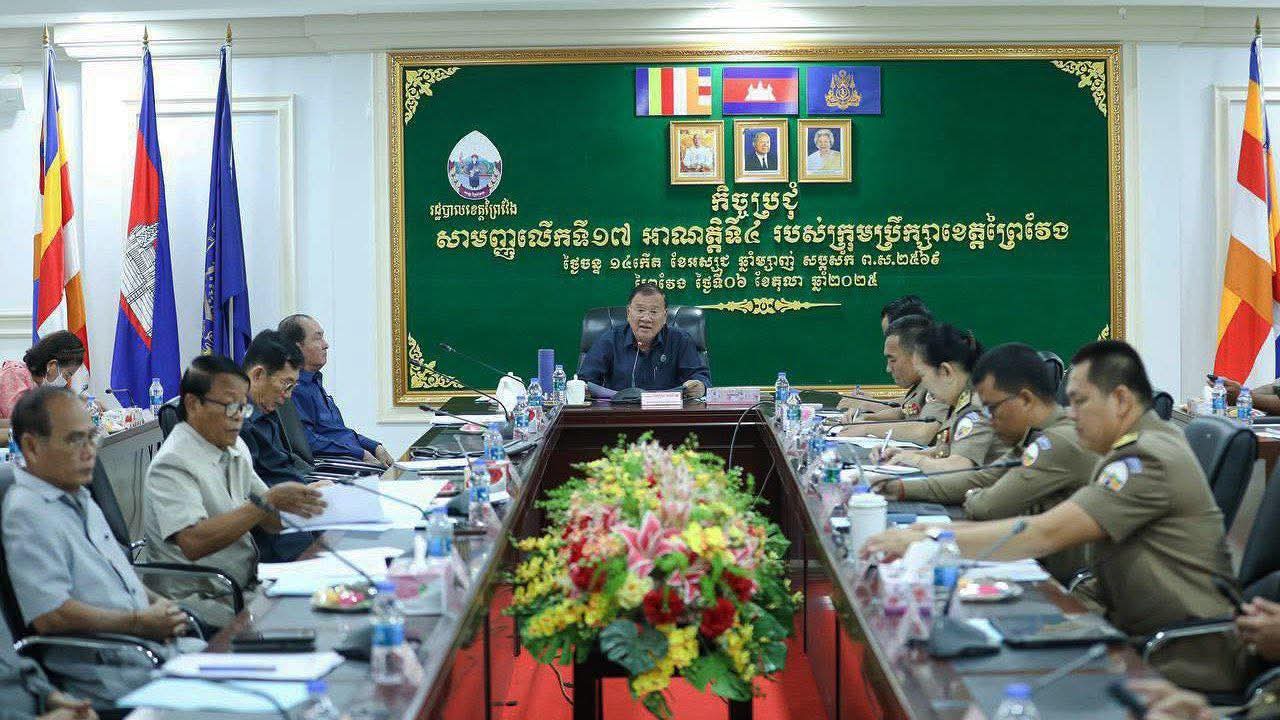(ព្រៃវែង) :ព្រឹកថ្ងៃទី០៦ ខែតុលា ឆ្នាំ២០២៥ ឯកឧត្ដម ស្បោង សារ៉ាត ប្រធានក្រុមប្រឹក្សាខេត្ត និងលោក ហុី ធួក អភិបាលរងខេត្ត តំណាងដ៏ខ្ពង់ខ្ពស់ ឯកឧត្តម សួន សុម៉ាលីន អភិបាល នៃគណៈអភិបាលខេត្តព្រៃវែង បានអញ្ជើញដឹកនាំកិច្ចប្រជុំសាមញ្ញលើកទី១៧ អាណត្តិទី៤ របស់ក្រុមប្រឹក្សាខេត្តព្រៃវែង នៅសាលាខេត្តព្រៃវែង។
