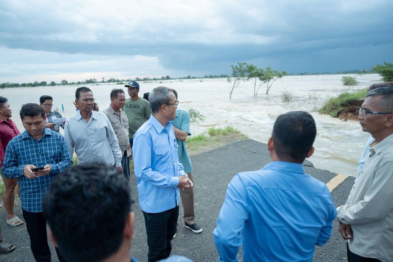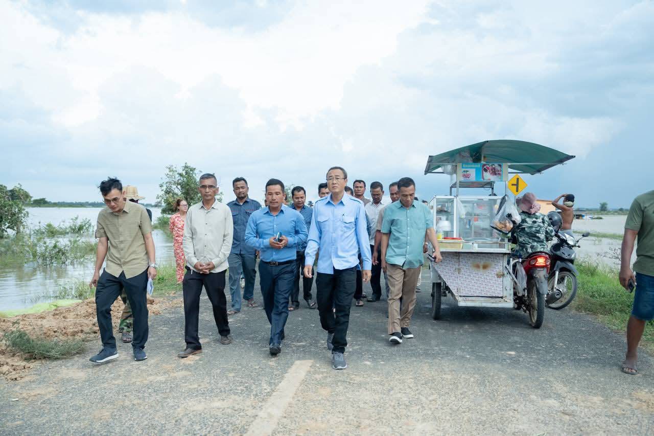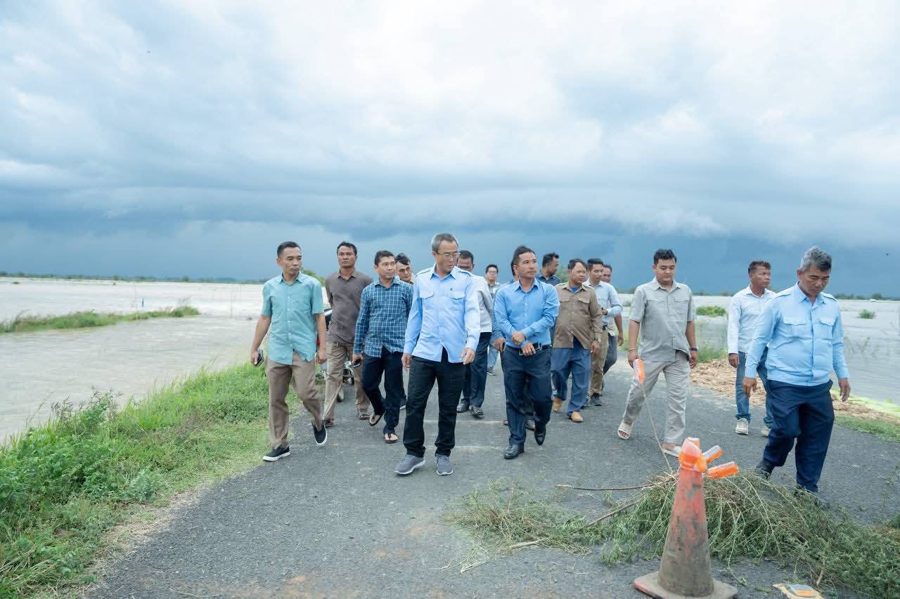 (ព្រៃវែង) :នារសៀលថ្ងៃអាទិត្យ ទី៦ ខែតុលា ឆ្នាំ២០២៥នេះ ឯកឧត្តម សួន សុម៉ាលីន អភិបាល នៃគណៈ អភិបាលខេត្តព្រៃវែង រួមជាមួយ ឯកឧត្តមអភិបាលរងខេត្តនាយក នាយករងរដ្ឋបាលសាលាខេត្ត មន្ទីរជំនាញ អាជ្ញាធរស្រុក និងឃុំ ព្រមទាំងអ្នកពាក់ព័ន្ធ បានអញ្ជើញចុះពិនិត្យតាមដានស្ថានភាពផ្លូវដែលកំពុងរងផល់ប៉ះពាល និងខូចខាតដោយទឹកជំនន់ ចាប់ពីចំណុចភូមិតាំងស្នា ឃុំរការ ទៅភូមិមេសរប្រចាន់ ឃុំមេសរប្រចាន់ ស្រុកពារាំ ខេត្តព្រៃវែង។