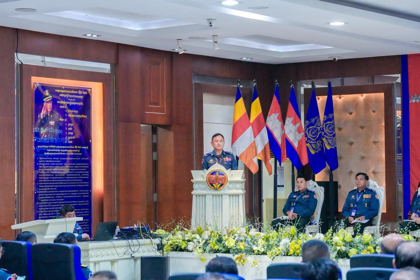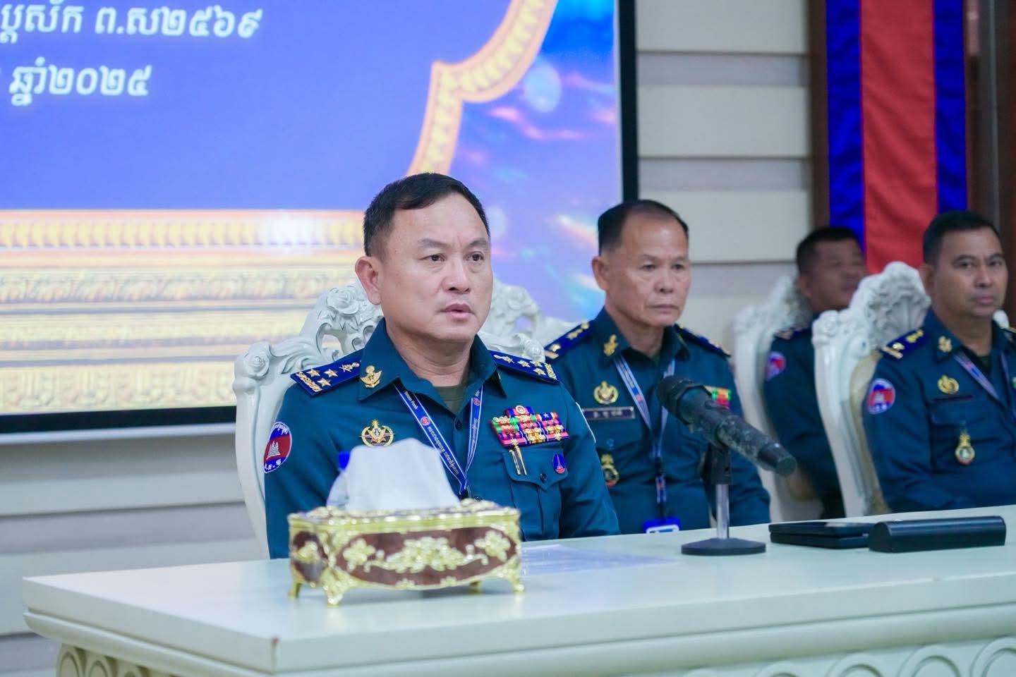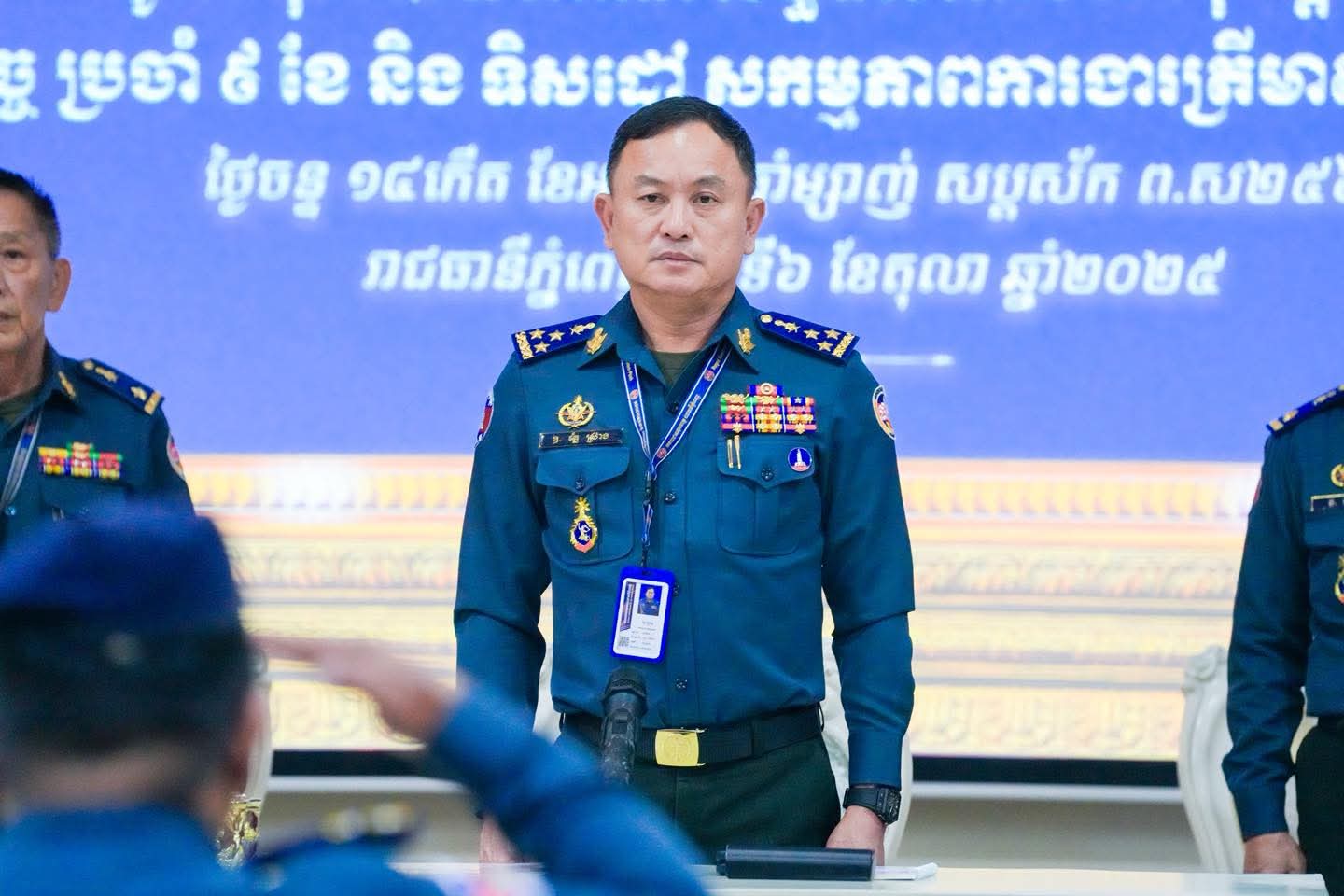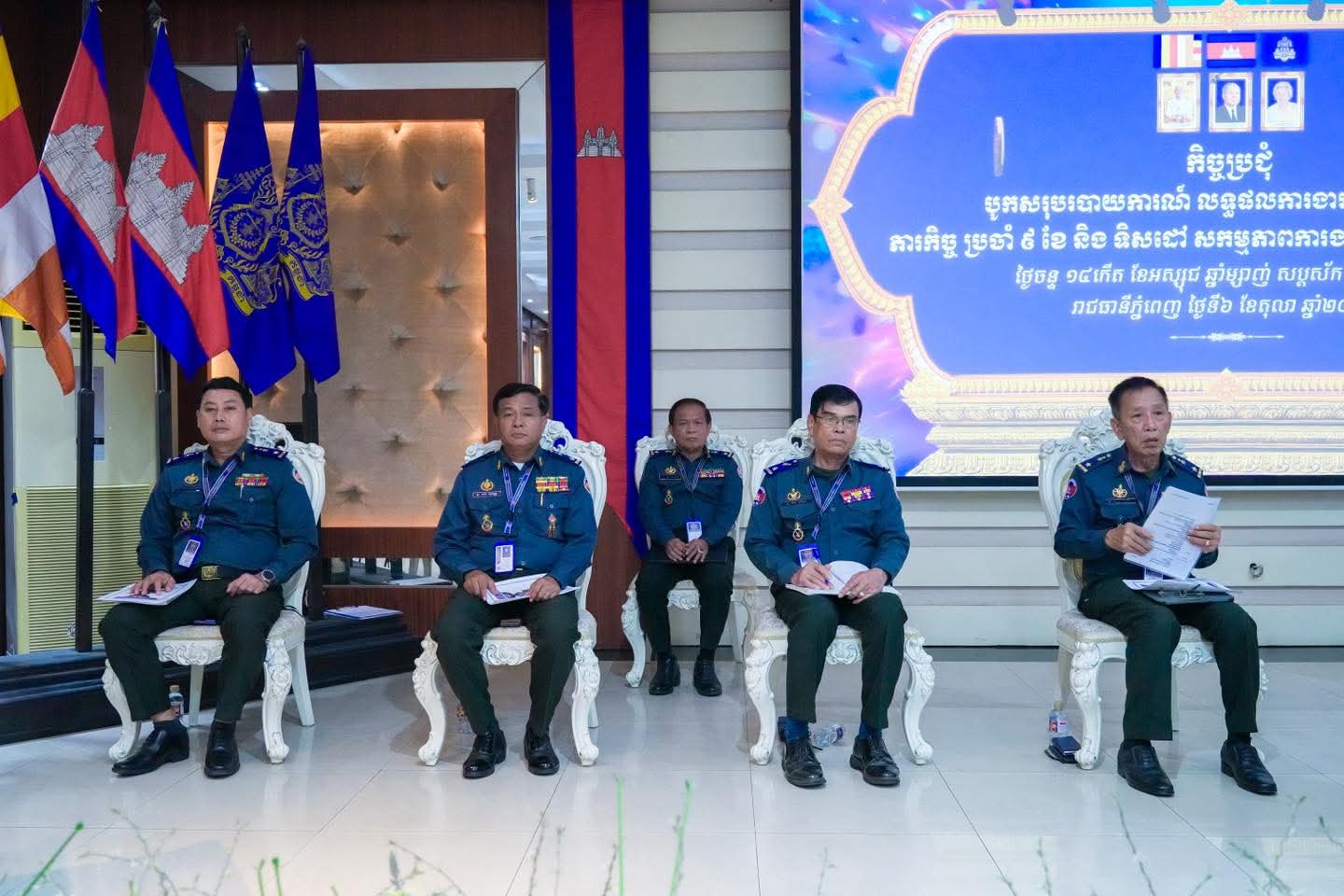 (ភ្នំពេញ) :នារសៀល ថ្ងៃទី០៦ ខែតុលា ឆ្នាំ២០២៥ នៅបញ្ជាការដ្ឋានកងរាជអាវុធហត្ថរាជធានីភ្នំពេញ លោកឧត្តមសេនីយ៍ឯក រ័ត្ន ស្រ៊ាង មេបញ្ជាការរង កងរាជអាវុធហត្ថលើផ្ទៃប្រទេស ជាមេបញ្ជាការ កងរាជអាវុធហត្ថរាជធានីភ្នំពេញ បានអញ្ជើញជាអធិបតីក្នុងកិច្ចប្រជុំផ្សព្វផ្សាយការអនុវត្តតួនាទី ភារកិច្ច ៩ ខែ និងលើកទិសដៅសកម្មភាពការងារត្រីមាសទី៤ ឆ្នាំ២០២៥ របស់ កងរាជអាវុធហត្ថលើផ្ទៃប្រទេស ដោយមានការចូលរួមពី លោកមេបញ្ជាការរង នាយ-នាយសេនាធិការរង ប្រធានមន្ទីរ នាយ-នាយរងការិយាល័យ លោកមេបញ្ជាការ មូលដ្ឋានអាវុធហត្ថខណ្ឌទាំង១៤ និងលោកមេបញ្ជាការវរសេនាតូច ព្រមទាំង នាយ-នាយរង អាវុធហត្ថពាក់ព័ន្ធជាច្រើនរូបទៀតផងដែរ។