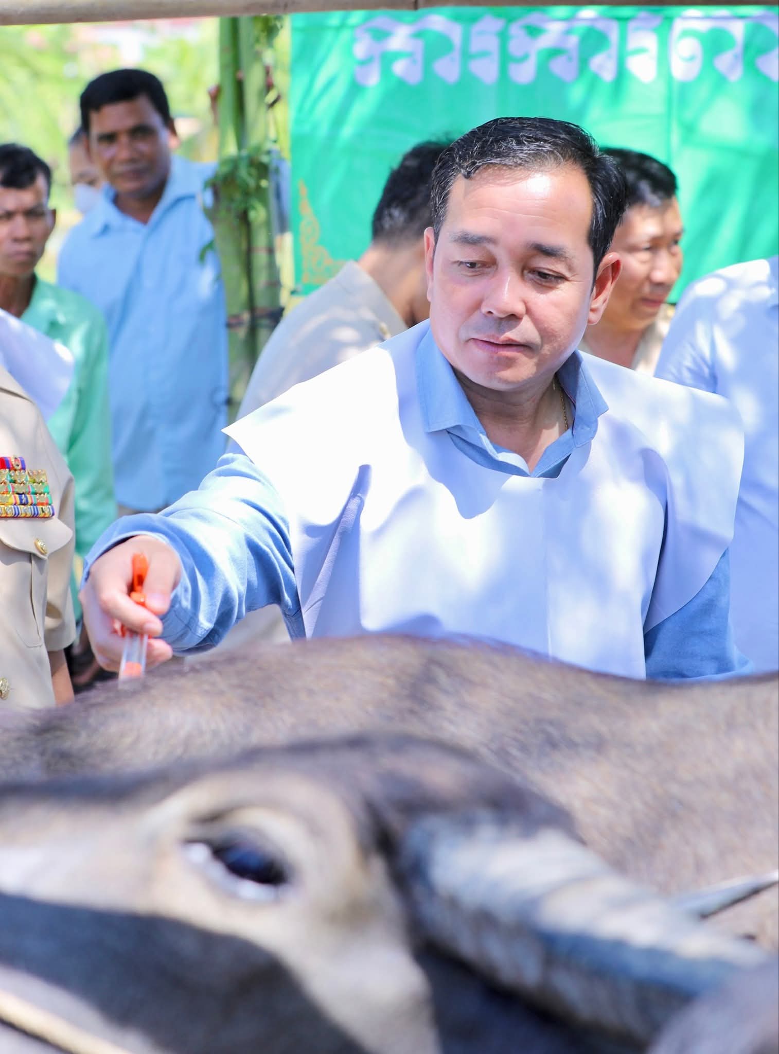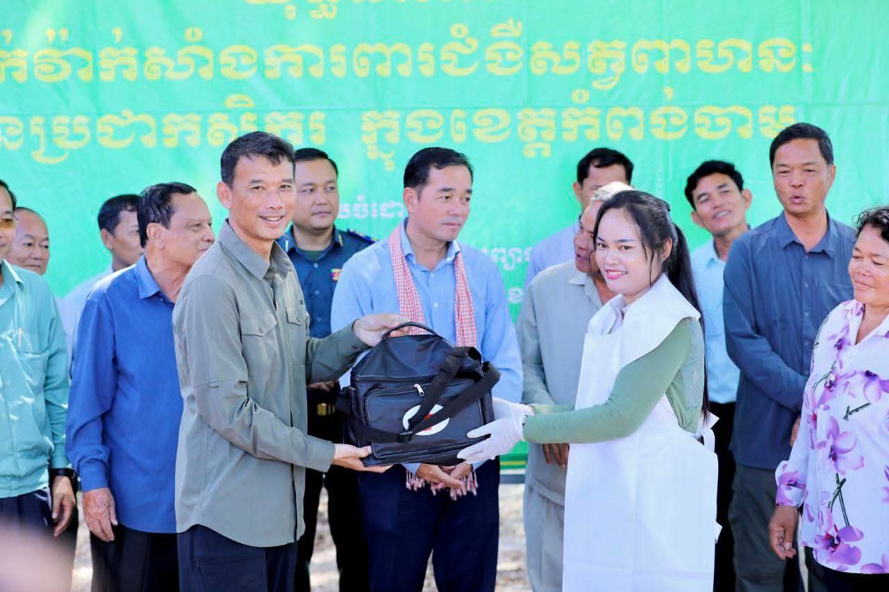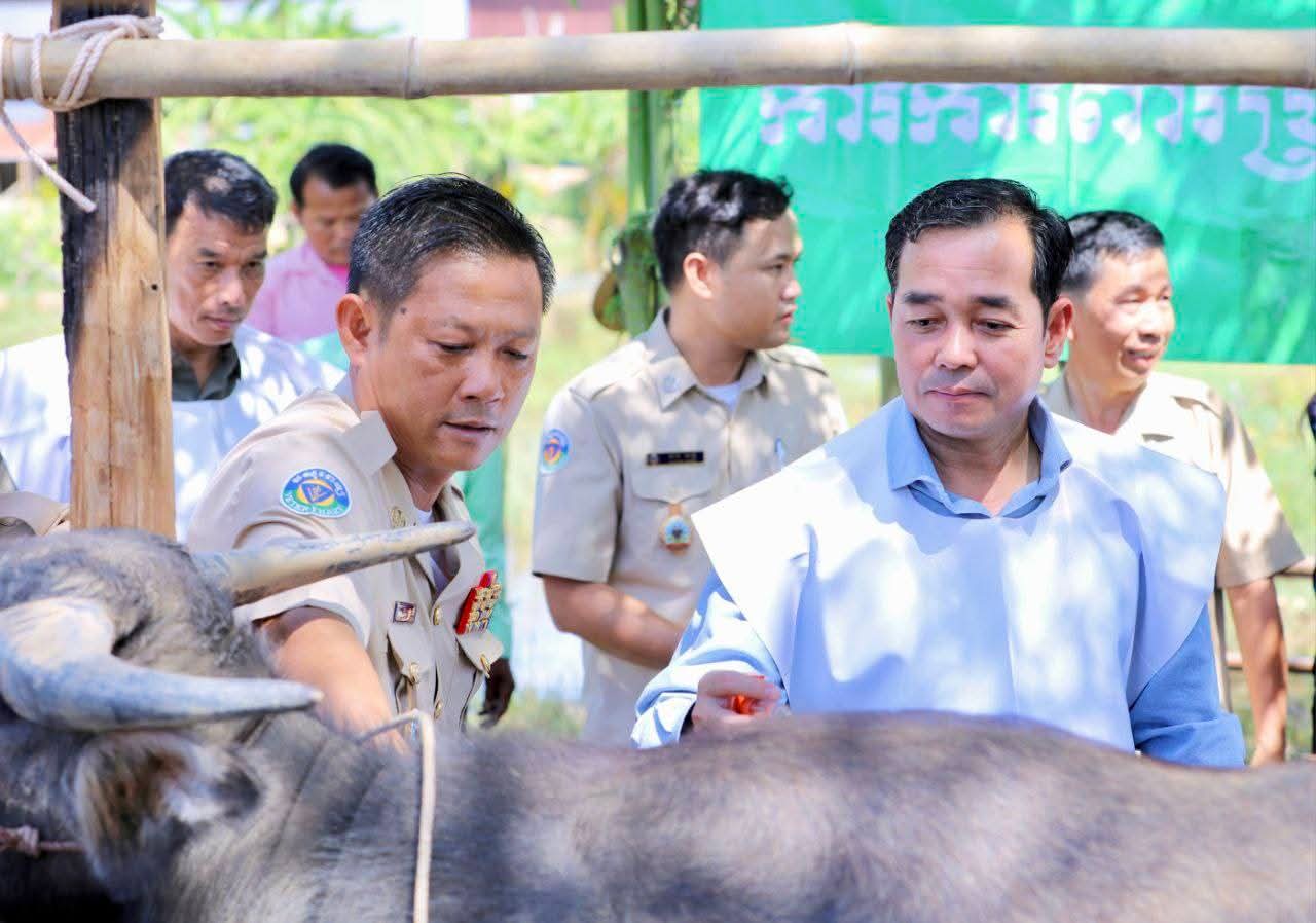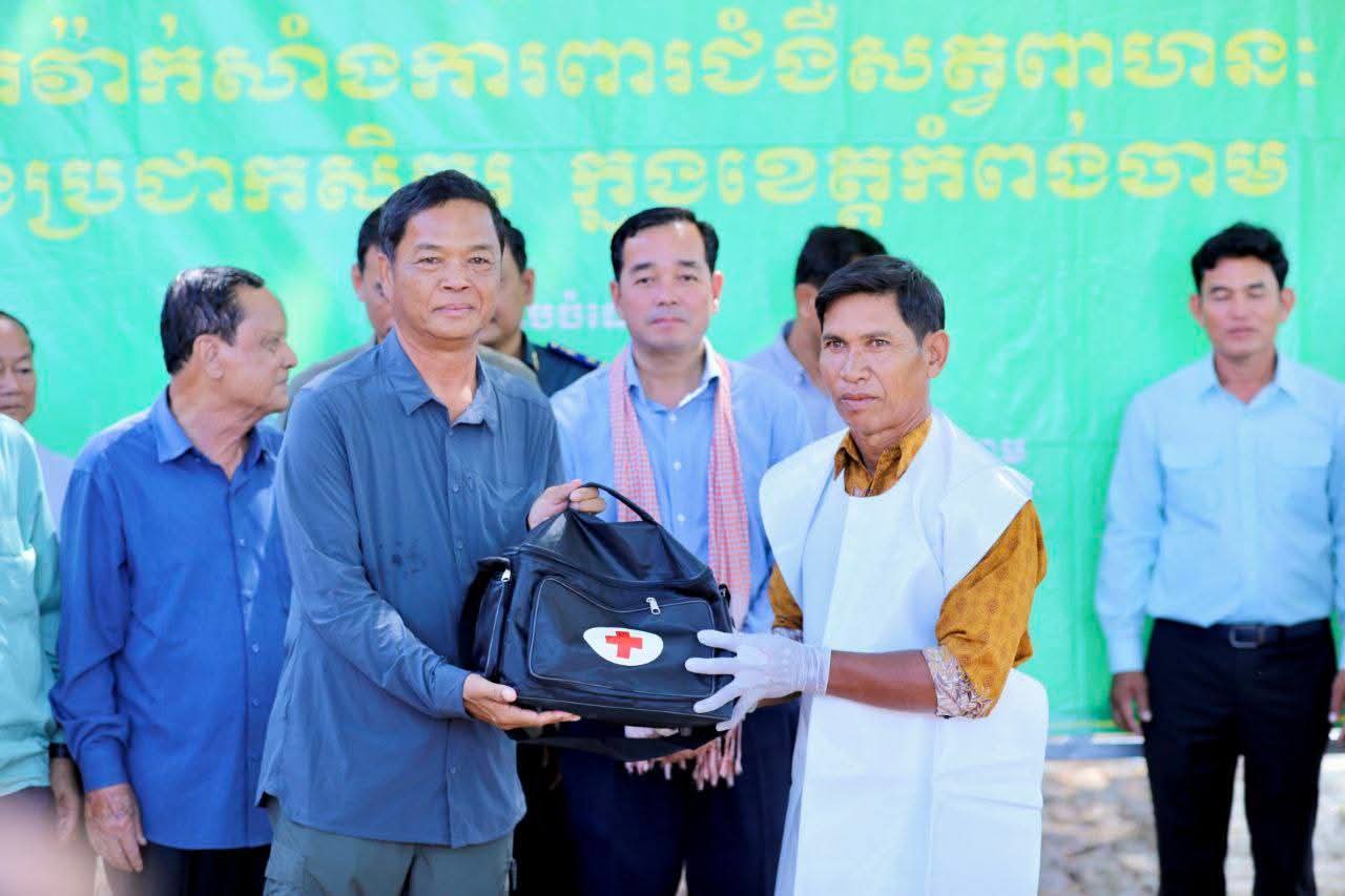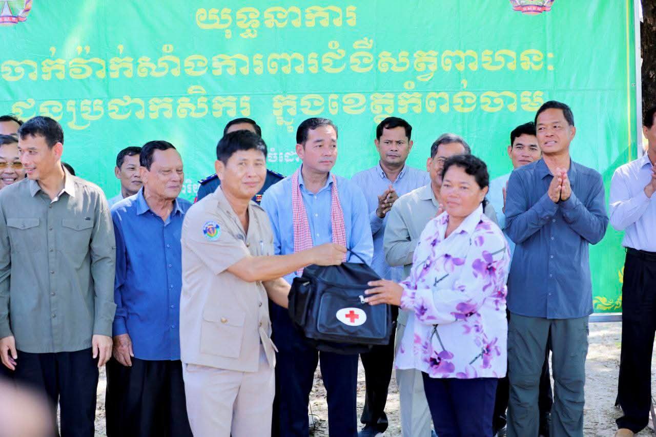 (កំពង់ចាម): អភិបាលនៃគណៈអភិបាលខេត្តកំពង់ចាម ឯកឧត្តម អ៊ុន ចាន់ដា និង ឯកឧត្តម ខ្លូត ផន ប្រធានក្រុមប្រឹក្សាខេត្ត នាព្រឹកថ្ងៃទី៧ ខែតុលា ឆ្នាំ២០២៥នេះ បានអញ្ជើញបើកយុទ្ធនាការចាក់វ៉ាក់សាំងការពារជម្ងឺសារទឹក លើសត្វគោ ក្របី ជូនប្រជាពលរដ្ឋដោយគិតថ្លៃ នៅបរិវេណសាលាបឋមសិក្សាស្រះកកោះ ស្ថិតក្នុងភូមិកកោះ ឃុំសណ្តែក ស្រុកបាធាយ ដើម្បីការពារនូវជម្ងឺ ឆ្លងរាតត្បាតផ្សេងៗដែលតែងតែកើតមានឡើង ចំពោះសត្វពាហនៈ ក្នុងរដូវវស្សានេះ ក្រោម កិច្ចសហការរៀបចំរបស់មន្ទីរកសិកម្ម រុក្ខាប្រមាញ់ និងនេសាទខេត្តកំពង់ចាម ។
