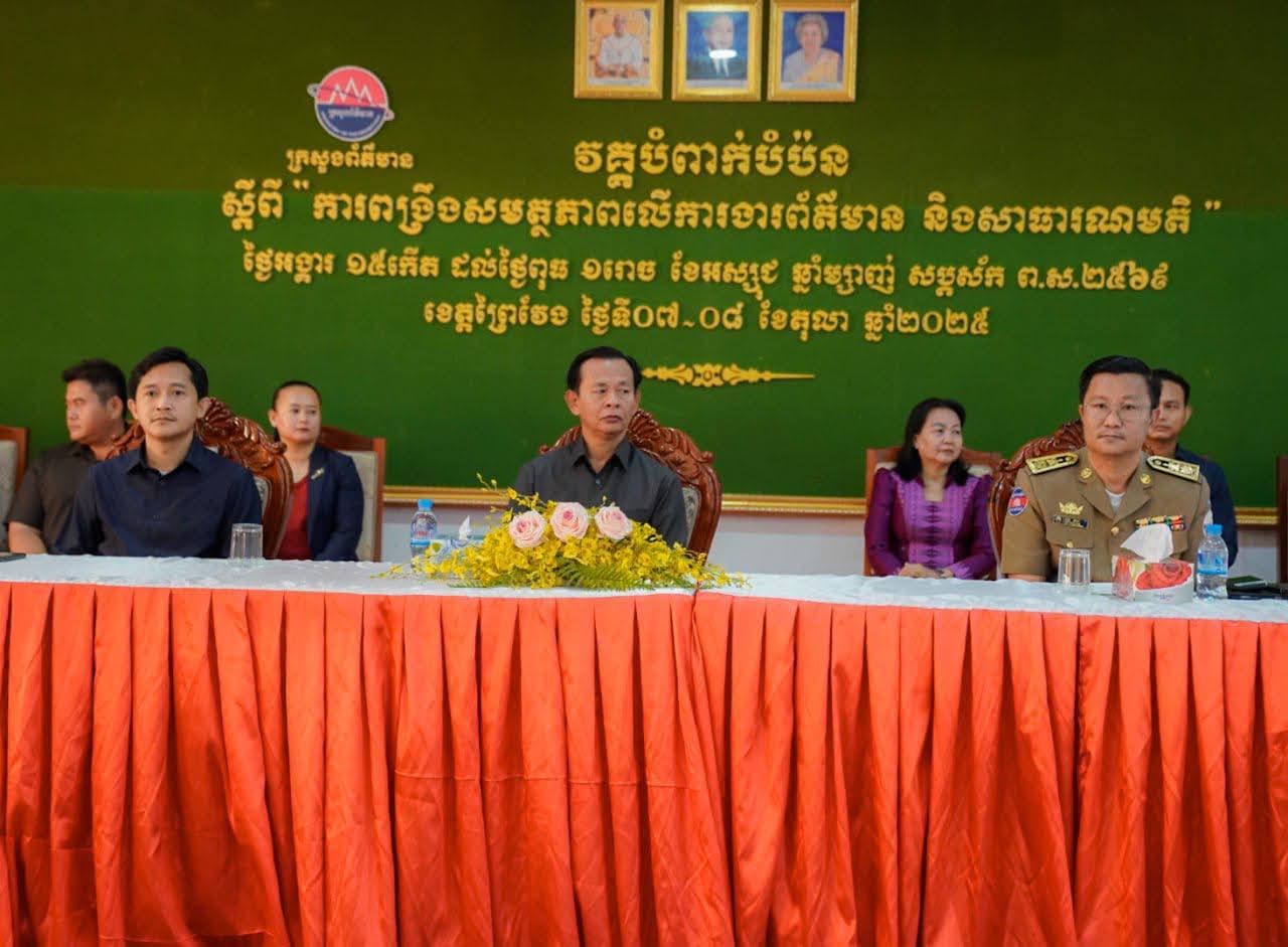 (ព្រៃវែង) ៖ ក្រសួងព័ត៌មានសហការជាមួយមន្ទីរព័ត៌មានខេត្តព្រៃវែងនាព្រឹកថ្ងៃទី០៧ ខែតុលាឆ្នាំ២០២៥ នៅសាលប្រជុំកាកបាទក្រហមខេត្តព្រៃវែងបានបើកវគ្គបំពាក់បំប៉នស្តីពី ការពង្រឹងសមត្ថភាព លើការងារព័ត៌មាន និងសាធារណមតិ ដល់អ្នកសារព័ត៌មាន ព្រមទាំងមន្ត្រីជំនាញមកពីមន្ទីរព័ត៌មានខេត្តព្រៃវែង កណ្តាល ស្វាយរៀង និងមន្ទីរព័ត៌មានរាជធានីភ្នំពេញសរុបប្រមាណជាង៦០នាក់ ។