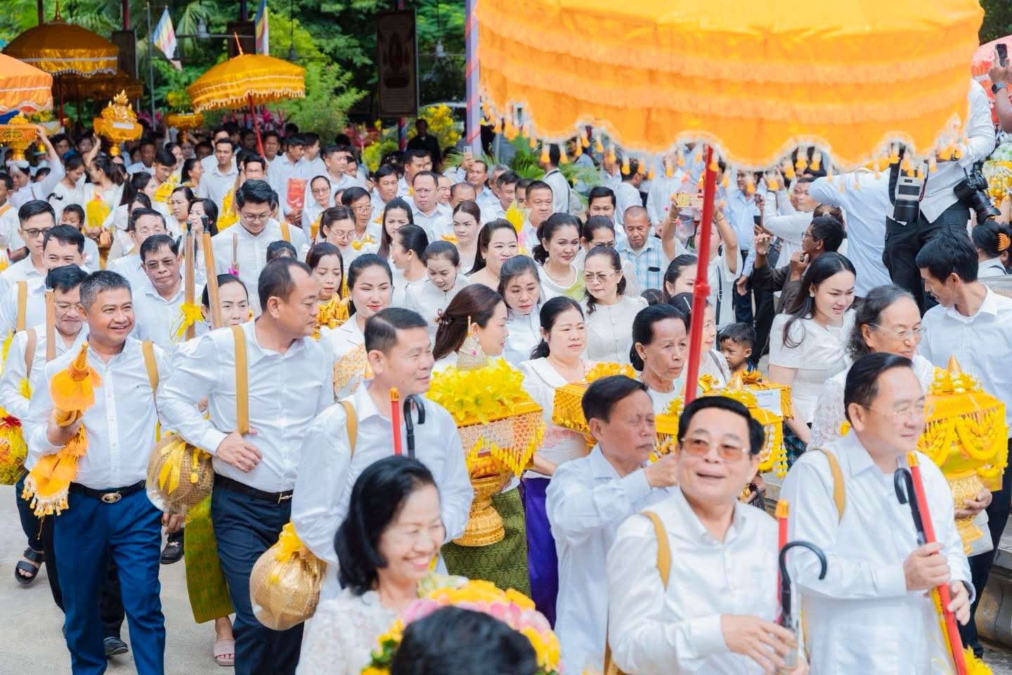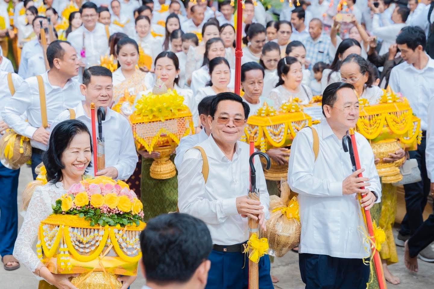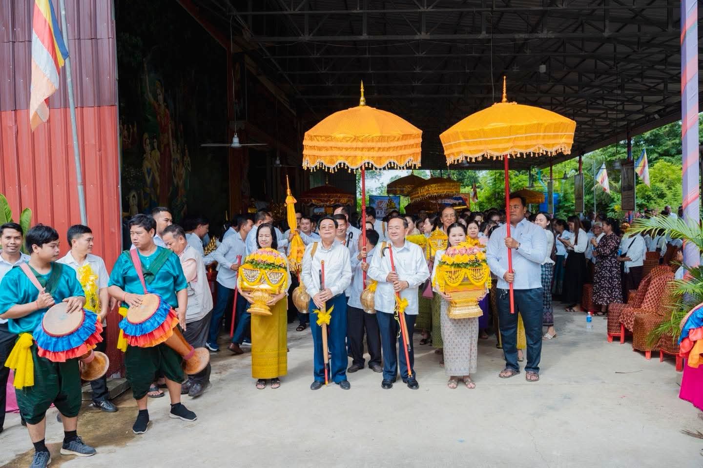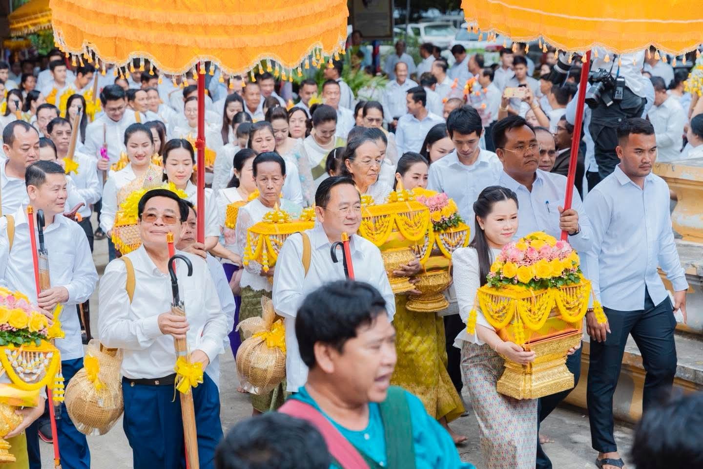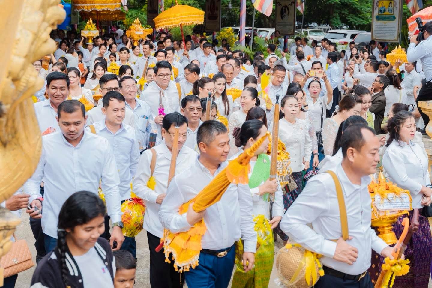 (បាត់ដំបង) :នៅព្រឹកថ្ងៃពុធ ១រោច ខែអស្សុជ ឆ្នាំម្សាញ់ សប្តស័ក ពុទ្ធសករាជ ២៥៦៩ ត្រូវនឹងថ្ងៃទី៨ ខែតុលា ឆ្នាំ២០២៥ នេះ ឯកឧត្តម អ៊ុយ រី ប្រធានក្រុមប្រឹក្សាខេត្ត ព្រមទាំងលោកជំទាវ និង ឯកឧត្តម សុខ លូ អភិបាល នៃគណៈអភិបាលខេត្តបាត់ដំបង ព្រមទាំងលោកជំទាវ បានអញ្ជើញដឹកនាំ ពិធីដង្ហែអង្គកឋិនទានសាមគ្គី របស់រដ្ឋបាលខេត្តបាត់ដំបង ទៅវេរប្រគេនព្រះសង្ឃដែលគង់ចាំព្រះវស្សាអស់កាលត្រីមាសក្នុងពទ្ធសីមា «វត្តព្រះពុទ្ធជយមង្គល ហៅវត្តបត់សាលា» ស្ថិតនៅក្នុង ភូមិបត់សាលា ឃុំឈើទាល ស្រុកបាណន់ ខេត្តបាត់ដំបង ដើម្បីប្រមូលបច្ច័យសម្រាប់កសាងសមិទ្ធផលនានាក្នុងបរិវេណវត្ត។