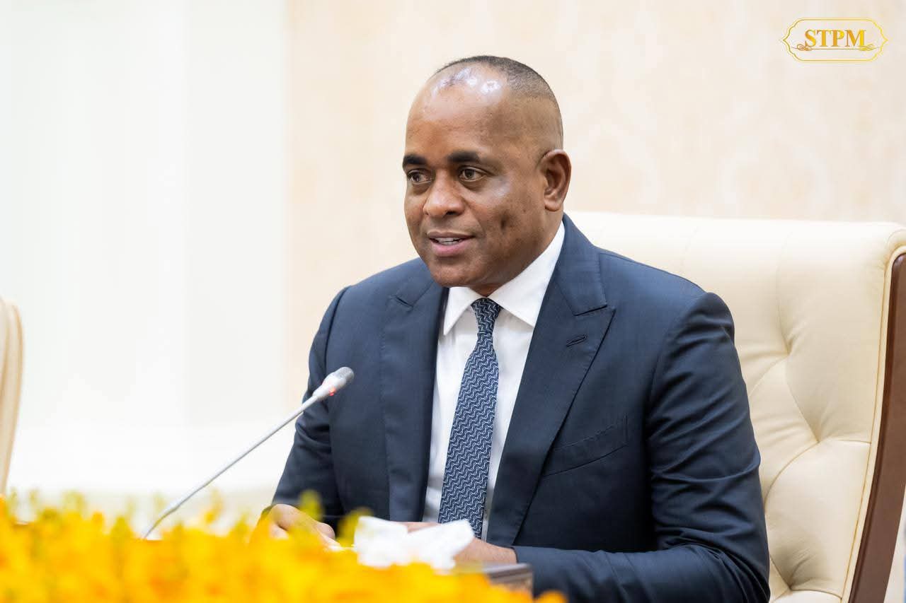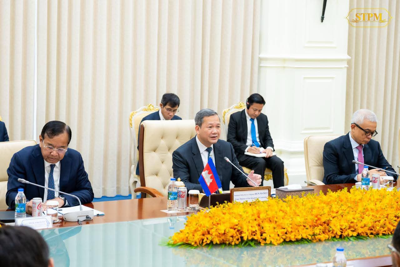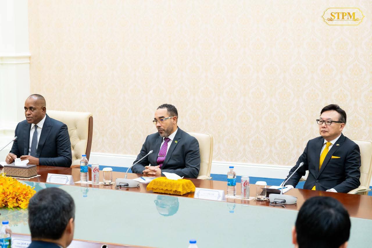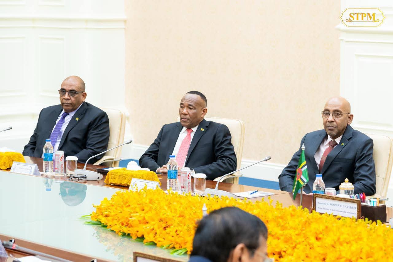 (ភ្នំពេញ) :សម្តេចមហាបវរធិបតី ហ៊ុន ម៉ាណែត នាយករដ្ឋមន្ត្រី នៃព្រះរាជាណាចក្រកម្ពុជា ទទួលជួបពិភាក្សាការងារទ្វេភាគីជាមួយ ឯកឧត្តមបណ្ឌិត Roosevelt Skerrit នាយករដ្ឋមន្ត្រីនៃកុំមិនវែលដូមីនីកា (Commonwealth Dominica) នាព្រឹកថ្ងៃទី០៩ ខែតុលា ឆ្នាំ២០២៥ នៅវិមានសន្តិភាព រាជធានីភ្នំពេញ ក្នុងឱកាសដែលឯកឧត្តមអញ្ជើញមកបំពេញទស្សនកិច្ចការងារ រយៈពេល៣ថ្ងៃ នៅព្រះរាជាណាចក្រកម្ពុជា។