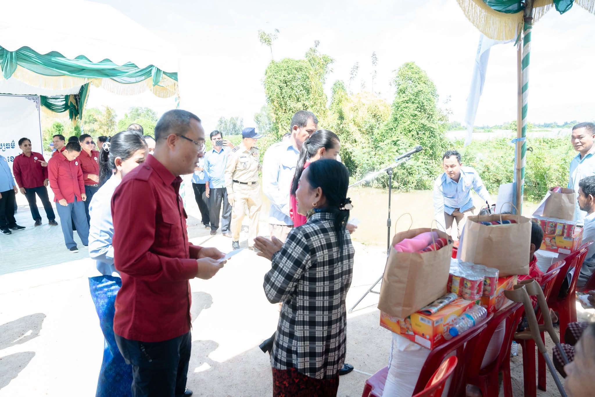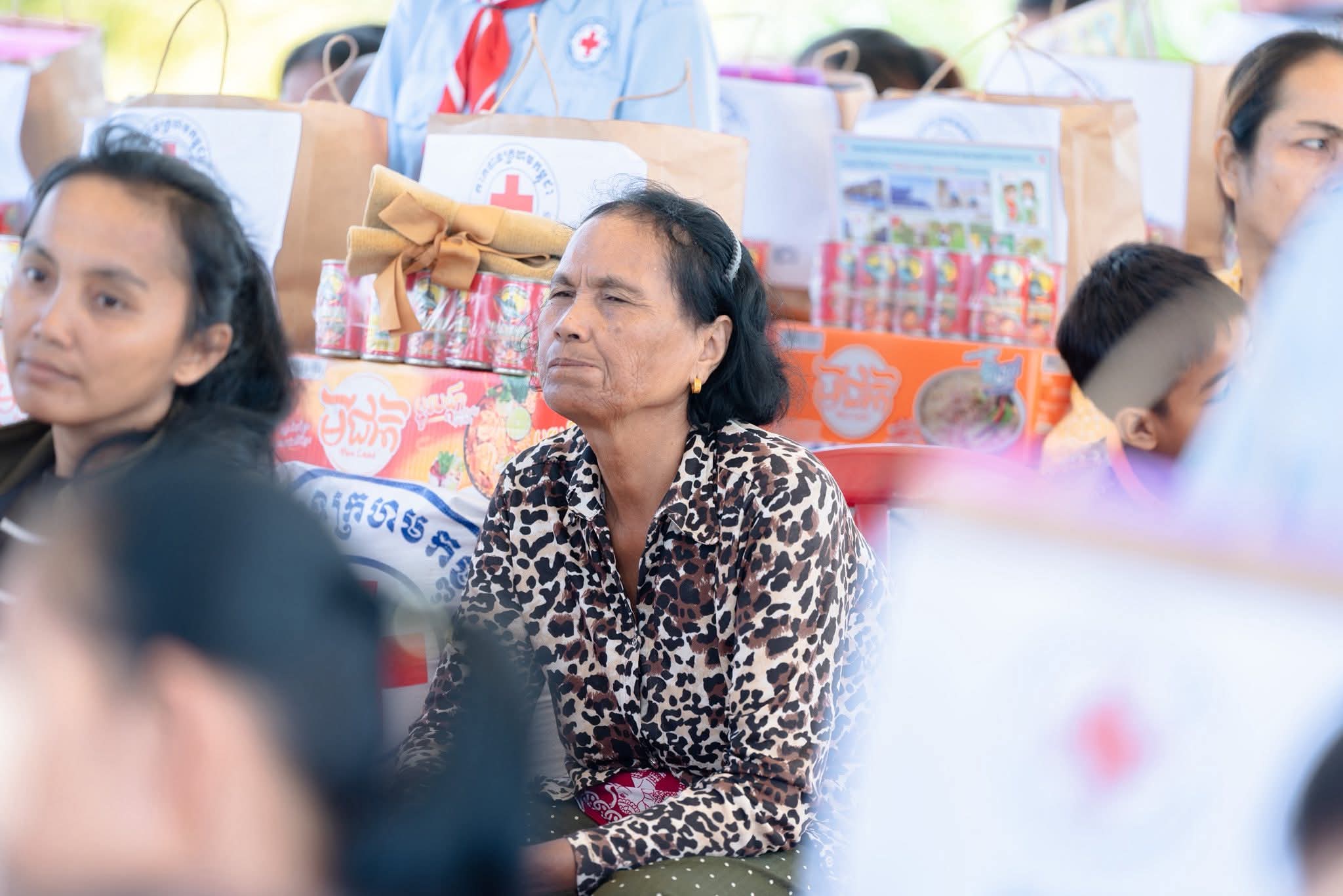 អំណោយផ្ដល់ជូនក្នុងមួយគ្រួសារ ទទួលបាន÷ អង្ករ ២៥គ.ក្រ, ឃីត(មួយកញ្ចប់), មី ១កេស, ត្រីខ ១យួរ, និងថវិកាចំនួន ៥០.០០០រៀល។