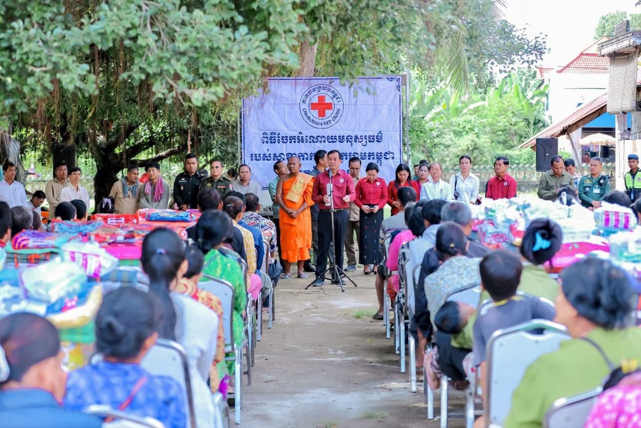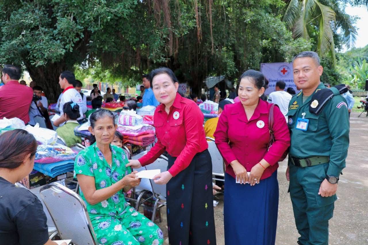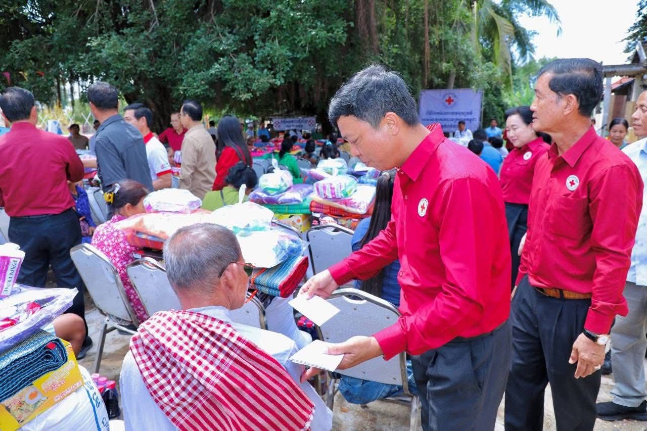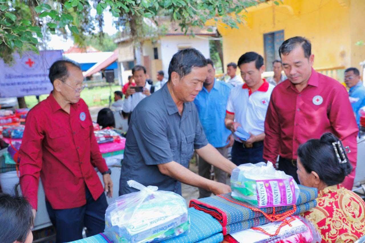 (កំពង់ចាម): ឯកឧត្តម អ៊ុន ចាន់ដា ប្រធានគណៈកម្មាធិការសាខាកាកបាទក្រហមកម្ពុជាខេត្តកំពង់ចាម បានដឹកនាំ សមាជិក សមាជិកា កាកបាទក្រហមខេត្ត បាននាំយកអំណោយមនុស្សធម៍របស់ សម្តេចកិត្តិព្រឹទ្ធបណ្ឌិត ប៊ុន រ៉ានី ហ៊ុនសែនហ៊ុន សែន ផ្តល់ជូនដល់ប្រជាពលរដ្ឋរងគ្រោះដោយទឹកជំនន់ចំនួន ៥៤គ្រួសារ រស់នៅស្រុកកំពង់សៀម ខេត្តកំពង់ចាម ដើម្បីចូលរួមកាត់បន្ថយការលំបាក និងជួយសង្គ្រោះប្រជាពលរដ្ឋពីគ្រោះធម្មជាតិ។