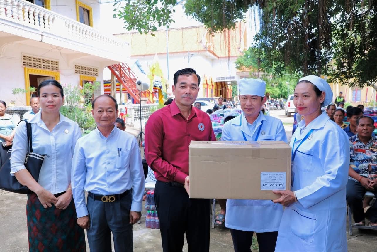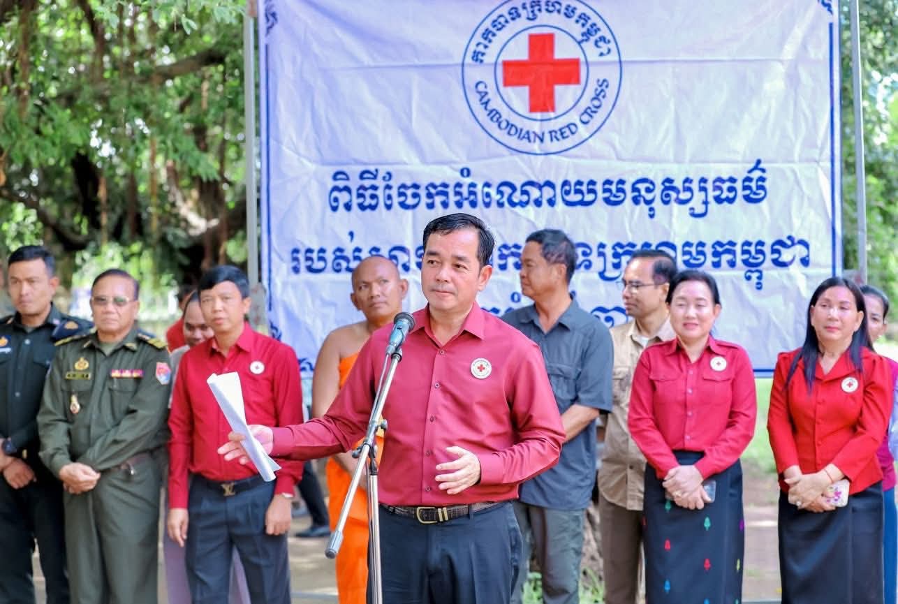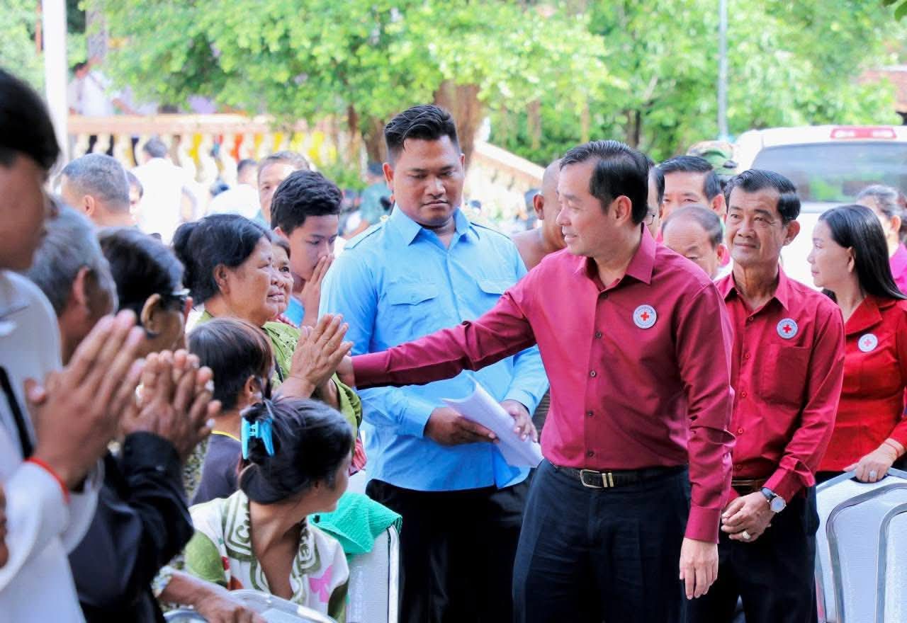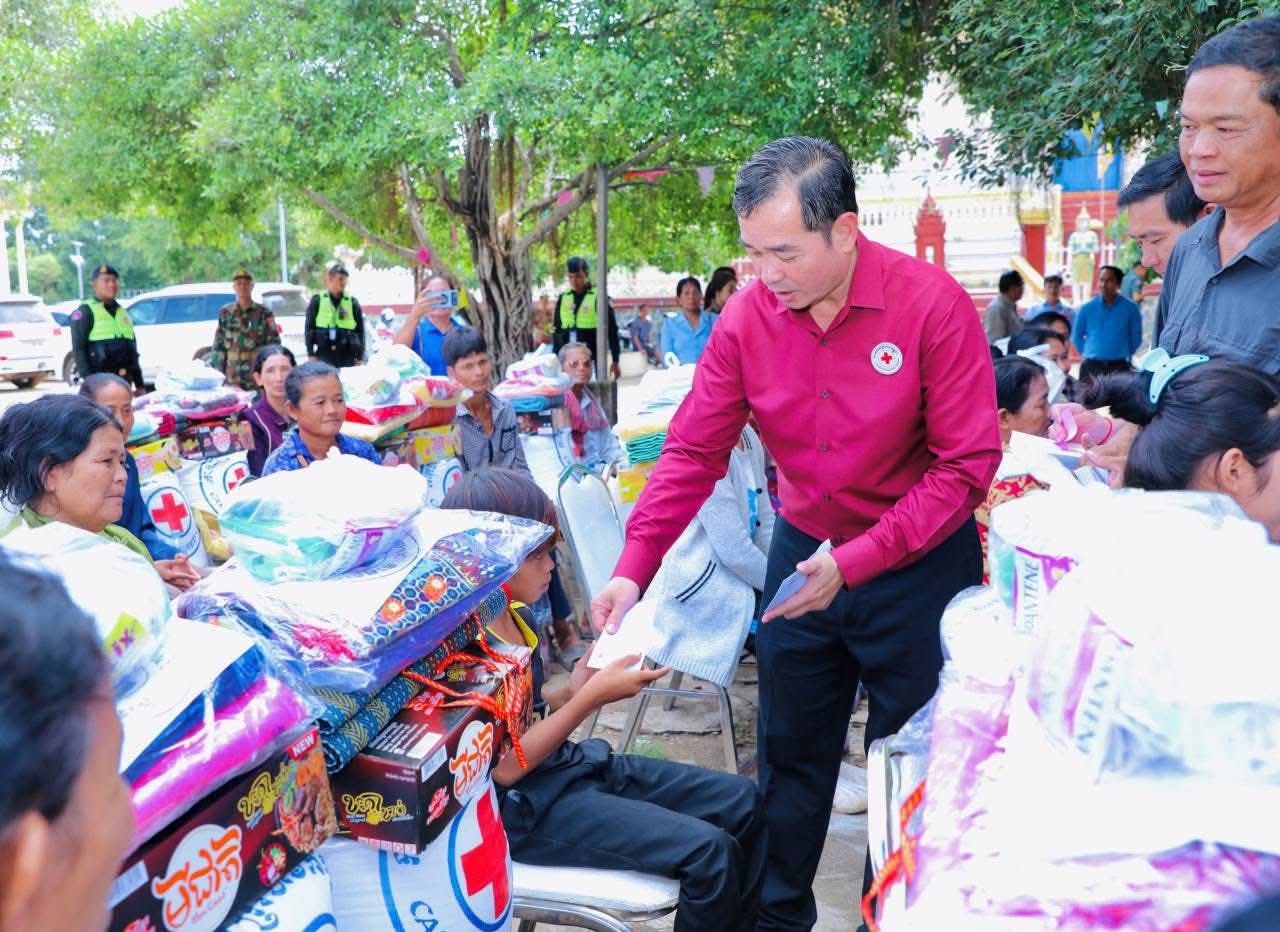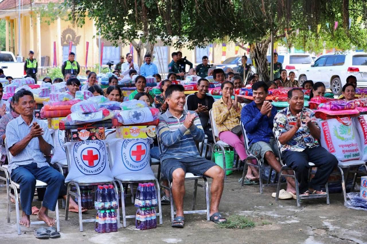 (កំពង់ចាម): ឯកឧត្តម អ៊ុន ចាន់ដា ប្រធានគណៈកម្មាធិការសាខាកាកបាទក្រហមកម្ពុជាខេត្តកំពង់ចាម បានដឹកនាំ សមាជិក សមាជិកា កាកបាទក្រហមខេត្ត បាននាំយកអំណោយមនុស្សធម៍របស់ សម្តេចកិត្តិព្រឹទ្ធបណ្ឌិត ប៊ុន រ៉ានី ហ៊ុនសែនហ៊ុន សែន ផ្តល់ជូនដល់ប្រជាពលរដ្ឋរងគ្រោះដោយទឹកជំនន់ចំនួន ៥៤គ្រួសារ រស់នៅស្រុកកំពង់សៀម ខេត្តកំពង់ចាម ដើម្បីចូលរួមកាត់បន្ថយការលំបាក និងជួយសង្គ្រោះប្រជាពលរដ្ឋពីគ្រោះធម្មជាតិ។