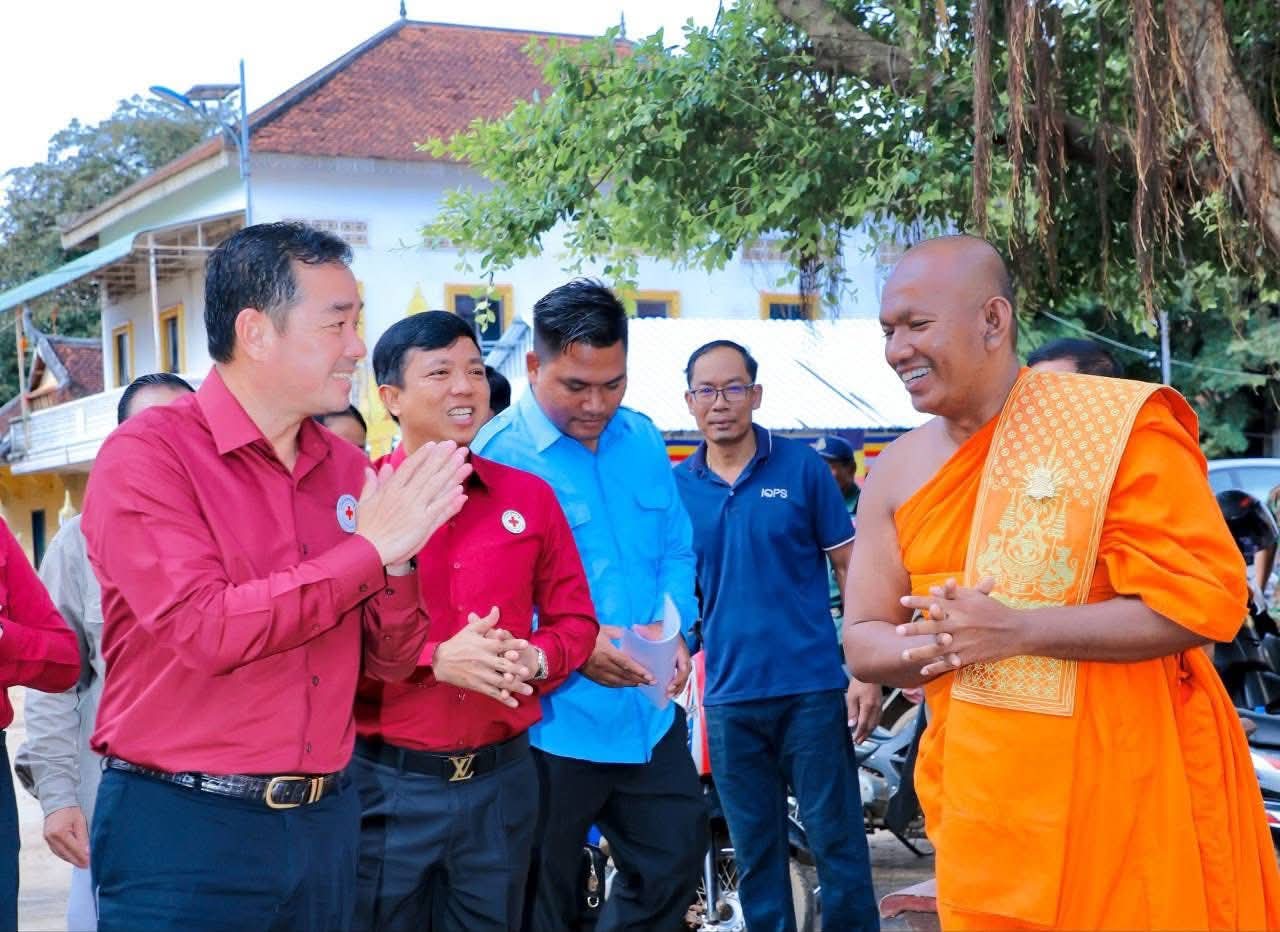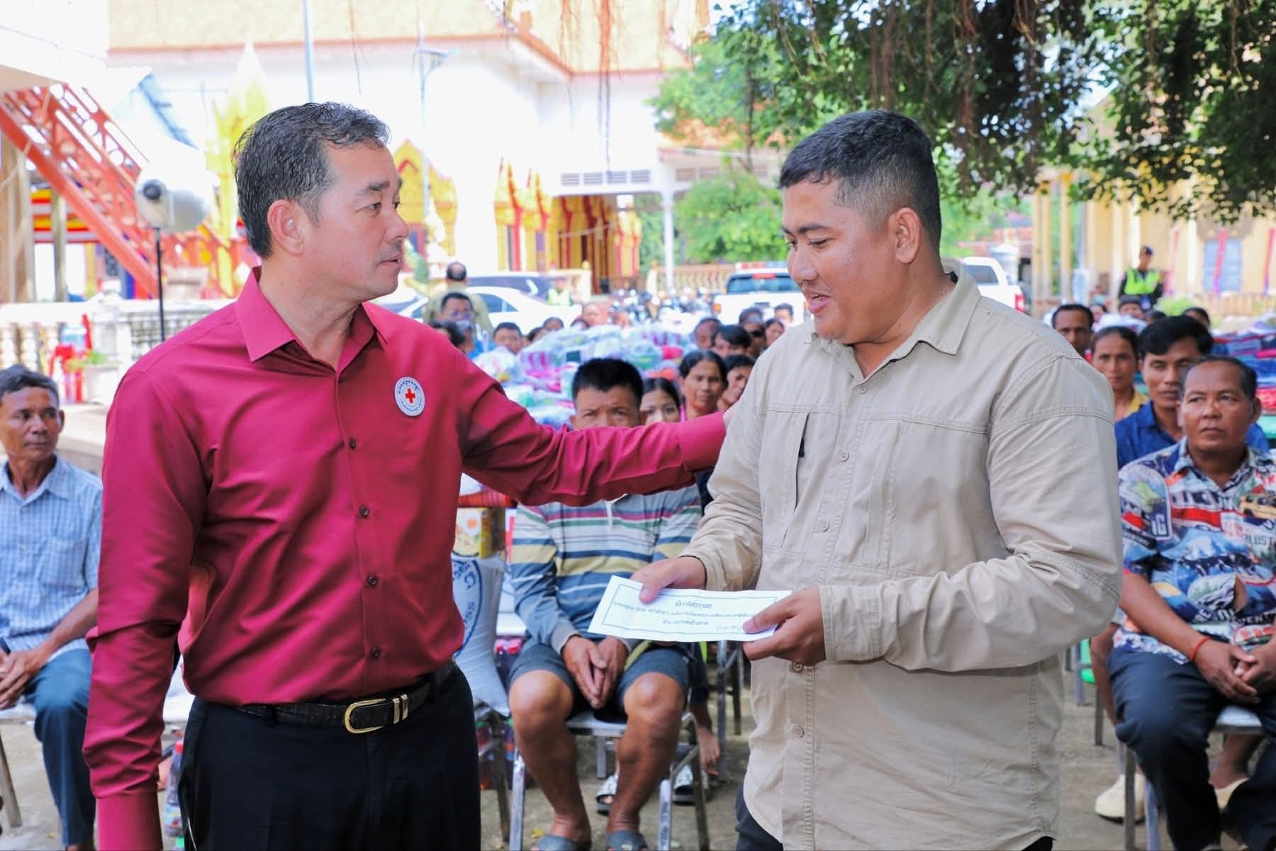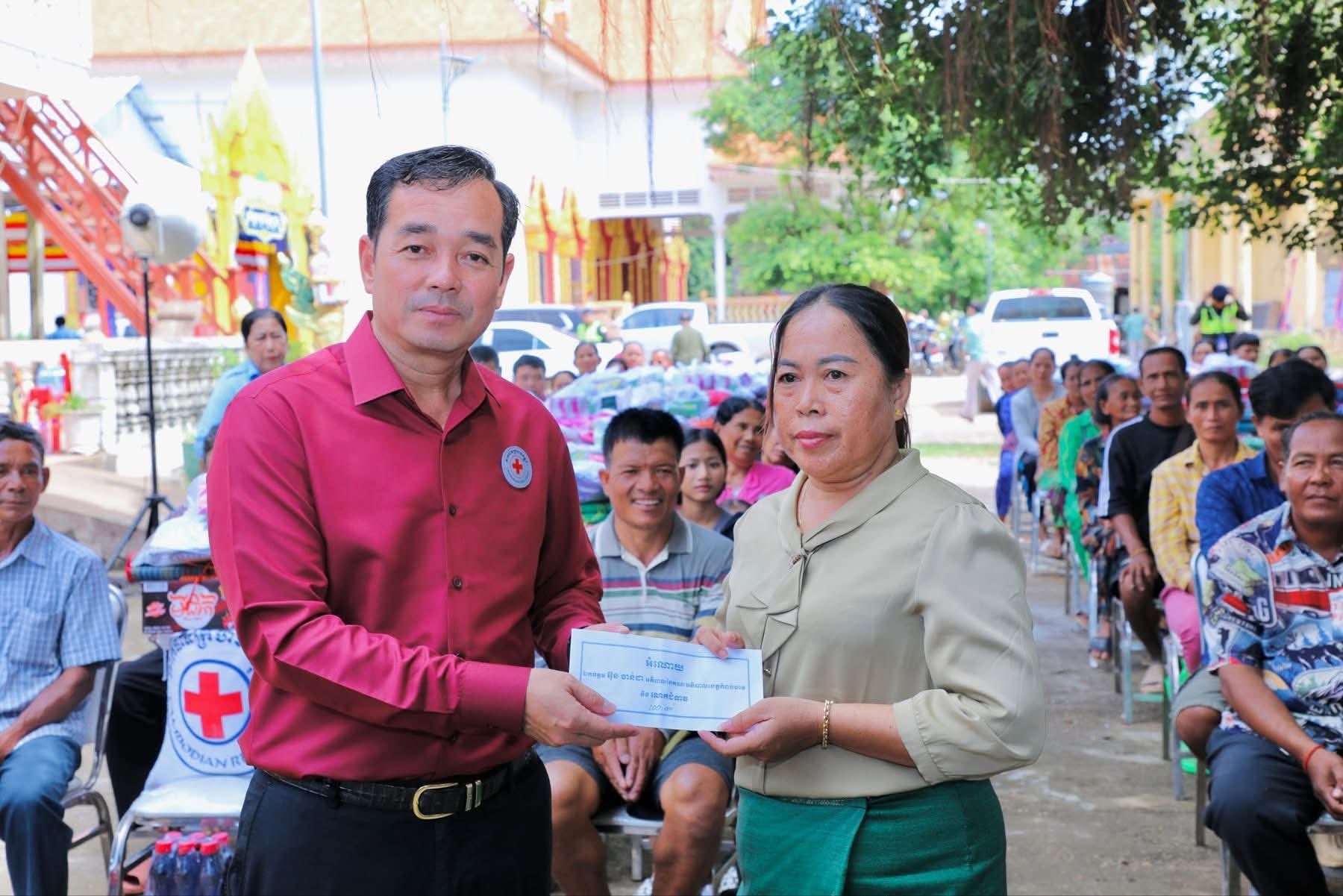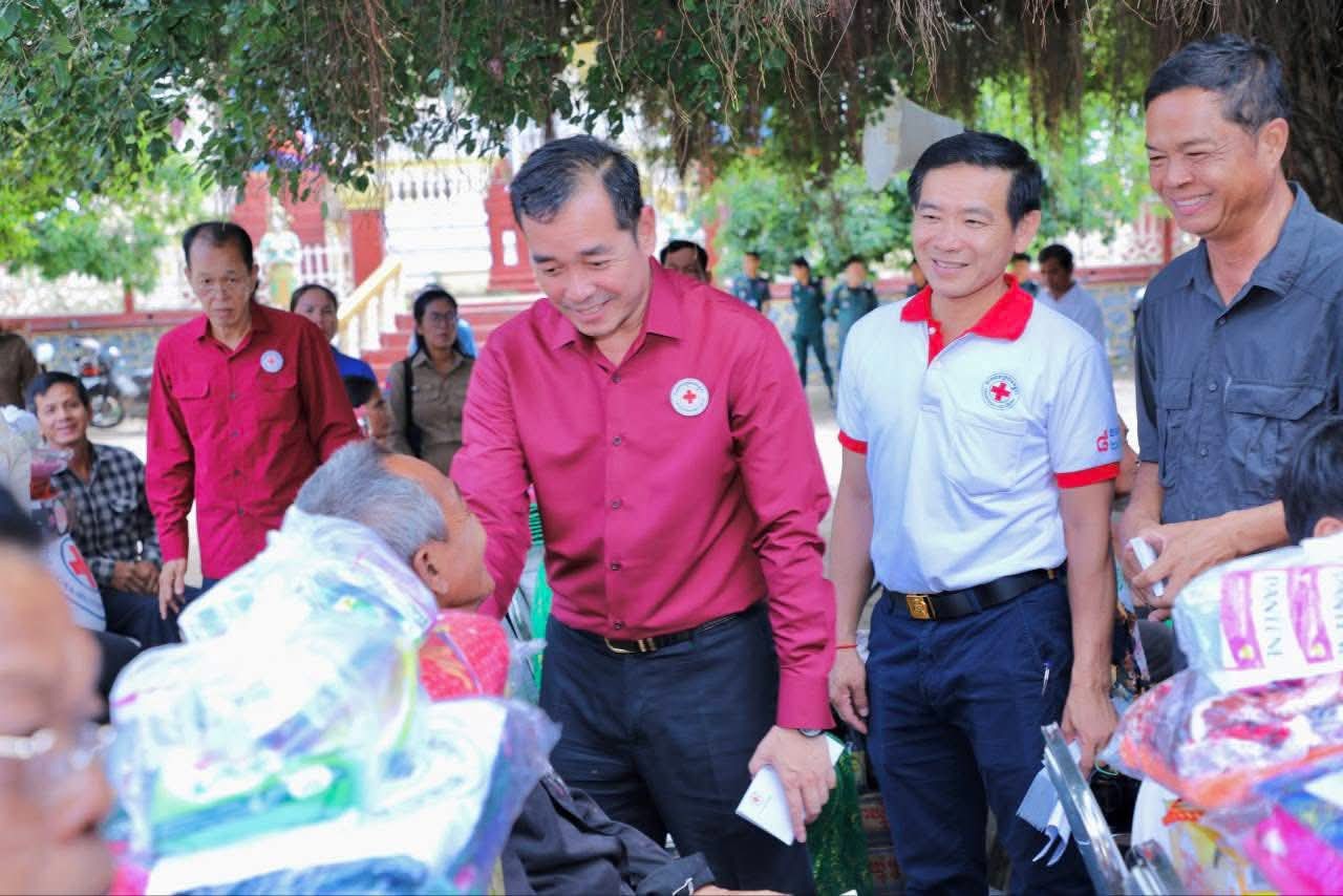 (កំពង់ចាម): ឯកឧត្តម អ៊ុន ចាន់ដា ប្រធានគណៈកម្មាធិការសាខាកាកបាទក្រហមកម្ពុជាខេត្តកំពង់ចាម បានដឹកនាំ សមាជិក សមាជិកា កាកបាទក្រហមខេត្ត បាននាំយកអំណោយមនុស្សធម៍របស់ សម្តេចកិត្តិព្រឹទ្ធបណ្ឌិត ប៊ុន រ៉ានី ហ៊ុនសែនហ៊ុន សែន ផ្តល់ជូនដល់ប្រជាពលរដ្ឋរងគ្រោះដោយទឹកជំនន់ចំនួន ៥៤គ្រួសារ រស់នៅស្រុកកំពង់សៀម ខេត្តកំពង់ចាម ដើម្បីចូលរួមកាត់បន្ថយការលំបាក និងជួយសង្គ្រោះប្រជាពលរដ្ឋពីគ្រោះធម្មជាតិ។