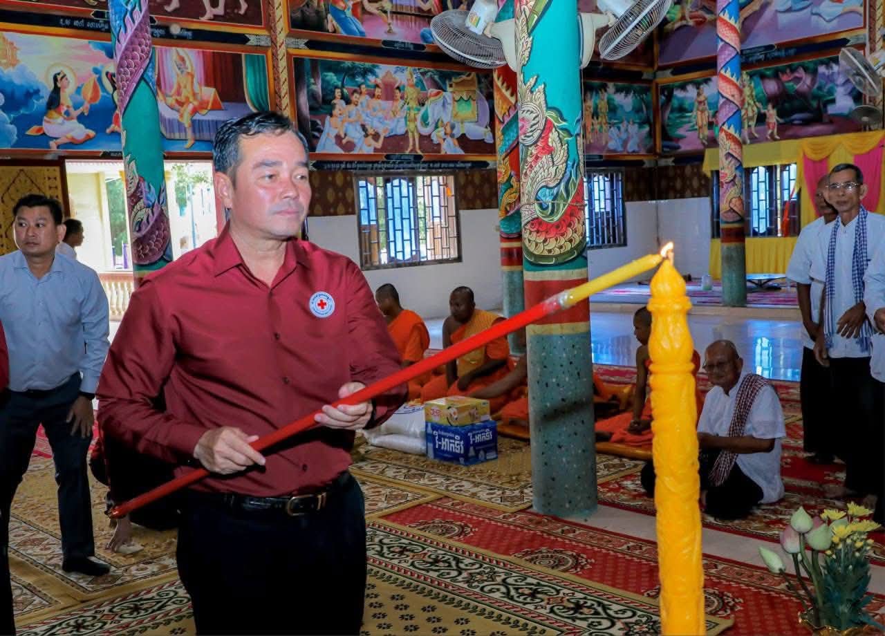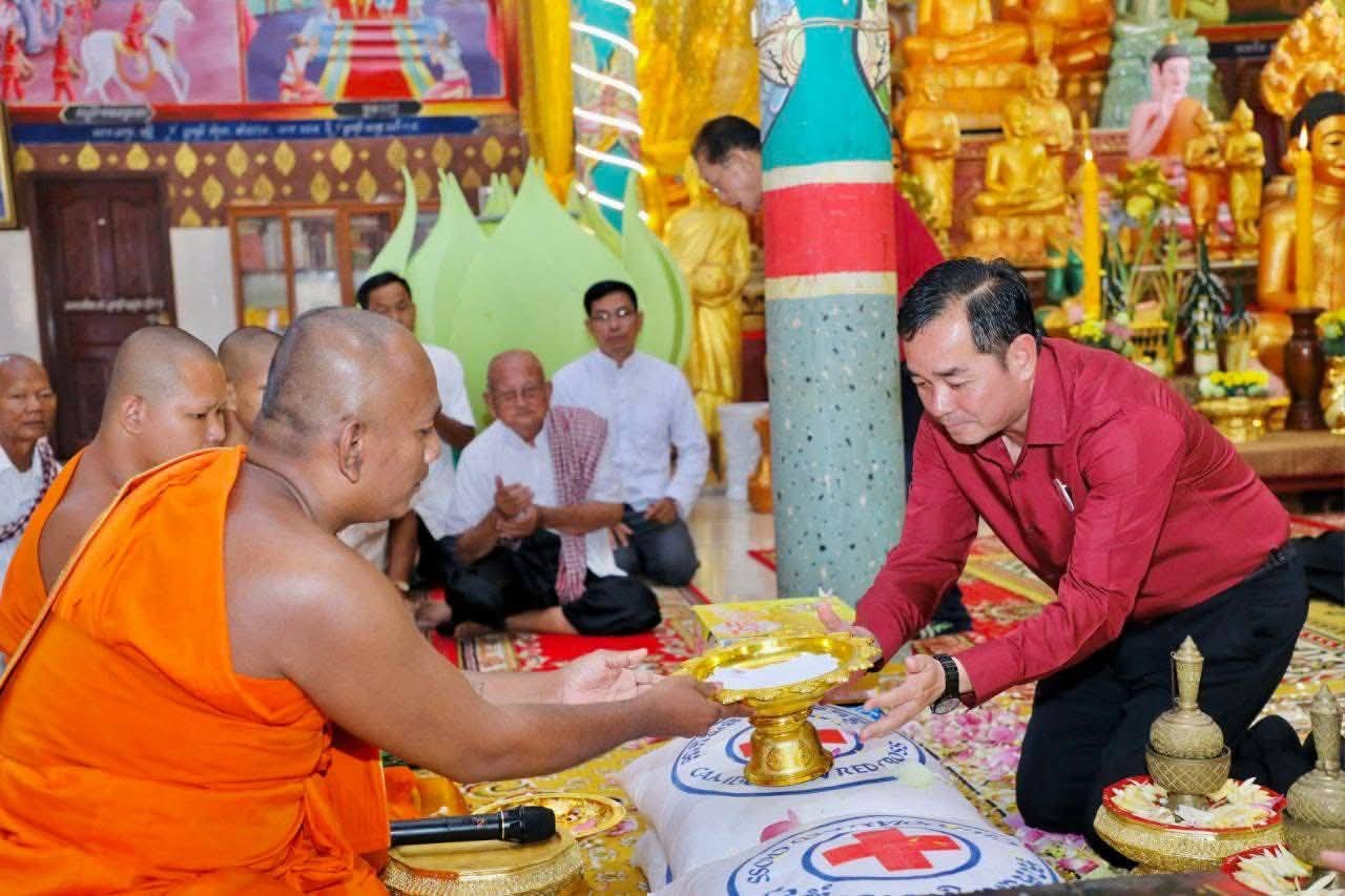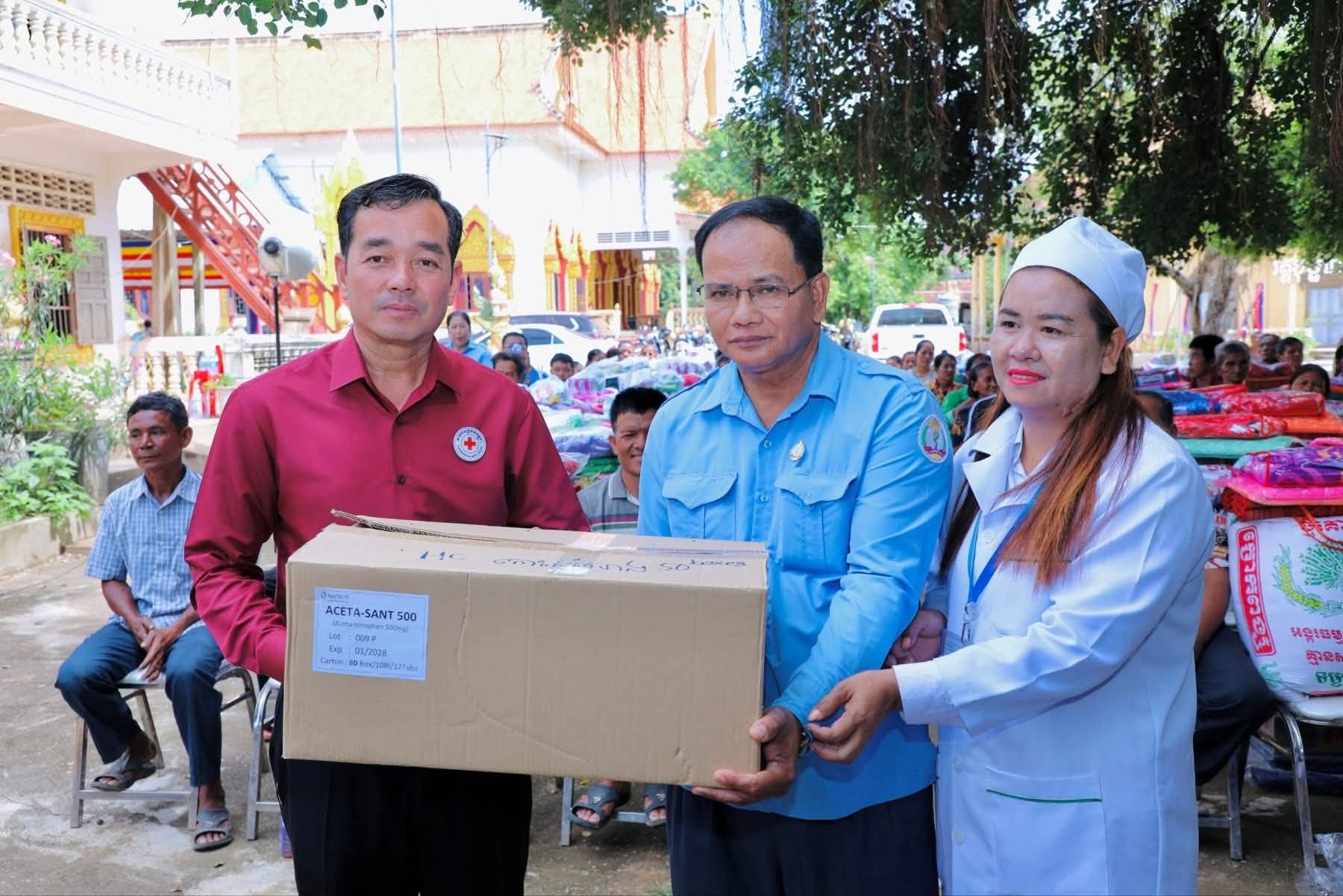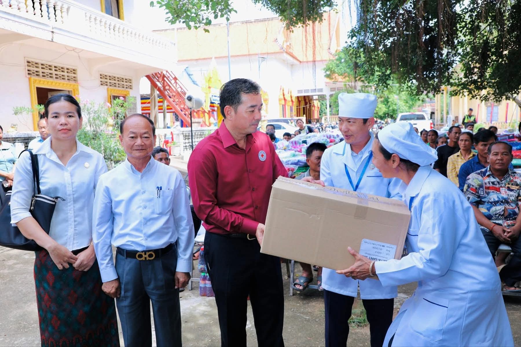 (កំពង់ចាម): ឯកឧត្តម អ៊ុន ចាន់ដា ប្រធានគណៈកម្មាធិការសាខាកាកបាទក្រហមកម្ពុជាខេត្តកំពង់ចាម បានដឹកនាំ សមាជិក សមាជិកា កាកបាទក្រហមខេត្ត បាននាំយកអំណោយមនុស្សធម៍របស់ សម្តេចកិត្តិព្រឹទ្ធបណ្ឌិត ប៊ុន រ៉ានី ហ៊ុនសែនហ៊ុន សែន ផ្តល់ជូនដល់ប្រជាពលរដ្ឋរងគ្រោះដោយទឹកជំនន់ចំនួន ៥៤គ្រួសារ រស់នៅស្រុកកំពង់សៀម ខេត្តកំពង់ចាម ដើម្បីចូលរួមកាត់បន្ថយការលំបាក និងជួយសង្គ្រោះប្រជាពលរដ្ឋពីគ្រោះធម្មជាតិ។