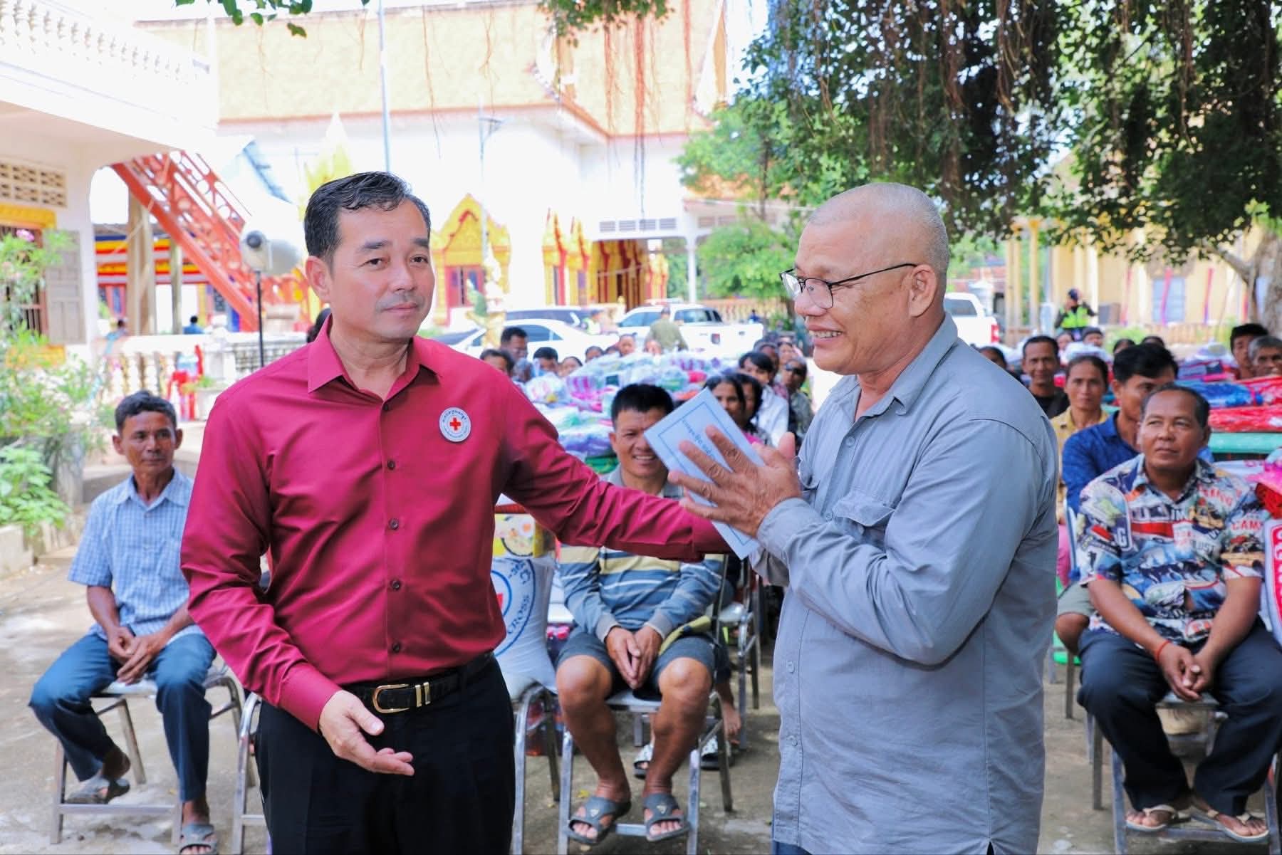 ក្នុងពេលវេលានោះ ឯកឧត្តម បានពាំនាំការសួរសុខទុក្ខ របស់សម្តេចកិត្តិព្រឹទ្ធបណ្ឌិត ប៊ុន រ៉ានី ហ៊ុន សែន ប្រធានកាកបាទក្រហមកម្ពុជា និងសម្តេចមហាបវរធិបតី ហ៊ុន ម៉ាណែត នាយករដ្ឋមន្រ្តីនៃព្រះរាជាណាចក្រកម្ពុជា ព្រមទាំង ឯកឧត្តមសន្តិបណ្ឌិត នេត សាវឿន ឧបនាយករដ្ឋមន្រ្តី និងជាប្រធានក្រុមការងាររាជរដ្ឋាភិបាលចុះមូលដ្ឋានខេត្តកំពង់ចាម កន្លងមក សម្តេចទាំងពីរ ឯកឧត្តមសន្តិបណ្ឌិត តែងតែយកចិត្តទុកដាក់ គិតគូរ ខ្វល់ខ្វាយ គ្រប់ពេលវេលា រាល់ការរស់នៅរបស់ប្រជាពលរដ្ឋពេលជួបទុក្ខលំបាក ជាក់ស្តែងក្នុងពេលនេះ ប្រជាពលរដ្ឋរងគ្រោះ ដោយសារ ទឹកជំនន់ បាននាំយកអំណោយពីកាកបាទក្រហមកម្ពុជា ដើម្បីជួយទំនុកបំរុង ជួយសង្គ្រោះ ប្រជាពលរដ្ឋកំពុងស្ថិតស្ថានភាពលំបាក។