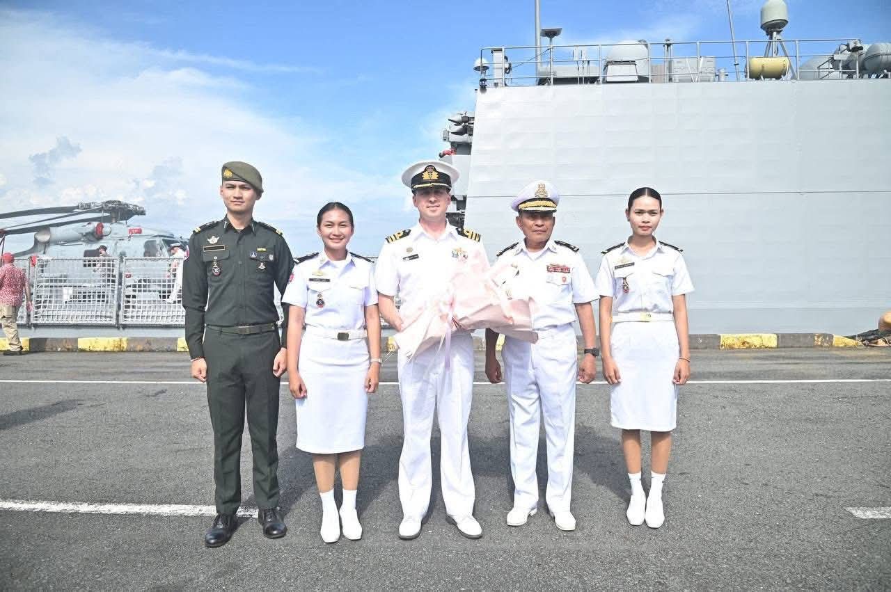 លោកឧត្តមនាវីត្រី អ៉ិន សុខេមរ៉ា នាយសេនាធិការរង មូលដ្ឋានសមុទ្ររាម និងនាយនាវីជាច្រើនរូប អញ្ជើញទៅទទួលស្វាគមន៍នាវាកងទ័ពជើងទឹកអូស្ត្រាលី ចំនួន១គ្រឿង ឈ្មោះ នាវាHMAS Ballarat -FFH155 (Anzac Class FFH) ដឹកនាំដោយវរនាវីទោ Dean Uren មេបញ្ជាការនាវា នៅកំពង់ផែស្វយ័តក្រុងព្រះសីហនុ។