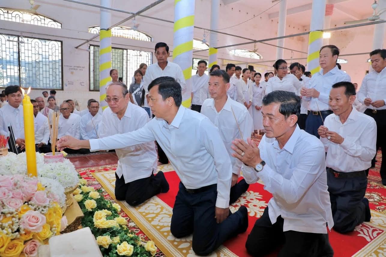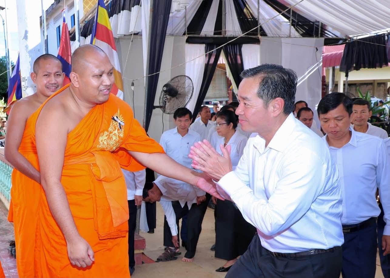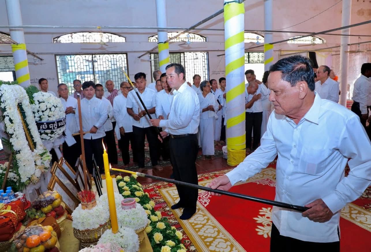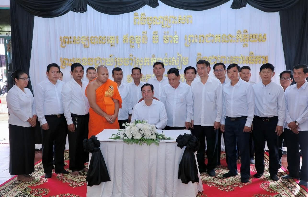 (កំពង់ចាម): ថ្ងៃសុក្រ ៣រោច ខែអស្សុជ ឆ្នាំម្សាញ់ សប្តស័ក ពុទ្ធសករាជ ២៥៦៩ ត្រូវនឹងថ្ងៃទី១០ ខែតុលា ឆ្នាំ២០២៥ ឯកឧត្តម អ៊ុន ចាន់ដា អភិបាល នៃគណៈអភិបាលខេត្តកំពង់ចាម និង ឯកឧត្តម ខ្លូត ផន ប្រធានក្រុមប្រឹក្សាខេត្ត និងសហការី អញ្ជើញចូលរួមរំលែកមរណទុក្ខ និងគោរពព្រះវិញ្ញាណក្ខន្ធព្រះសព ព្រះបាលត្ថេរ (ឥន្ទមុនី) ធី ម៉ាន់ ព្រះរាជាគណៈកិត្តិយសនៃព្រះរាជាណាចក្រកម្ពុជា ព្រះឧបជ្ឈាយ៍ប្រចាំស្រុកកំពង់សៀម និងជាព្រះចៅអធិការវត្តនគរបាជ័យក្នុង ដែលបានទទួលអនិច្ចធម្មកាល ពីថ្ងៃអង្គារ ១៥កើត ខែអស្សុជ ឆ្នាំម្សាញ់ សប្តស័ក ព.ស.២៥៦៩ ត្រូវនឹងថ្ងៃទី០៧ ខែតុលា ឆ្នាំ២០២៥ វេលា ម៉ោង៤:១៨នាទីរសៀល ក្នុងព្រះជន្មាយុ៨៨ ព្រះវស្សា ដោយព្រះជរាពាធ ស្តិនៅក្នុងវត្តនគរបាជ័យក្នុង ស្រុកកំពង់សៀម ខេត្តកំពង់ចាម។