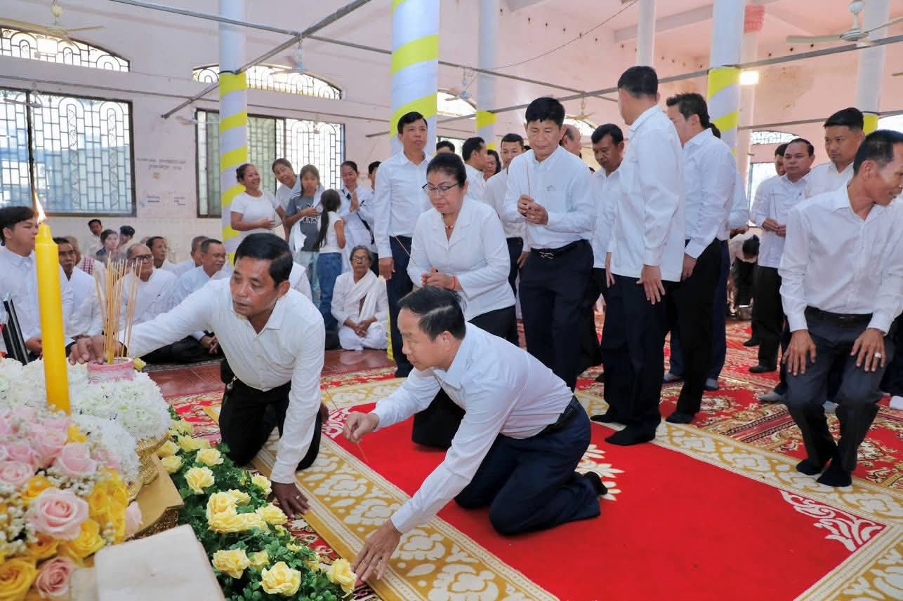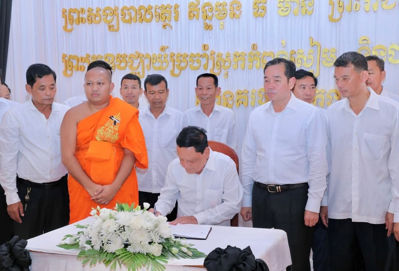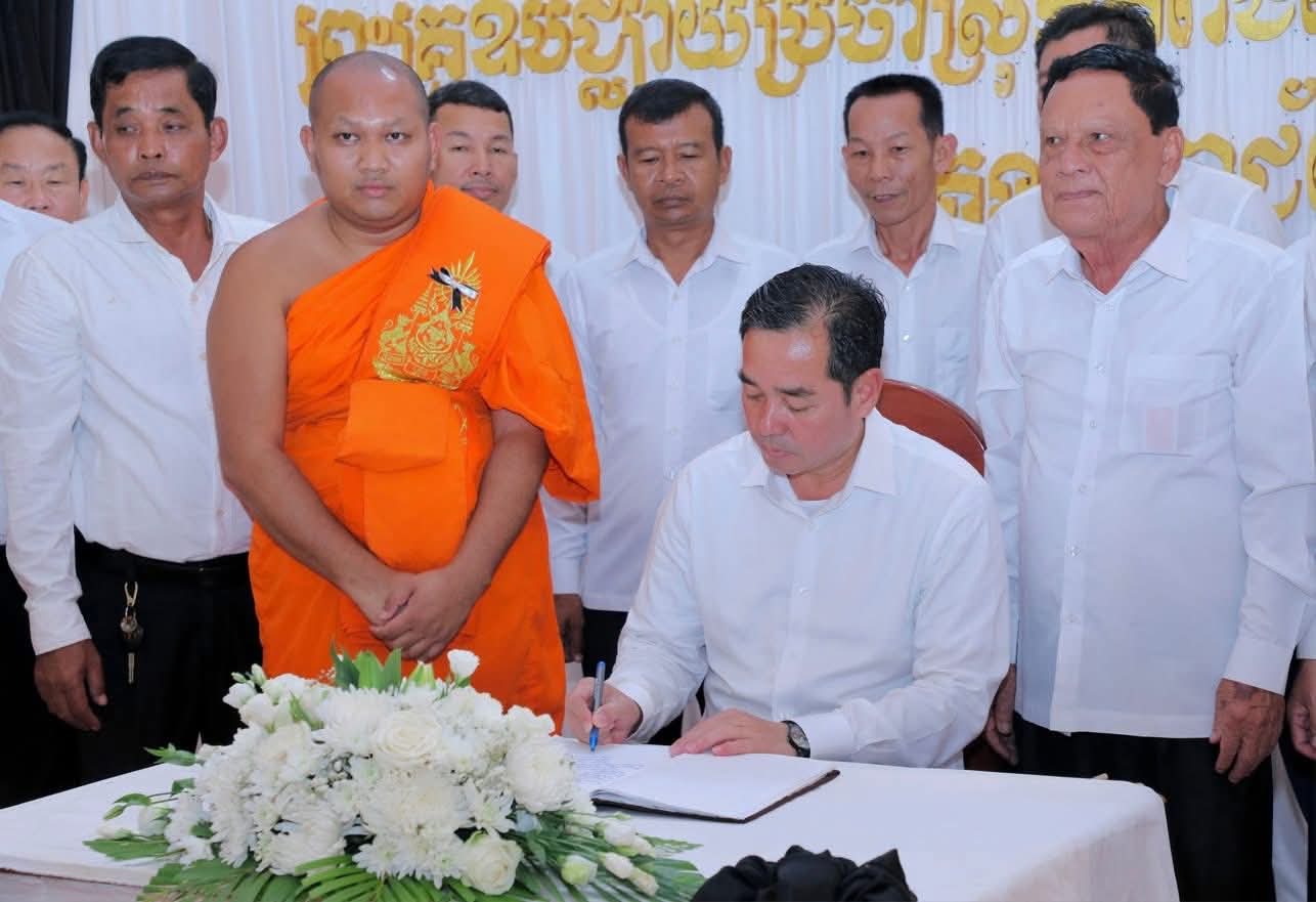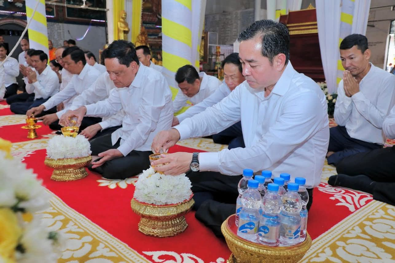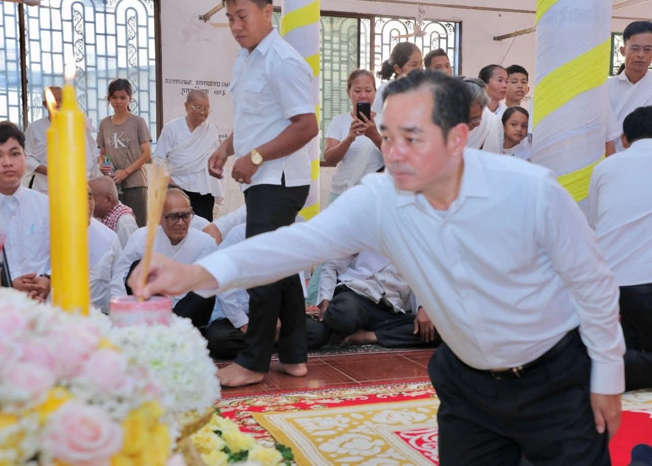(កំពង់ចាម): ថ្ងៃសុក្រ ៣រោច ខែអស្សុជ ឆ្នាំម្សាញ់ សប្តស័ក ពុទ្ធសករាជ ២៥៦៩ ត្រូវនឹងថ្ងៃទី១០ ខែតុលា ឆ្នាំ២០២៥ ឯកឧត្តម អ៊ុន ចាន់ដា អភិបាល នៃគណៈអភិបាលខេត្តកំពង់ចាម និង ឯកឧត្តម ខ្លូត ផន ប្រធានក្រុមប្រឹក្សាខេត្ត និងសហការី អញ្ជើញចូលរួមរំលែកមរណទុក្ខ និងគោរពព្រះវិញ្ញាណក្ខន្ធព្រះសព ព្រះបាលត្ថេរ (ឥន្ទមុនី) ធី ម៉ាន់ ព្រះរាជាគណៈកិត្តិយសនៃព្រះរាជាណាចក្រកម្ពុជា ព្រះឧបជ្ឈាយ៍ប្រចាំស្រុកកំពង់សៀម និងជាព្រះចៅអធិការវត្តនគរបាជ័យក្នុង ដែលបានទទួលអនិច្ចធម្មកាល ពីថ្ងៃអង្គារ ១៥កើត ខែអស្សុជ ឆ្នាំម្សាញ់ សប្តស័ក ព.ស.២៥៦៩ ត្រូវនឹងថ្ងៃទី០៧ ខែតុលា ឆ្នាំ២០២៥ វេលា ម៉ោង៤:១៨នាទីរសៀល ក្នុងព្រះជន្មាយុ៨៨ ព្រះវស្សា ដោយព្រះជរាពាធ ស្តិនៅក្នុងវត្តនគរបាជ័យក្នុង ស្រុកកំពង់សៀម ខេត្តកំពង់ចាម។