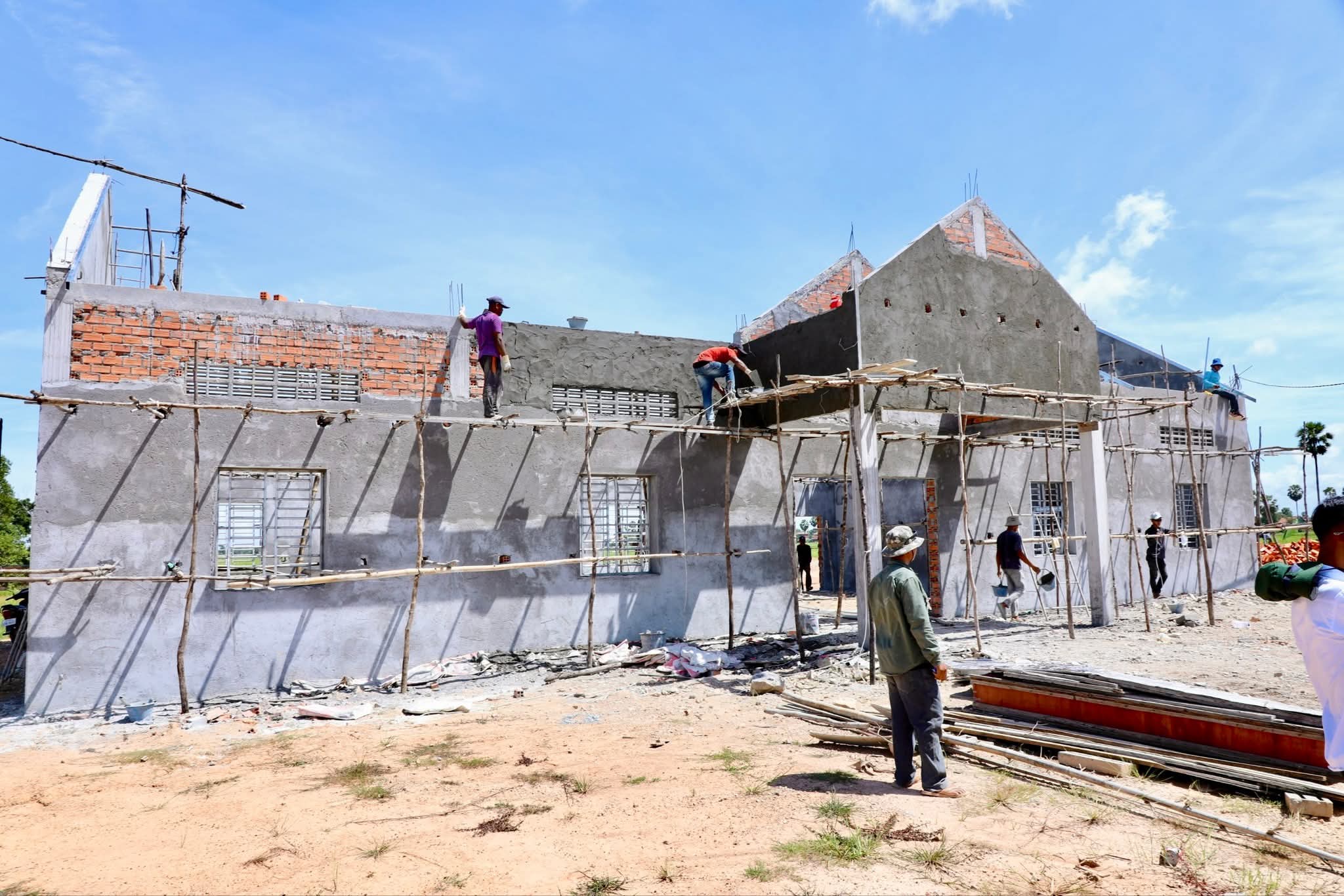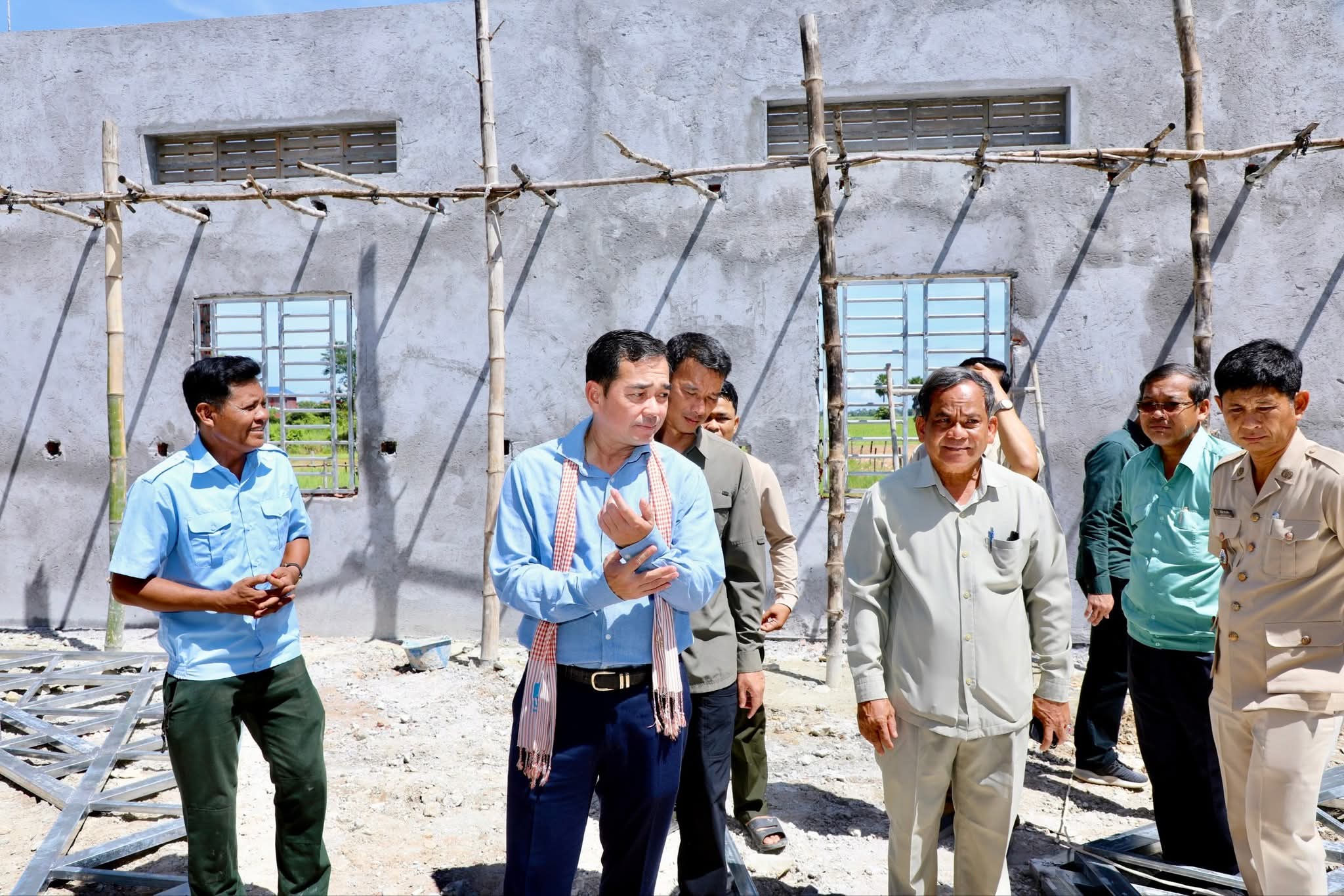 (កំពង់ចាម) :ឯកឧត្តម អ៊ុន ចាន់ដា ប្រធានគណៈកម្មាធិការគណបក្សប្រជាជនកម្ពុជាខេត្តកំពង់ចាម បានដឹកនាំក្រុមការងារ និងមន្ត្រីបច្ចេកទេស អញ្ជើញចុះពិនិត្យវឌ្ឍនភាពការសាងសង់ទីស្នាក់ការគណបក្សប្រជាជនកម្ពុជា ឃុំសណ្ដែក ស្រុកបាធាយ ដែលគិតមកដល់ពេលនេះ សំណង់ខាងលើសម្រេចការសាងសង់បានប្រមាណជាង70% ហើយរំពឹងថាគម្រោងនេះនឹងកសាងរួចរាល់100% នៅបំណាច់ឆ្នាំ 202។