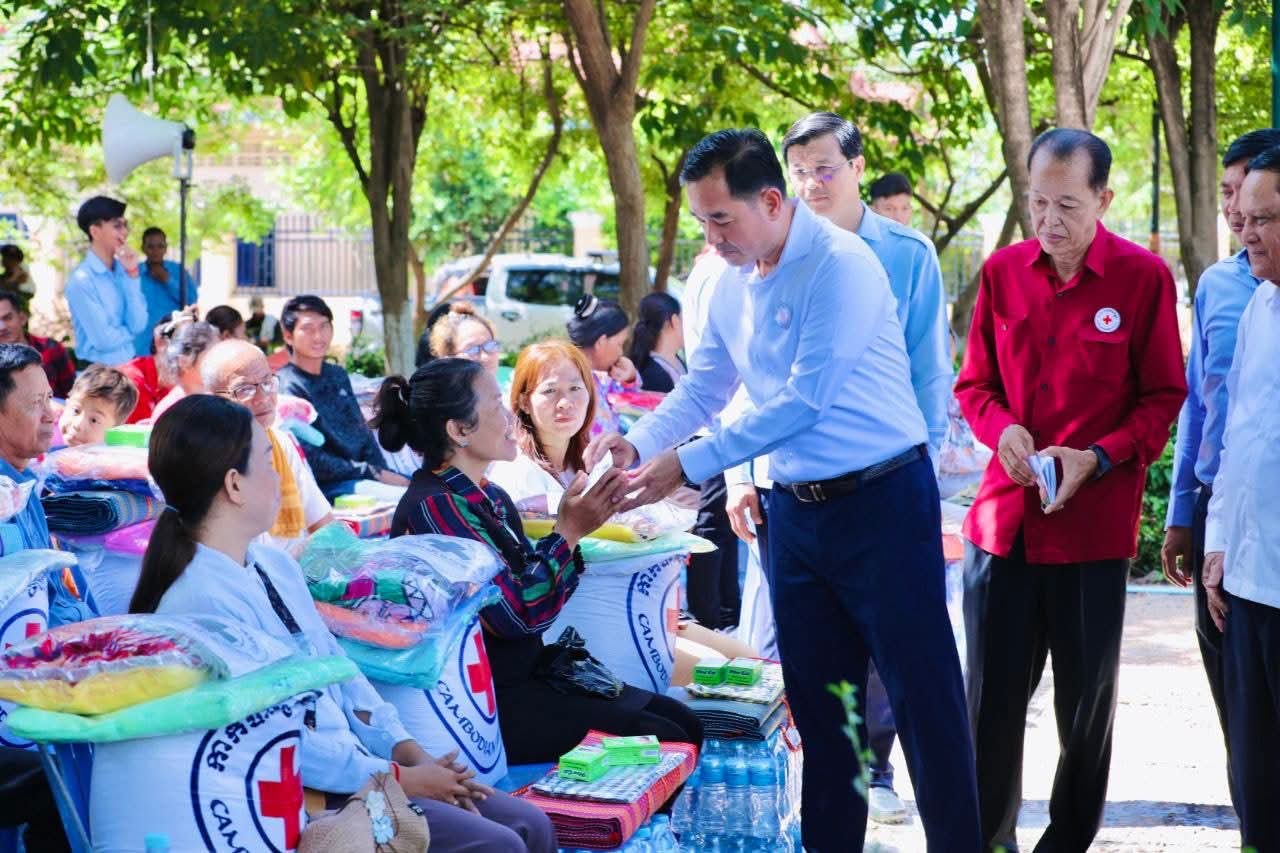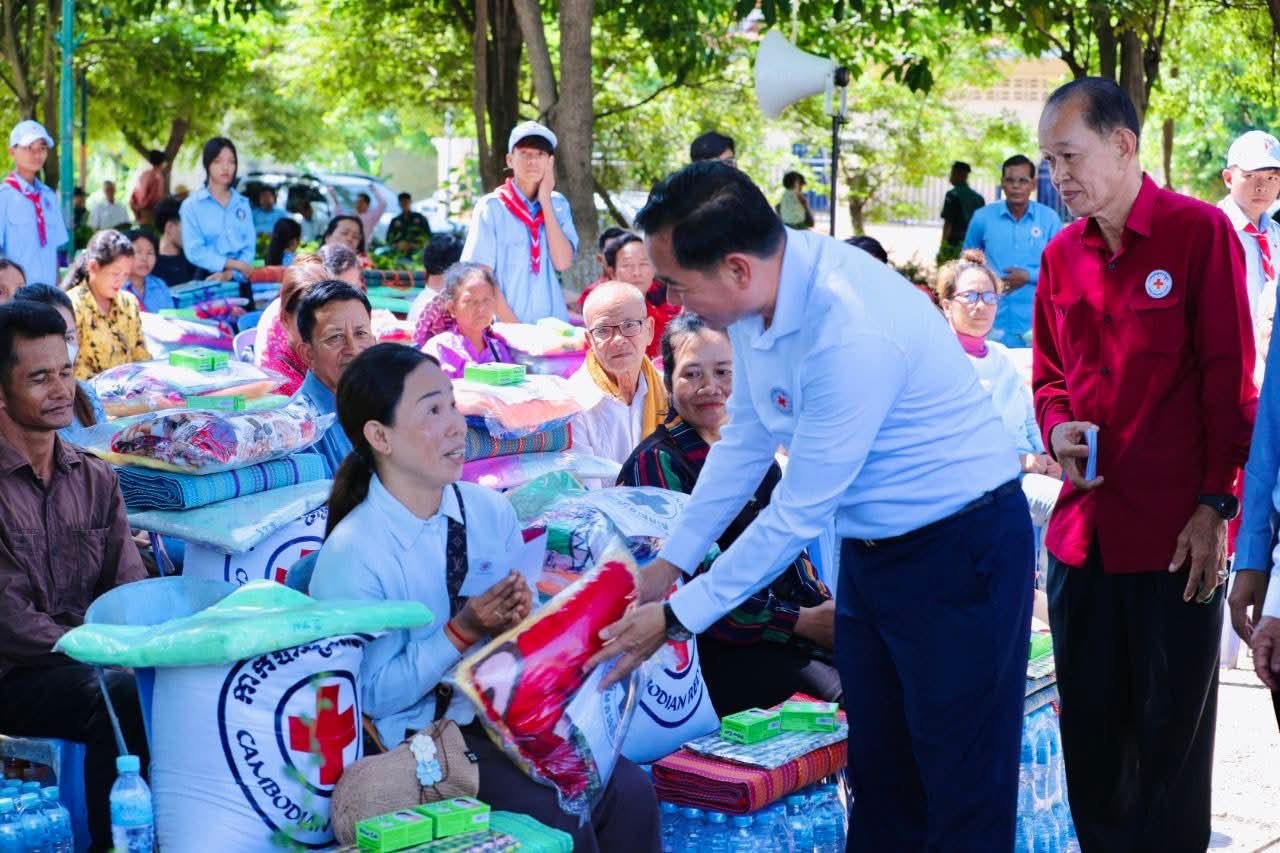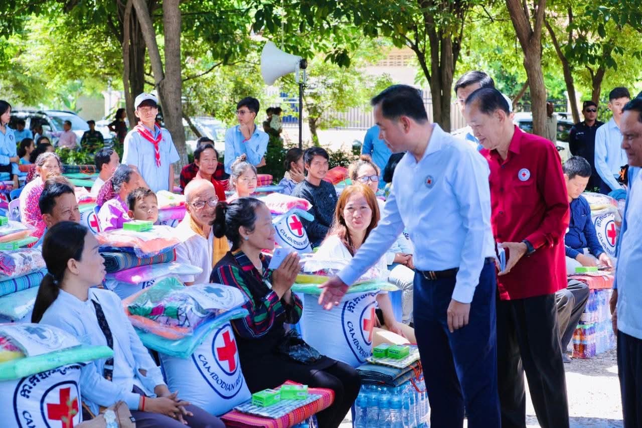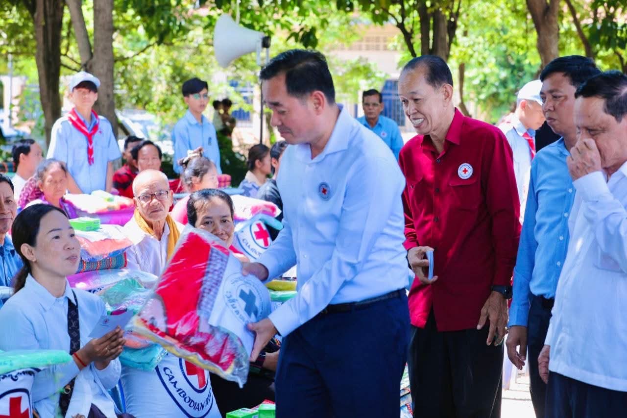 (កំពង់ចាម)៖ នៅព្រឹកថ្ងៃទី៥ ខែសីហា ឆ្នាំ២០២៥ នេះ ឯកឧត្តម អ៊ុន ចាន់ដា អភិបាលខេត្តកំពង់ចាម និងជាប្រធានគណ:កម្មាធិការសាខា រួមជាមួយ ឯកឧត្តម លោកជំទាវ លោក លោកស្រី សមាជិក សមាជិកា គណ:កម្មាធិការសាខា និងមន្ត្រីអនុសាខាស្រុក, ក្រុមកាកបាទក្រហមកម្ពុជាឃុំ និងមន្ត្រីពាក់ព័ន្ធ បានអញ្ជើញចុះទៅសួរសុខទុក្ខ និងនាំយកអំណោយមនុស្សធម៌ របស់សម្តេចកិត្តិព្រឹទ្ធបណ្ឌិត ប្រធានកាកបាទក្រហមកម្ពុជា ផ្ដល់ជូនបងប្អូនប្រជាពលរដ្ឋ ដែលបានភៀសខ្លួនមកពីបណ្តាខេត្ត ជាប់តំបន់ព្រំដែន ចំនួន ១០៥គ្រួសារ ក្នុងនេះ មានទាំងភរិយាយោធិនជួរមុខ ៧គ្រួសារ ដែលកំពុងជួបលំបាកជីវភាព ដែលបច្ចុប្បន្នស្នាក់នៅក្នុងឃុំ ចំនួន ១៤ នៃស្រុកស្រីសន្ធរ ខេត្តកំពង់ចាម។