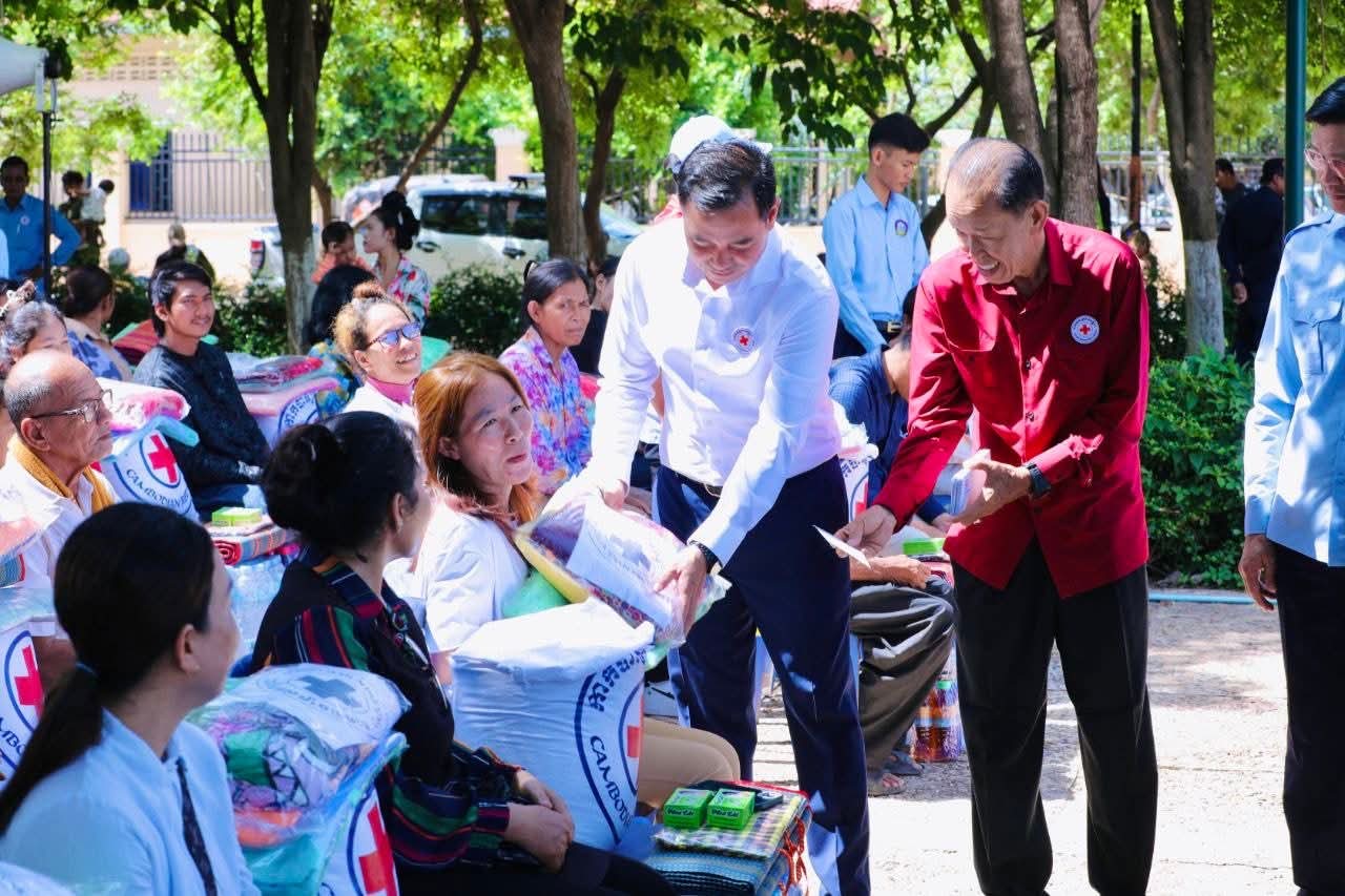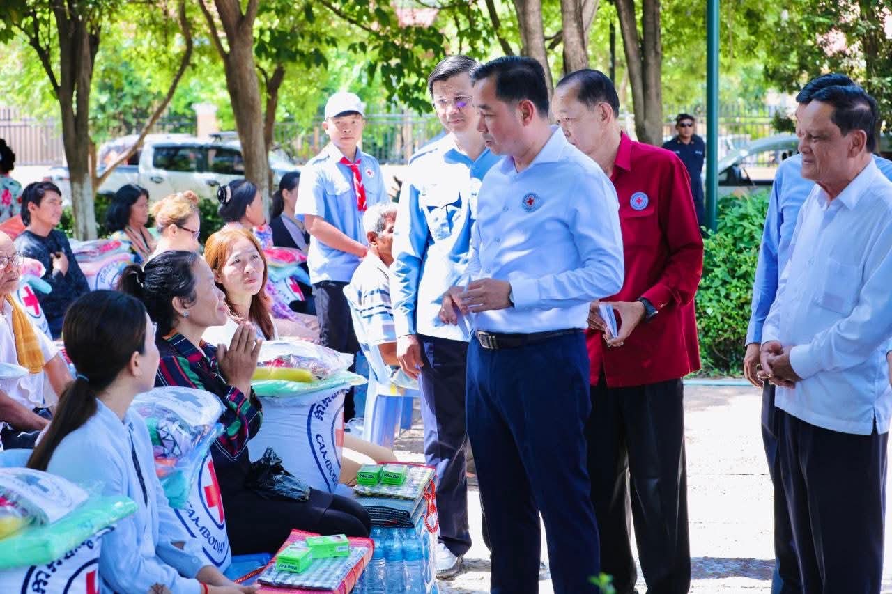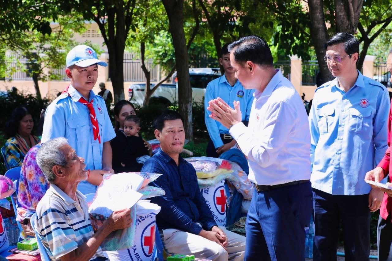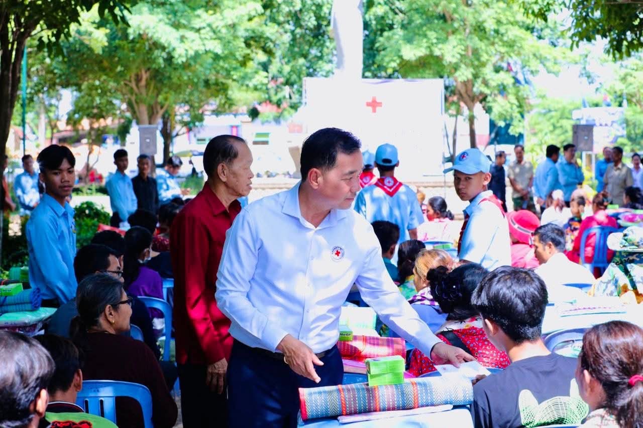 (កំពង់ចាម)៖ នៅព្រឹកថ្ងៃទី៥ ខែសីហា ឆ្នាំ២០២៥ នេះ ឯកឧត្តម អ៊ុន ចាន់ដា អភិបាលខេត្តកំពង់ចាម និងជាប្រធានគណ:កម្មាធិការសាខា រួមជាមួយ ឯកឧត្តម លោកជំទាវ លោក លោកស្រី សមាជិក សមាជិកា គណ:កម្មាធិការសាខា និងមន្ត្រីអនុសាខាស្រុក, ក្រុមកាកបាទក្រហមកម្ពុជាឃុំ និងមន្ត្រីពាក់ព័ន្ធ បានអញ្ជើញចុះទៅសួរសុខទុក្ខ និងនាំយកអំណោយមនុស្សធម៌ របស់សម្តេចកិត្តិព្រឹទ្ធបណ្ឌិត ប្រធានកាកបាទក្រហមកម្ពុជា ផ្ដល់ជូនបងប្អូនប្រជាពលរដ្ឋ ដែលបានភៀសខ្លួនមកពីបណ្តាខេត្ត ជាប់តំបន់ព្រំដែន ចំនួន ១០៥គ្រួសារ ក្នុងនេះ មានទាំងភរិយាយោធិនជួរមុខ ៧គ្រួសារ ដែលកំពុងជួបលំបាកជីវភាព ដែលបច្ចុប្បន្នស្នាក់នៅក្នុងឃុំ ចំនួន ១៤ នៃស្រុកស្រីសន្ធរ ខេត្តកំពង់ចាម។