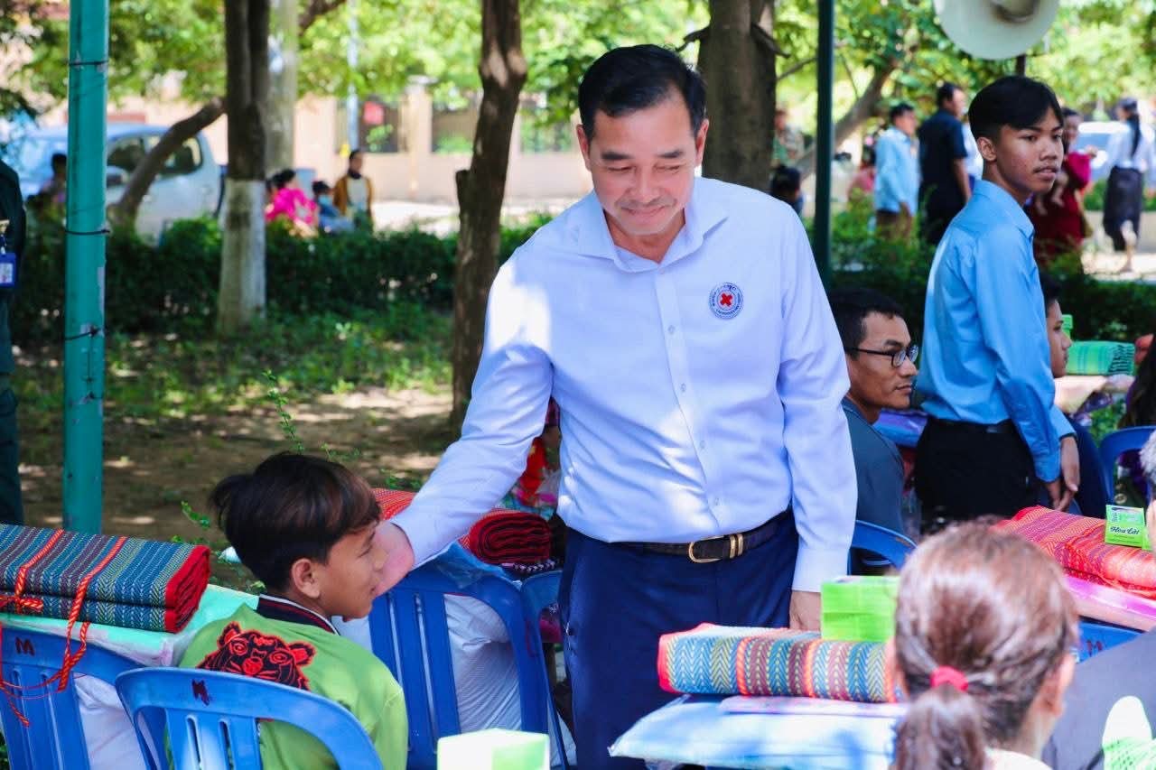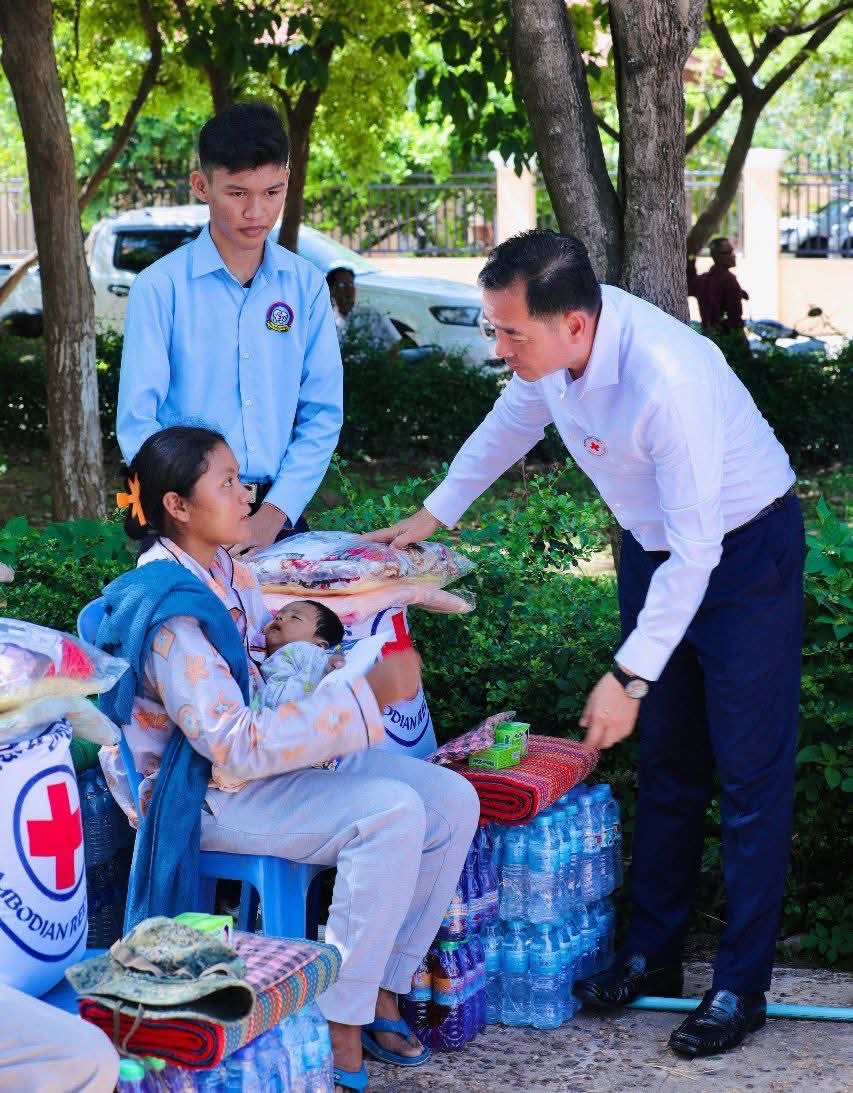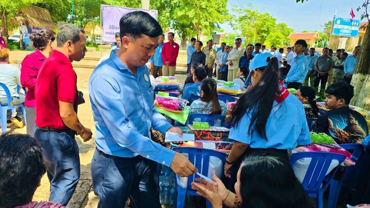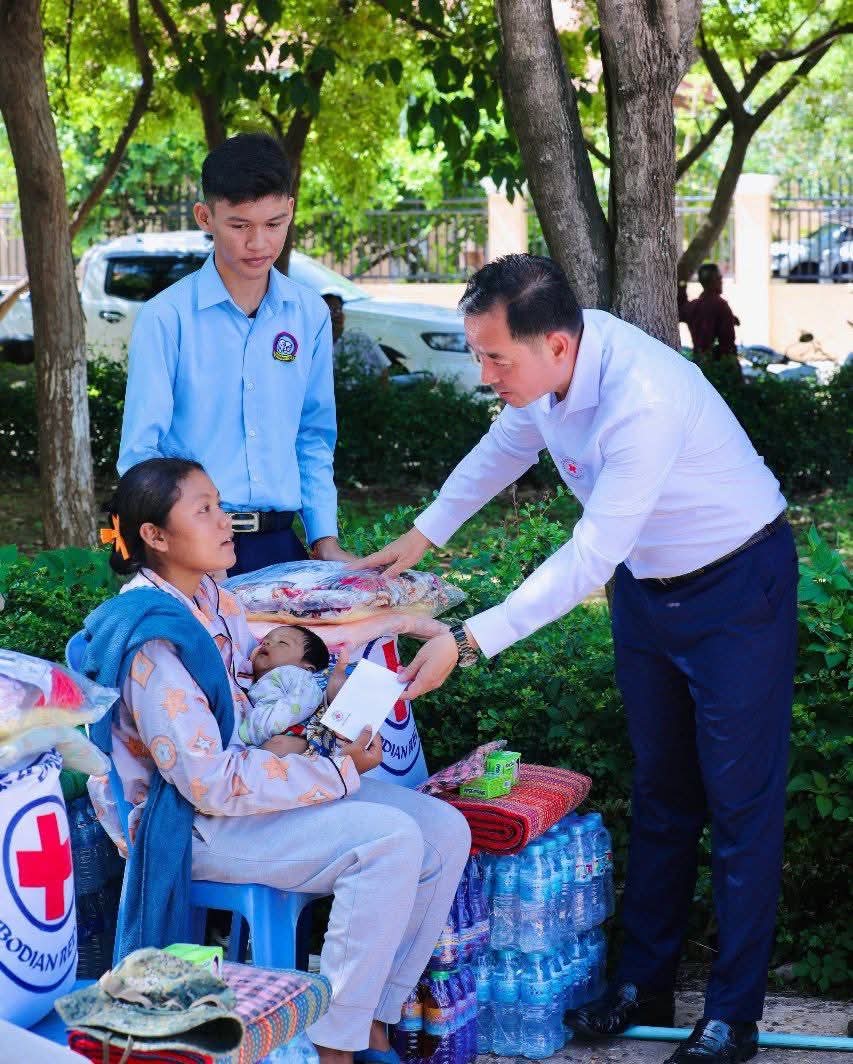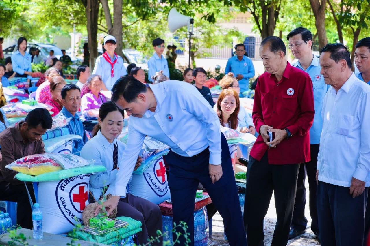 (កំពង់ចាម)៖ នៅព្រឹកថ្ងៃទី៥ ខែសីហា ឆ្នាំ២០២៥ នេះ ឯកឧត្តម អ៊ុន ចាន់ដា អភិបាលខេត្តកំពង់ចាម និងជាប្រធានគណ:កម្មាធិការសាខា រួមជាមួយ ឯកឧត្តម លោកជំទាវ លោក លោកស្រី សមាជិក សមាជិកា គណ:កម្មាធិការសាខា និងមន្ត្រីអនុសាខាស្រុក, ក្រុមកាកបាទក្រហមកម្ពុជាឃុំ និងមន្ត្រីពាក់ព័ន្ធ បានអញ្ជើញចុះទៅសួរសុខទុក្ខ និងនាំយកអំណោយមនុស្សធម៌ របស់សម្តេចកិត្តិព្រឹទ្ធបណ្ឌិត ប្រធានកាកបាទក្រហមកម្ពុជា ផ្ដល់ជូនបងប្អូនប្រជាពលរដ្ឋ ដែលបានភៀសខ្លួនមកពីបណ្តាខេត្ត ជាប់តំបន់ព្រំដែន ចំនួន ១០៥គ្រួសារ ក្នុងនេះ មានទាំងភរិយាយោធិនជួរមុខ ៧គ្រួសារ ដែលកំពុងជួបលំបាកជីវភាព ដែលបច្ចុប្បន្នស្នាក់នៅក្នុងឃុំ ចំនួន ១៤ នៃស្រុកស្រីសន្ធរ ខេត្តកំពង់ចាម។