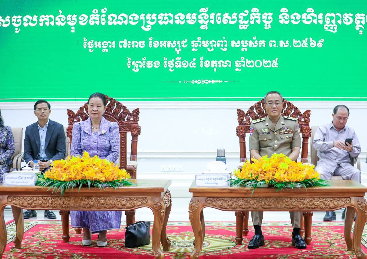(ព្រៃវែង) :នាថ្ងៃអង្គារ ៧រោច ខែអស្សុជ ឆ្នាំម្សាញ់ សប្តស័ក ពុទ្ធសករាជ ២៥៦៩ ត្រូវនឹងថ្ងៃទី១៤ ខែតុលា ឆ្នាំ២០២៥នេះ ឯកឧត្តម សួន សុម៉ាលីន អភិបាល នៃគណ: អភិបាលខេត្តព្រៃវែង បានអញ្ជើញជាគណ:អធិបតីក្នុងពិធីប្រកាសចូលកាន់មុខដំណែង របស់លោក ឈួន ខេមរិទ្ធ ប្រធានមន្ទីរ សេដ្ឋកិច្ច និងហិរញ្ញវត្ថុ ខេត្តព្រៃវែងថ្មី ដោយជំនួស លោក ទួន សុគន្ធ ដែលត្រូវចូលនិវត្តន៍ ក្រោមអធិបតីភាព លោកជំទាវ ស៊ុន ណាលី អនុរដ្ឋលេខាធិការ តំណាងដ៏ខ្ពង់ខ្ពស់ ឯកឧត្តមអគ្គបណ្ឌិតសភាចារ្យ អូន ព័ន្ធមុនីរ័ត្ន ឧបនាយករដ្ឋមន្រ្តី រដ្ឋមន្រ្តីក្រសួង សេដ្ឋកិច្ចនិងហិរញ្ញវត្ថុ ប្រព្រឹត្តទៅនៅសាលប្រជុំធំ «A» សាលាខេត្តព្រៃវែង។ពិធីប្រកាសនោះដែរ មានការញ្ជើញចូលរួមពីប្រតិភូអមដំណើរ លោកជំទាវអនុរដ្ឋលេខាធិការ ឯកឧត្តមសមាជិកក្រុមប្រឹក្សាខេត្ត ឯកឧត្តមប្រធានសាលាដំបូងខេត្ត ឯកឧត្តមព្រះរាជអាជ្ញានៃអយ្យការអមសាលាដំបូងខេត្ត ឯកឧត្តម អភិបាលរងខេត្ត នាយក នាយករងសាលាខេត្ត មេបញ្ជាការកងកម្លាំងទាំងបីខេត្ត ប្រធានពន្ធនាគារខេត្ត នាយកទីចាត់ការ ប្រធានផ្នែក ប្រធានអង្គភាព ចំណុះសាលាខេត្ត ប្រធានមន្ទីរ សេដ្ឋកិច្ច និងហិរញ្ញវត្ថុរាជធានី ខេត្ត លោក លោកស្រី ប្រធានមន្ទីរ អង្គភាព ជុំវិញខេត្ត អភិបាលក្រុង ស្រុកទាំង១៣ មេឃុំ ចៅសង្កាត់ និងមន្រ្តីមន្ទីរសេដ្ឋកិច្ច និងហិរញ្ញវត្ថុ សរុបប្រមាណចំនួន ២៤៣រូប។