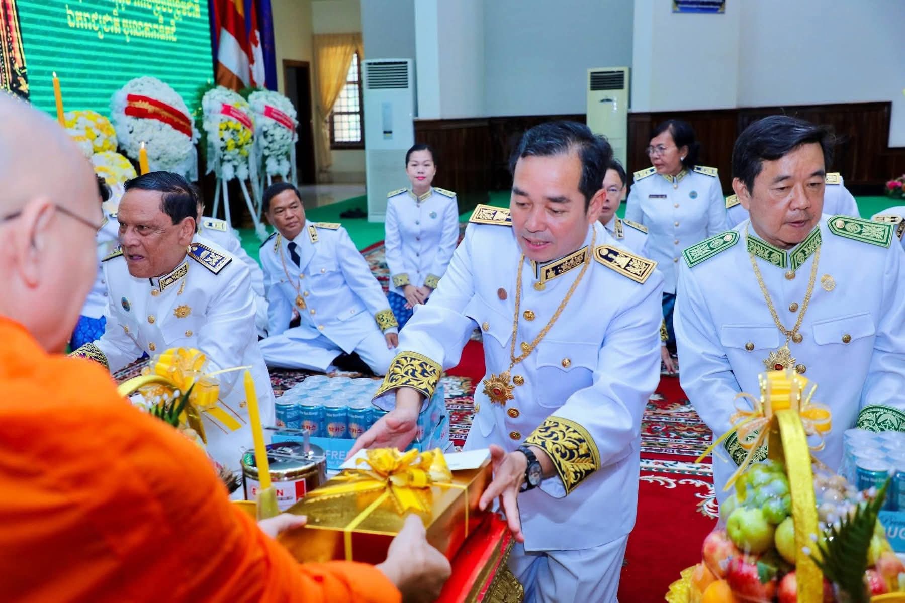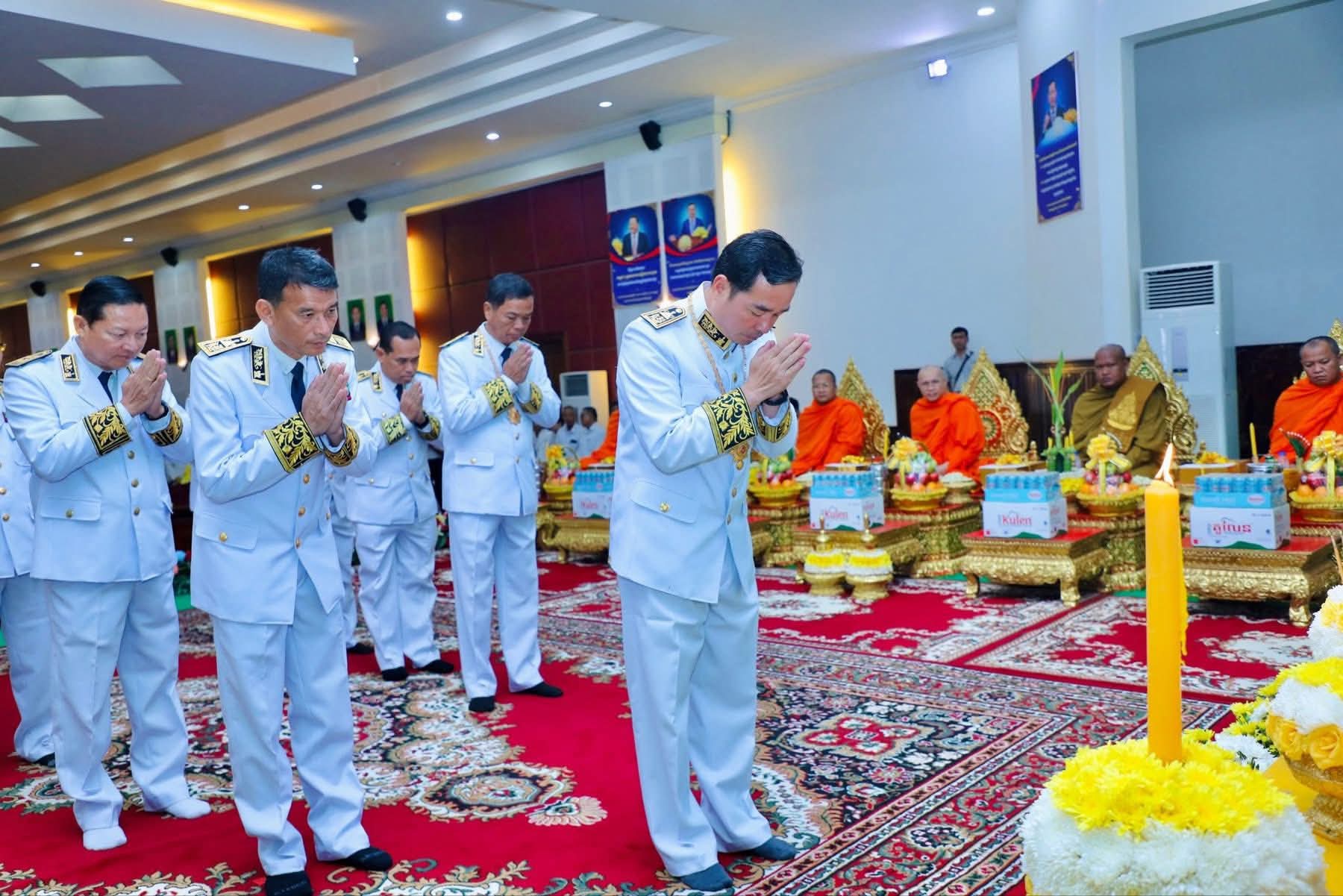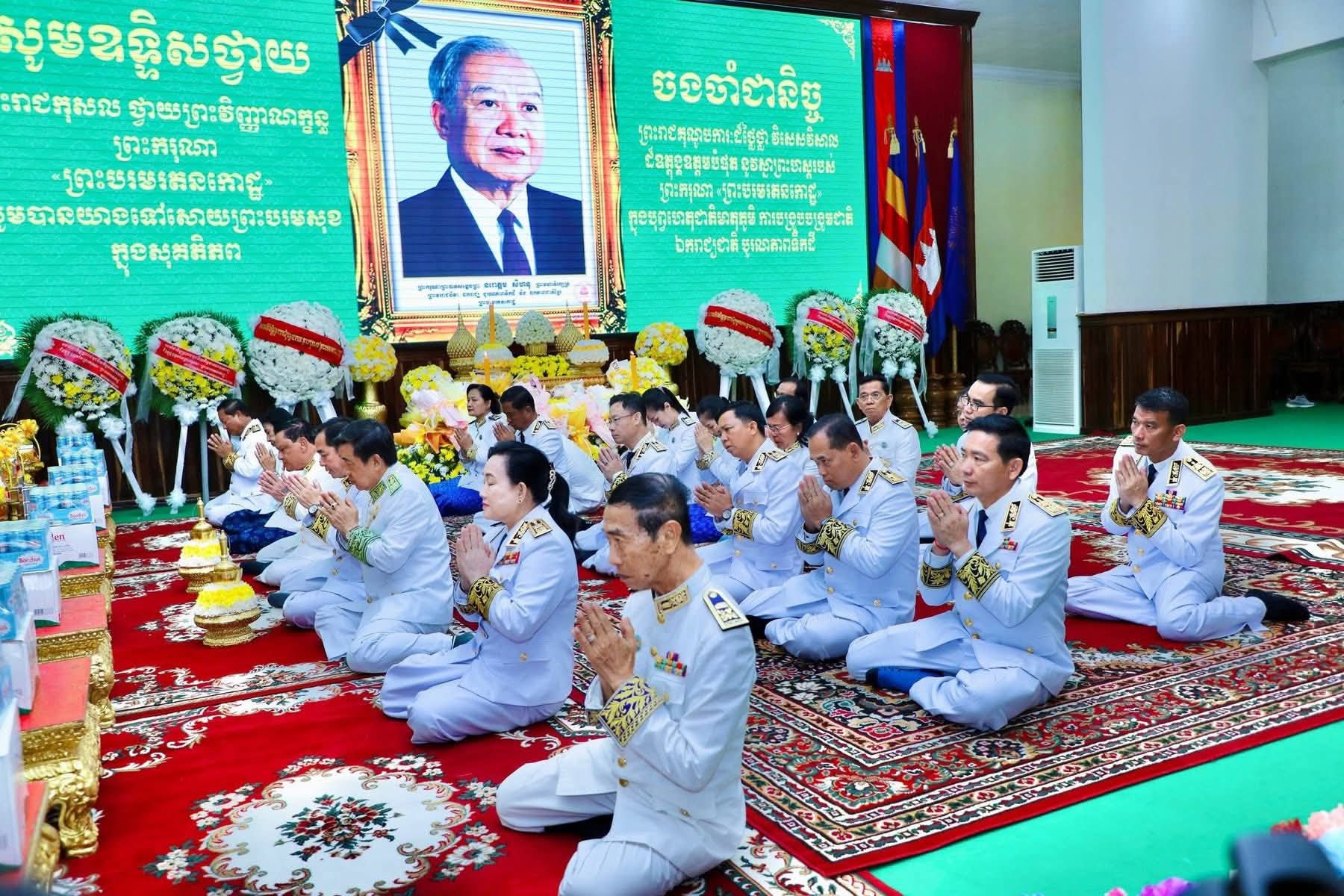 (កំពង់ចាម): ព្រឹកថ្ងៃពុធ ៨រោច ខែអស្សុជ ឆ្នាំម្សាញ់ សប្តស័ក ព.ស. ២៥៦៩ ត្រូវនឹងថ្ងៃទី១៥ ខែតុលា ឆ្នាំ២០២៥ រដ្ឋបាលខេត្តកំពង់ចាម បានប្រារព្ធពិធីគោរពវិញ្ញាណក្ខន្ធ ព្រះករុណា ព្រះបាទសម្តេច ព្រះនរោត្តមសីហនុ ព្រះមហាវីរក្សត្រ ព្រះវររាជបិតា ឯករាជ្យបូរណភាពទឹកដី និងឯកភាពជាតិខ្មែរ ព្រះបរមរតនកោដ្ឋ ក្រោមអធិបតីភាព ឯកឧត្តម អ៊ុន ចាន់ដា អភិបាលនៃគណៈអភិបាលខេត្តកំពង់ចាម ឯកឧត្តម ខ្លូត ផន ប្រធានក្រុមប្រឹក្សាខេត្ត និង ឯកឧត្តម សួស ឡា ប្រធានសាលាដំបូងខេត្តកំពង់ចាម ដោយមានការនិមន្តអញ្ជើញចូលរួមពីព្រះមេគណខេត្ត ព្រះមន្ត្រីសង្ឃខេត្ត សមាជិកក្រុមប្រឹក្សាខេត្ត អភិបាលរងខេត្ត កងកម្លាំងប្រដាប់អាវុធទាំងបី លោក លោកស្រី ប្រធានមន្ទីរអង្គភាពជុំវិញខេត្ត និងមន្ត្រីរាជការជាច្រើនរូប។