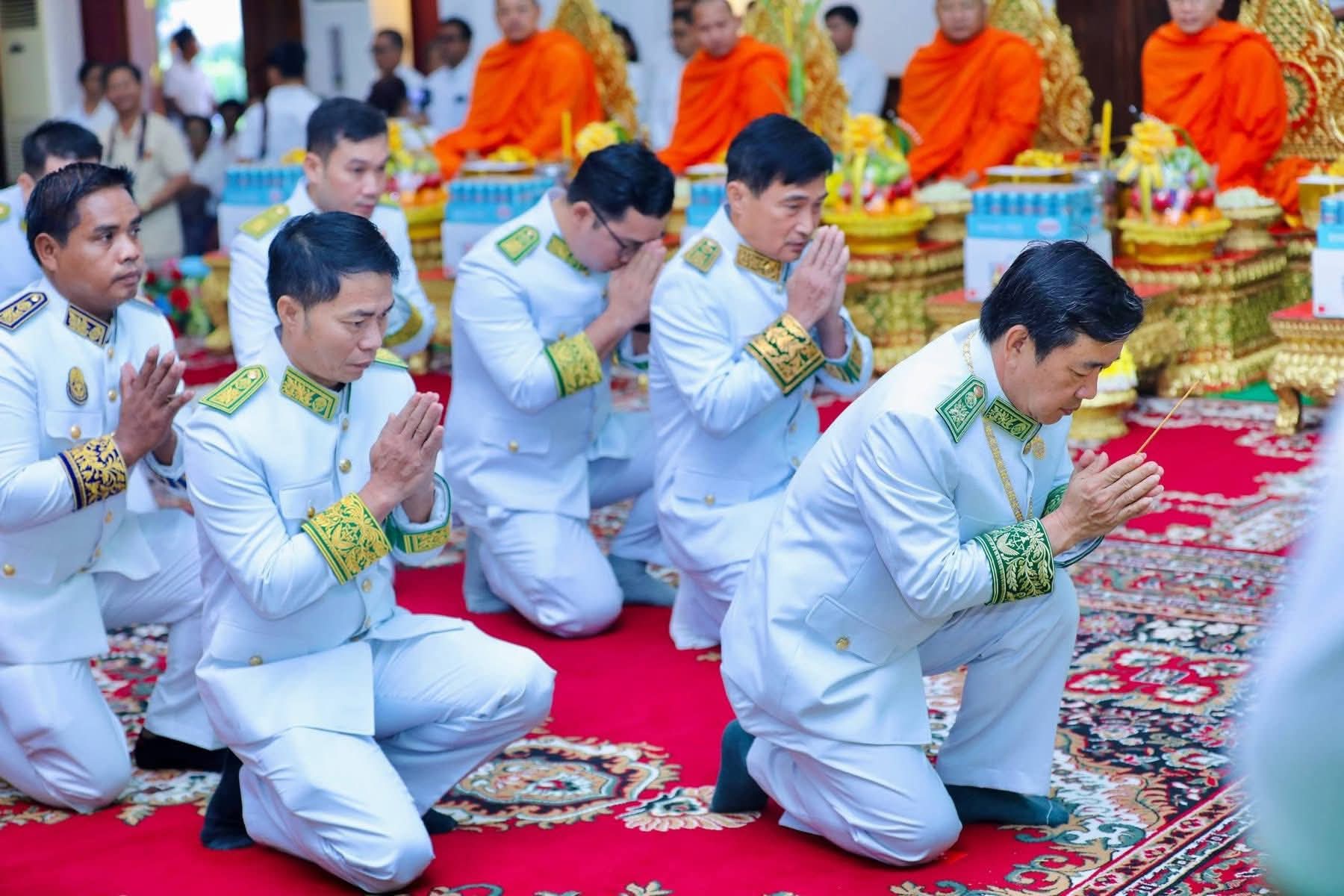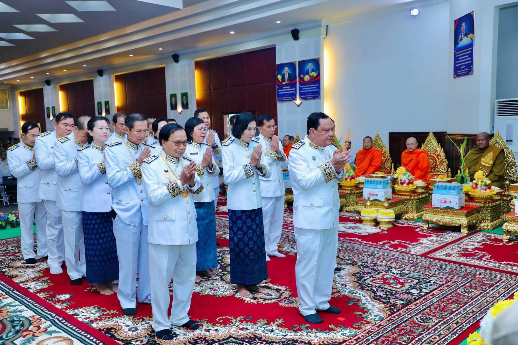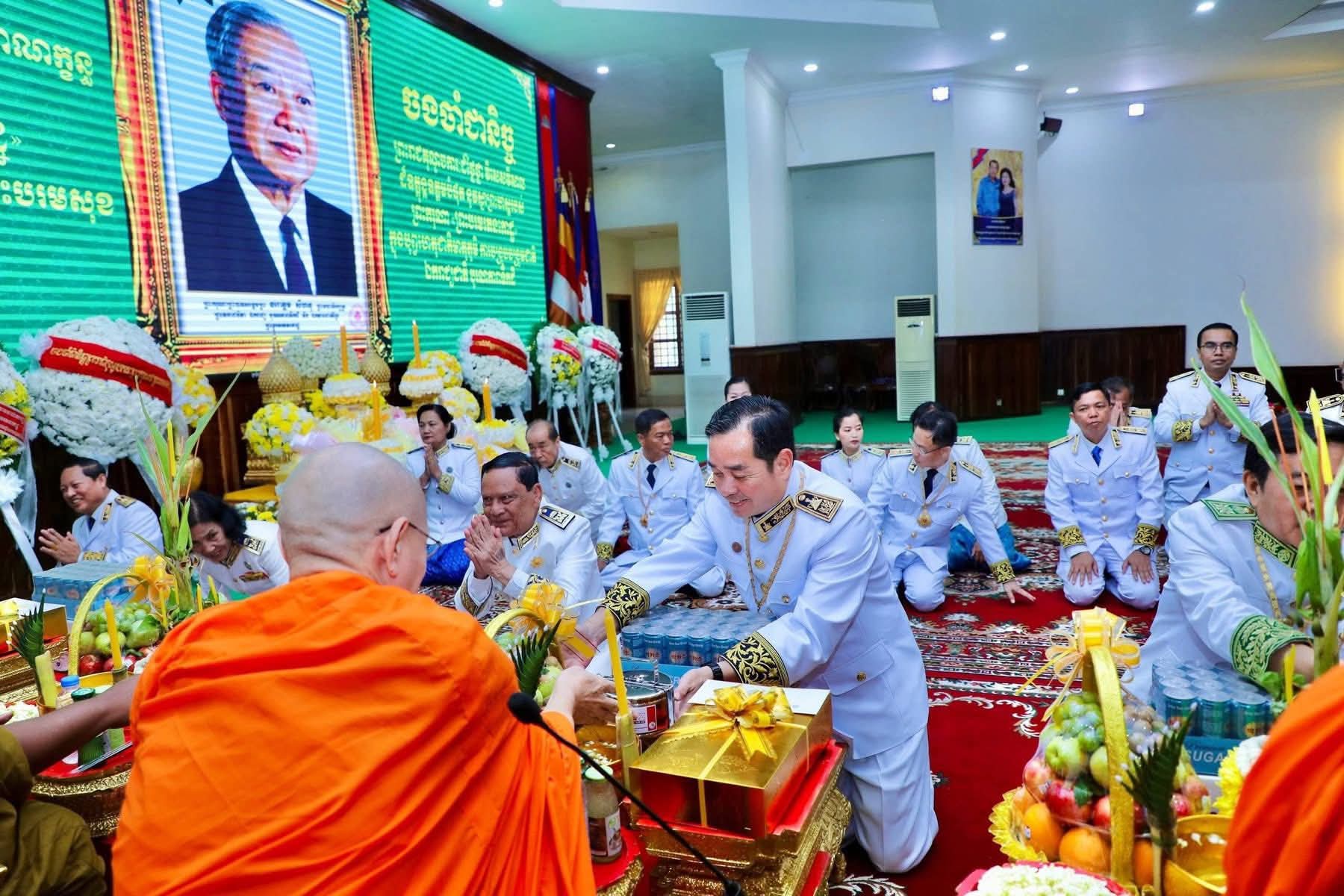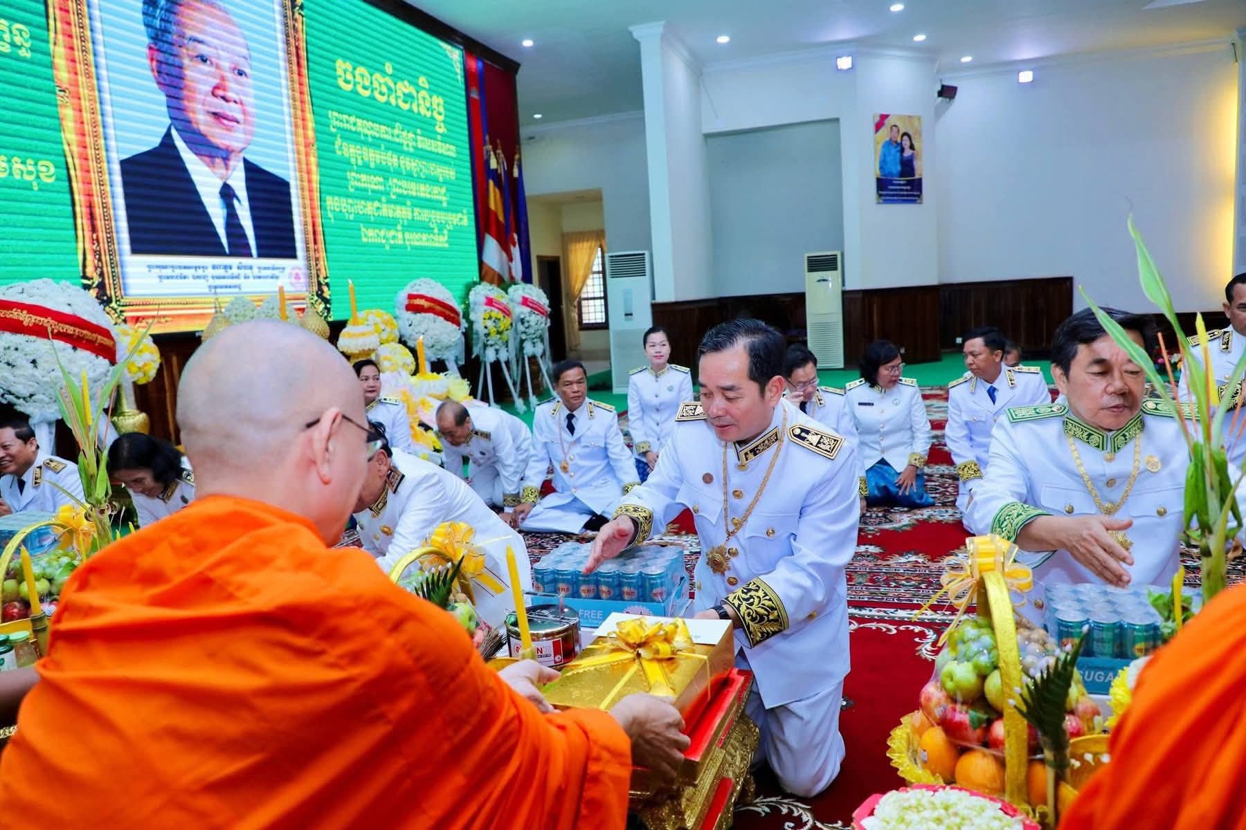 (កំពង់ចាម): ព្រឹកថ្ងៃពុធ ៨រោច ខែអស្សុជ ឆ្នាំម្សាញ់ សប្តស័ក ព.ស. ២៥៦៩ ត្រូវនឹងថ្ងៃទី១៥ ខែតុលា ឆ្នាំ២០២៥ រដ្ឋបាលខេត្តកំពង់ចាម បានប្រារព្ធពិធីគោរពវិញ្ញាណក្ខន្ធ ព្រះករុណា ព្រះបាទសម្តេច ព្រះនរោត្តមសីហនុ ព្រះមហាវីរក្សត្រ ព្រះវររាជបិតា ឯករាជ្យបូរណភាពទឹកដី និងឯកភាពជាតិខ្មែរ ព្រះបរមរតនកោដ្ឋ ក្រោមអធិបតីភាព ឯកឧត្តម អ៊ុន ចាន់ដា អភិបាលនៃគណៈអភិបាលខេត្តកំពង់ចាម ឯកឧត្តម ខ្លូត ផន ប្រធានក្រុមប្រឹក្សាខេត្ត និង ឯកឧត្តម សួស ឡា ប្រធានសាលាដំបូងខេត្តកំពង់ចាម ដោយមានការនិមន្តអញ្ជើញចូលរួមពីព្រះមេគណខេត្ត ព្រះមន្ត្រីសង្ឃខេត្ត សមាជិកក្រុមប្រឹក្សាខេត្ត អភិបាលរងខេត្ត កងកម្លាំងប្រដាប់អាវុធទាំងបី លោក លោកស្រី ប្រធានមន្ទីរអង្គភាពជុំវិញខេត្ត និងមន្ត្រីរាជការជាច្រើនរូប។
