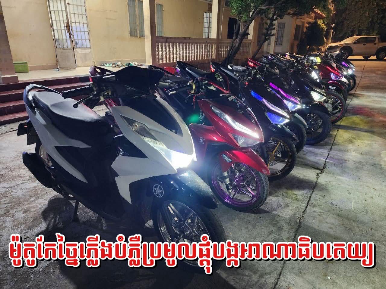 (បាត់ដំបង) :ស្ងាត់យូរហេីយ តែឥឡូវចេញមកដដែលទៀត ករណីក្រុមក្មេងៗប្រេីប្រាស់ម៉ូតូកែច្នៃភ្លេីងបំពាក់ប្រមូលផ្តុំគ្នាជិះលម្អរក្រុងបាត់ដំបងនាពេលរាត្រីយ៉ាងពពាក់ពពូនចំនួន១៣គ្រឿងត្រូវបានសមត្ថកិច្ចនគរបាលនាំមកកាន់ស្នង ការដ្ឋានដេីម្បីអនុវត្តតាមនីតិវិធី ។
