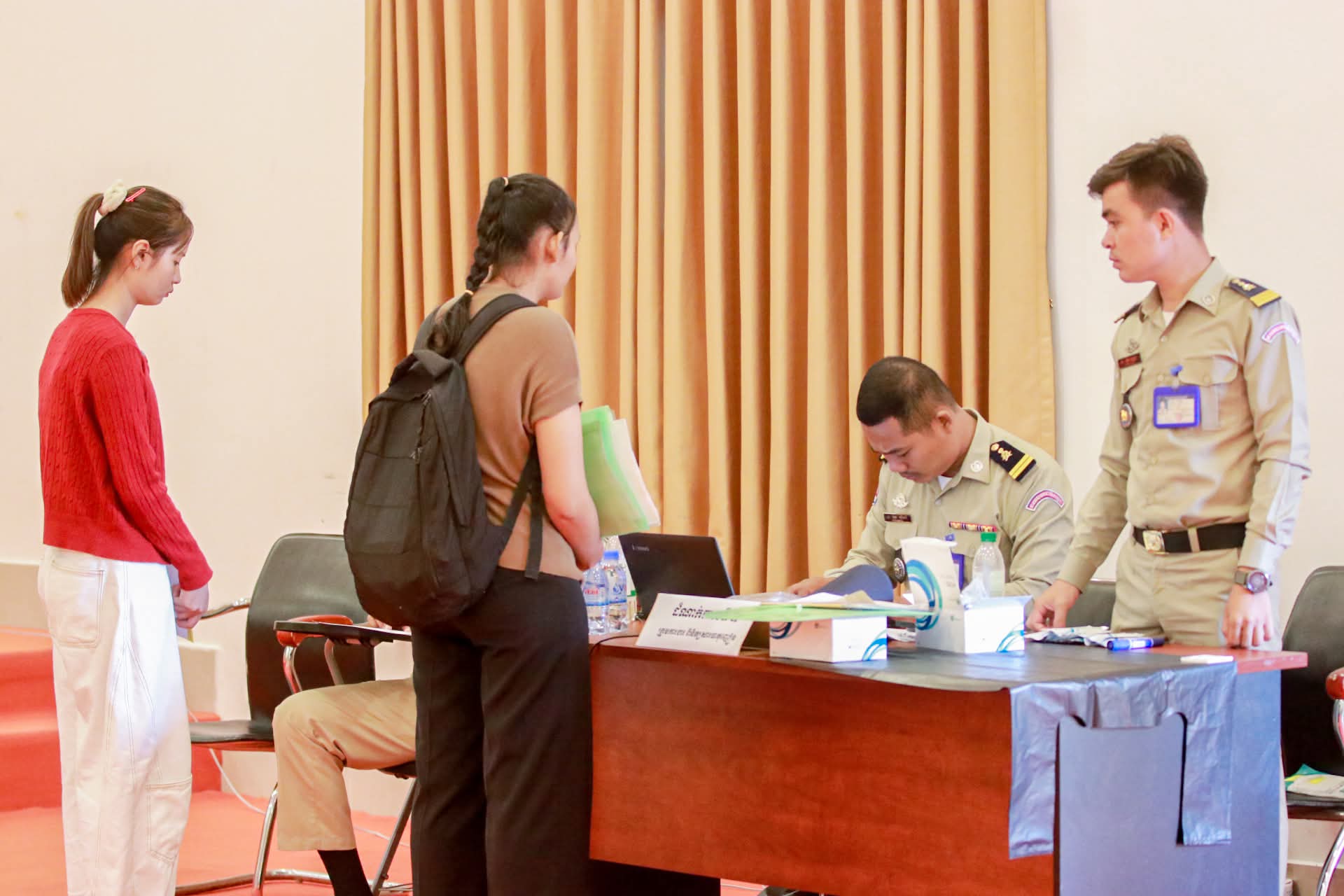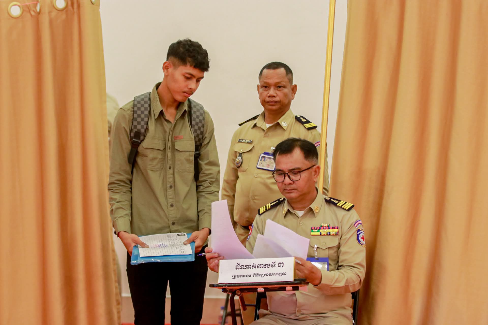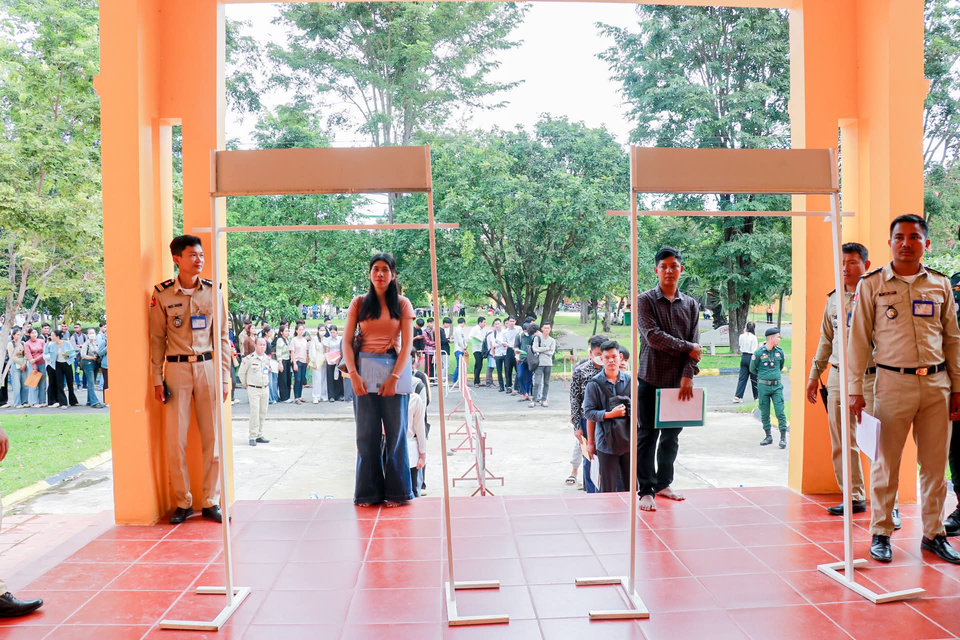 ខេត្តព្រៃវែង ៖ ថ្ងៃចន្ទ ១៣រោច ខែអស្សុជ ឆ្នាំម្សាញ់ សប្តស័ក ពុទ្ធសករាជ ២៥៦៩ ត្រូវនឹងថ្ងៃទី២០ ខែតុលា ឆ្នាំ២០២៥ ស្នងការដ្ឋាននគរបាលខេត្តព្រៃវែង យោងតាមប្រសាសន៍ណែនាំ ចង្អុលបង្ហាញរបស់លោកឧត្តមសេនីយ៍ទោ ឈឿន ប៊ុនឆន ស្នងការ នៃស្នងការដ្ឋាននគរបាលខេត្ត និងជាប្រធានអនុគណៈកម្មការ ប្រឡងប្រជែងជ្រើសរើស ក្របខ័ណ្ឌមន្ត្រីនគរបាលជាតិ នៃស្នងការដ្ឋាននគរបាលខេត្តព្រៃវែង កម្លាំងនគរបាលបានធ្វើការពិនិត្យដំណើរការផ្តល់ពាក្យ និងទទួលពាក្យសម្រាប់បេក្ខជន ប្រឡងប្រជែងជ្រើសរើស ក្របខ័ណ្ឌមន្ត្រីនគរបាលជាតិបំពេញជួសឆ្នាំ២០២៥ នៅសាលប្រជុំធំ ទួលបារាយណ៍អណ្ដែត ស្នងការដ្ឋាននគរបាលខេត្តព្រៃវែង៕ដោយសហការី