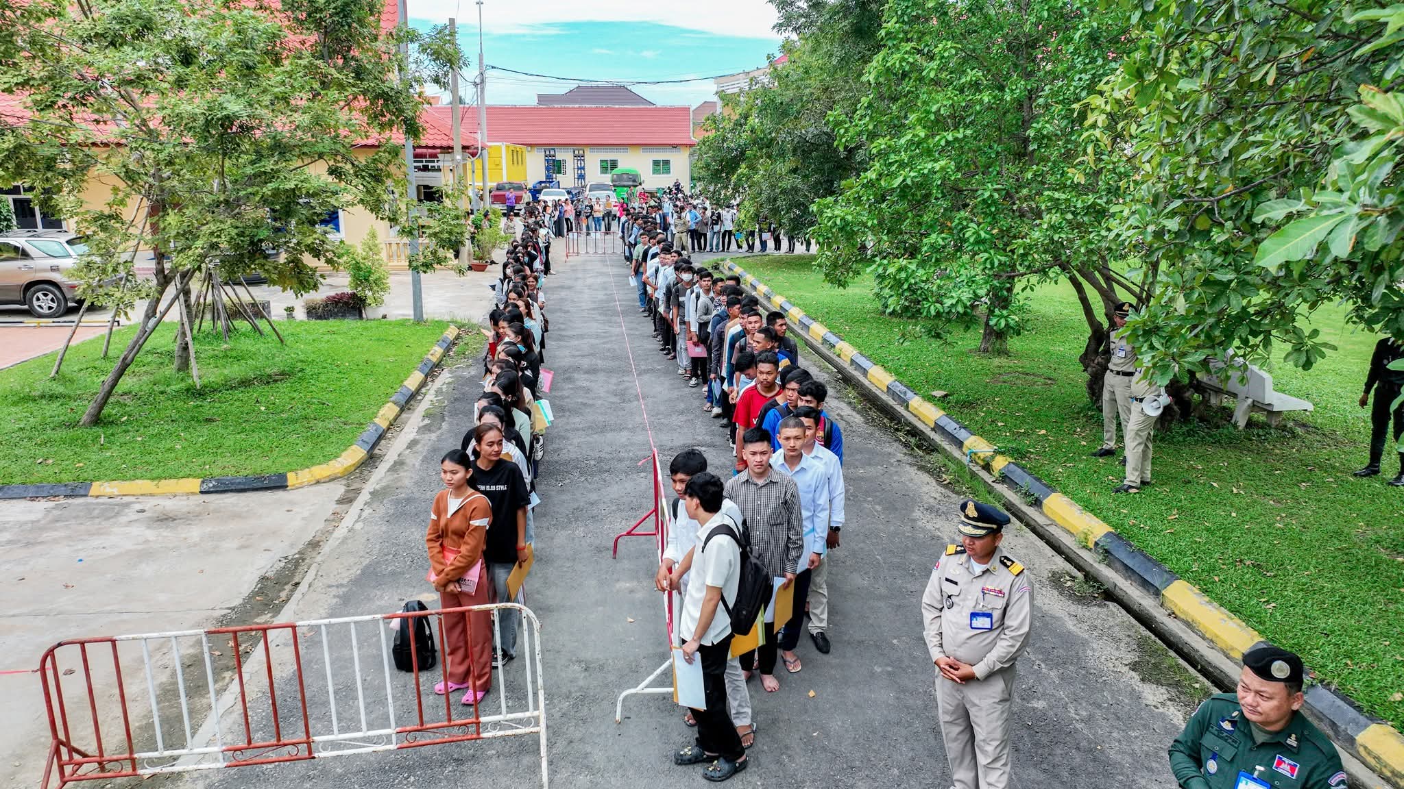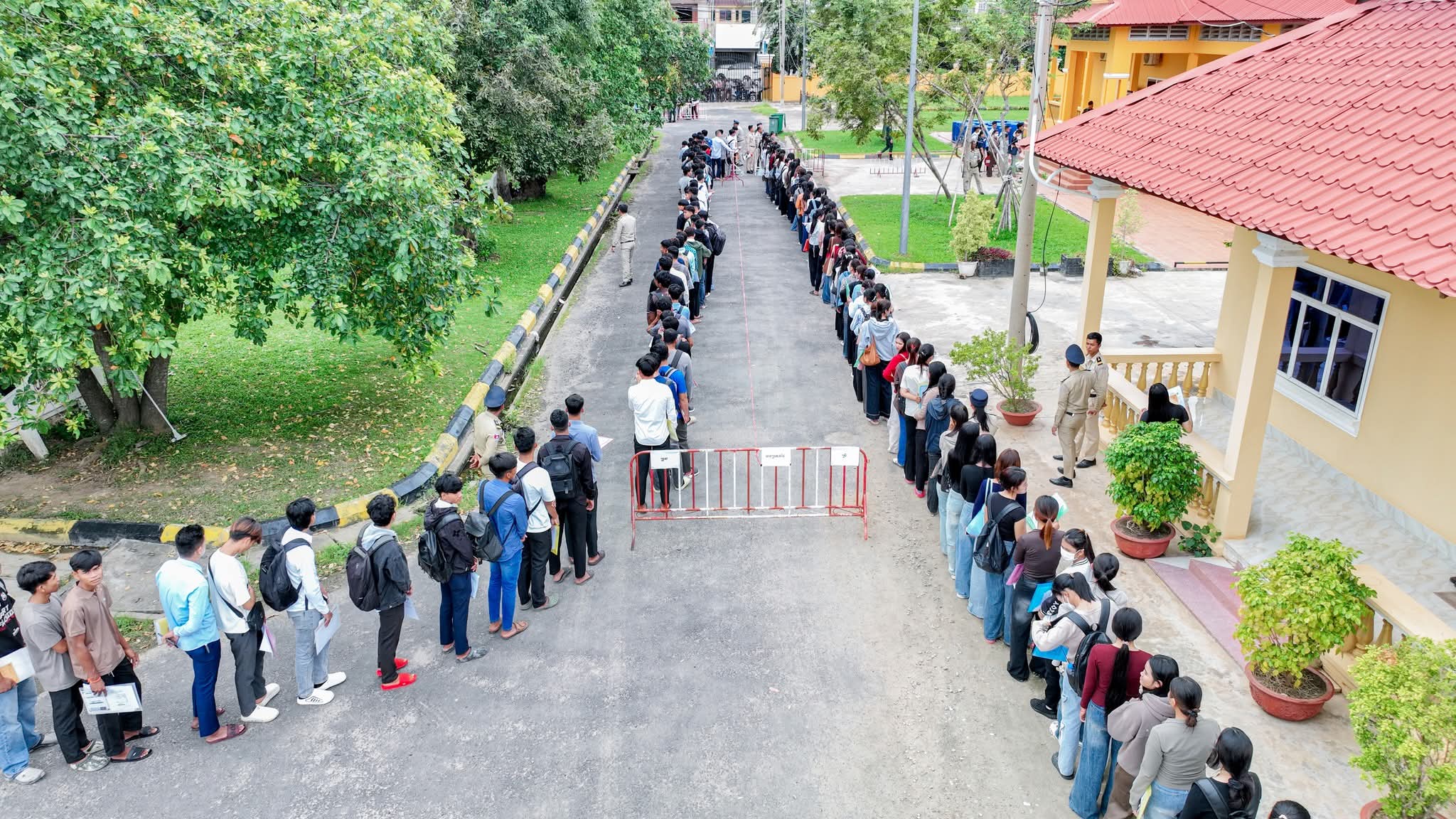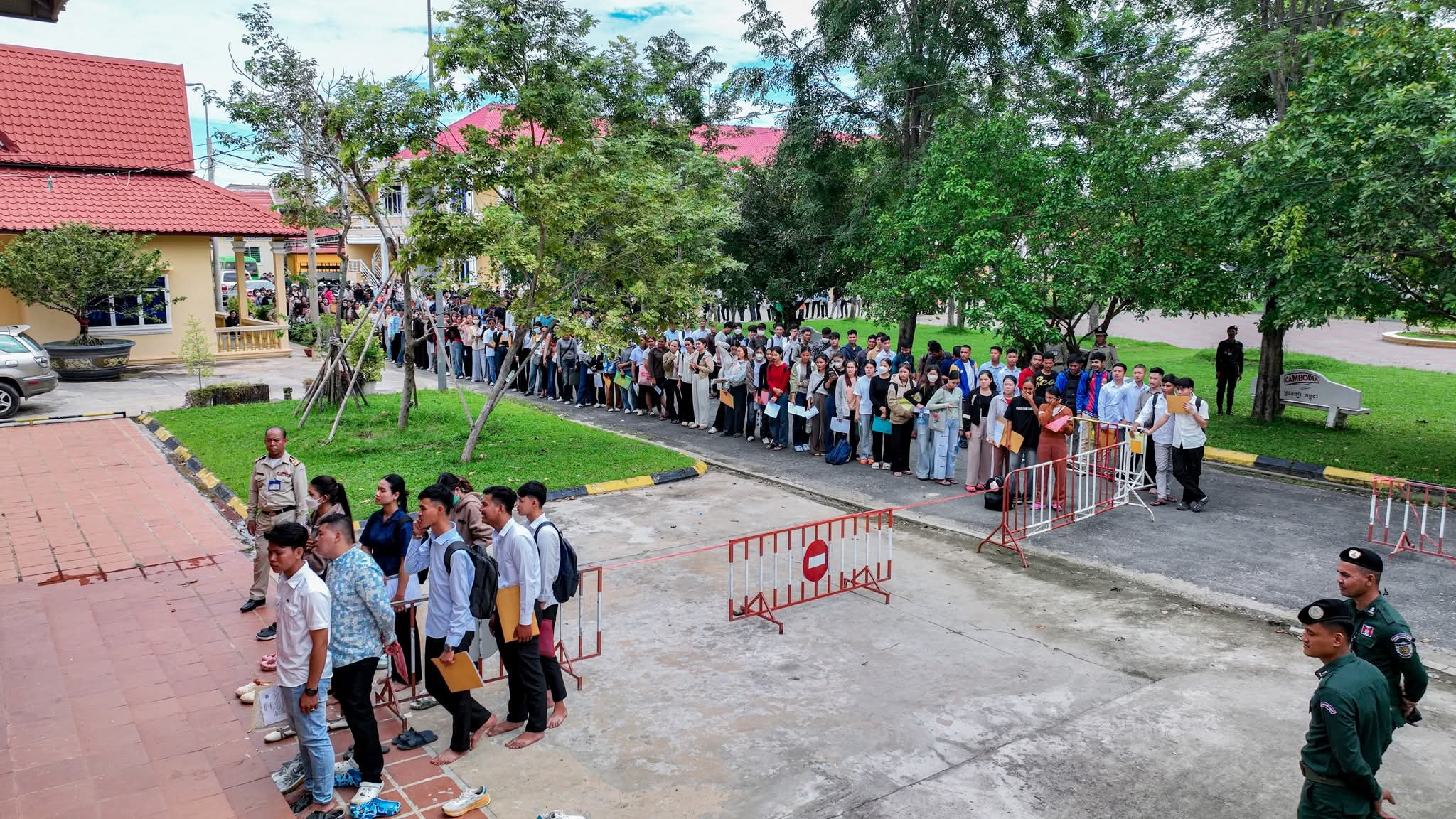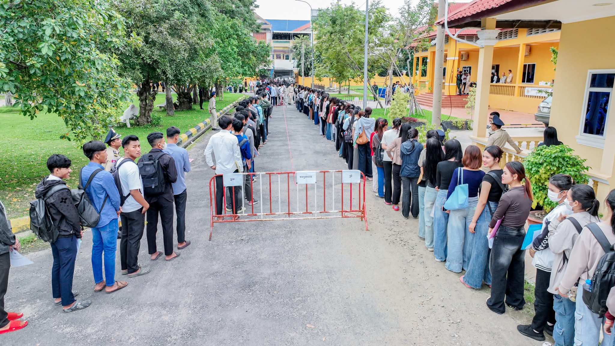 ខេត្តព្រៃវែង ៖ ថ្ងៃចន្ទ ១៣រោច ខែអស្សុជ ឆ្នាំម្សាញ់ សប្តស័ក ពុទ្ធសករាជ ២៥៦៩ ត្រូវនឹងថ្ងៃទី២០ ខែតុលា ឆ្នាំ២០២៥ ស្នងការដ្ឋាននគរបាលខេត្តព្រៃវែង យោងតាមប្រសាសន៍ណែនាំ ចង្អុលបង្ហាញរបស់លោកឧត្តមសេនីយ៍ទោ ឈឿន ប៊ុនឆន ស្នងការ នៃស្នងការដ្ឋាននគរបាលខេត្ត និងជាប្រធានអនុគណៈកម្មការ ប្រឡងប្រជែងជ្រើសរើស ក្របខ័ណ្ឌមន្ត្រីនគរបាលជាតិ នៃស្នងការដ្ឋាននគរបាលខេត្តព្រៃវែង កម្លាំងនគរបាលបានធ្វើការពិនិត្យដំណើរការផ្តល់ពាក្យ និងទទួលពាក្យសម្រាប់បេក្ខជន ប្រឡងប្រជែងជ្រើសរើស ក្របខ័ណ្ឌមន្ត្រីនគរបាលជាតិបំពេញជួសឆ្នាំ២០២៥ នៅសាលប្រជុំធំ ទួលបារាយណ៍អណ្ដែត ស្នងការដ្ឋាននគរបាលខេត្តព្រៃវែង៕ដោយសហការី