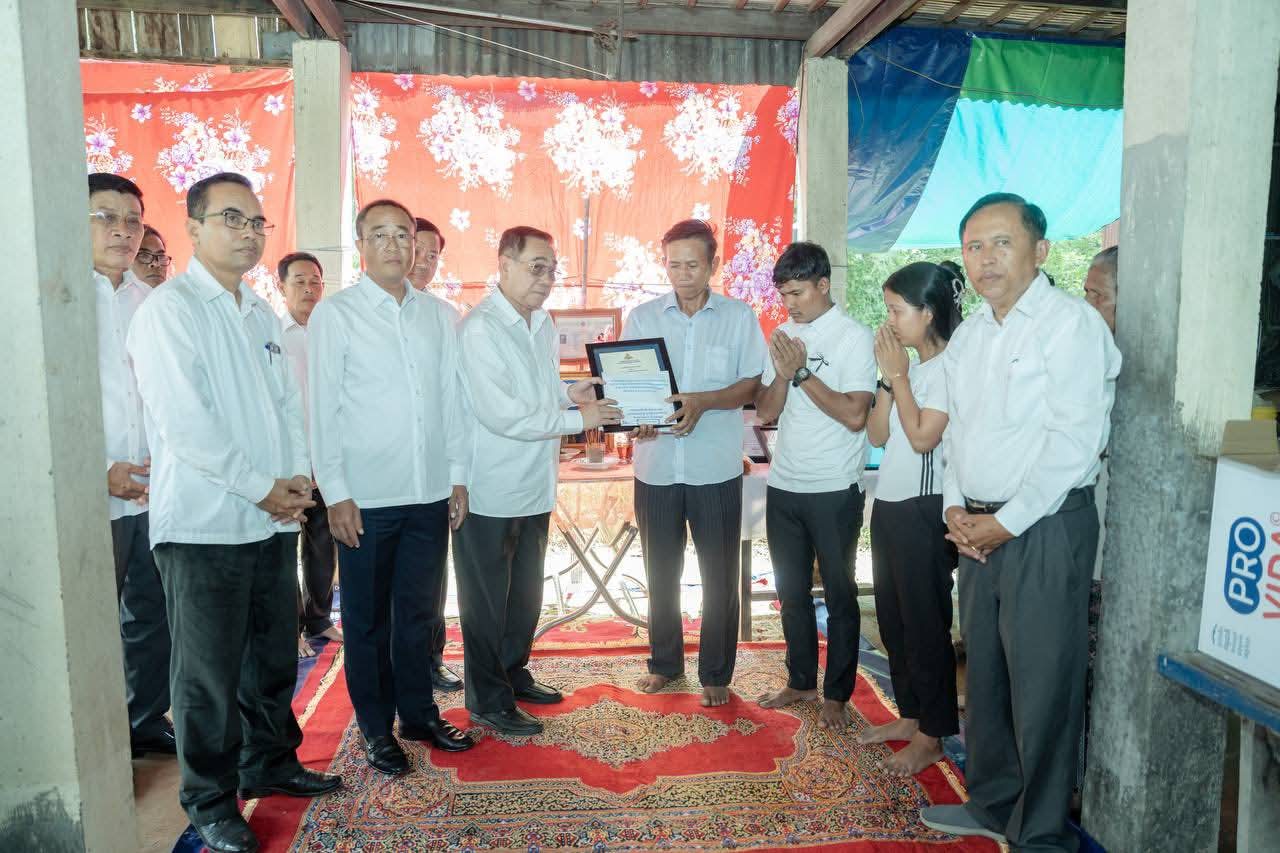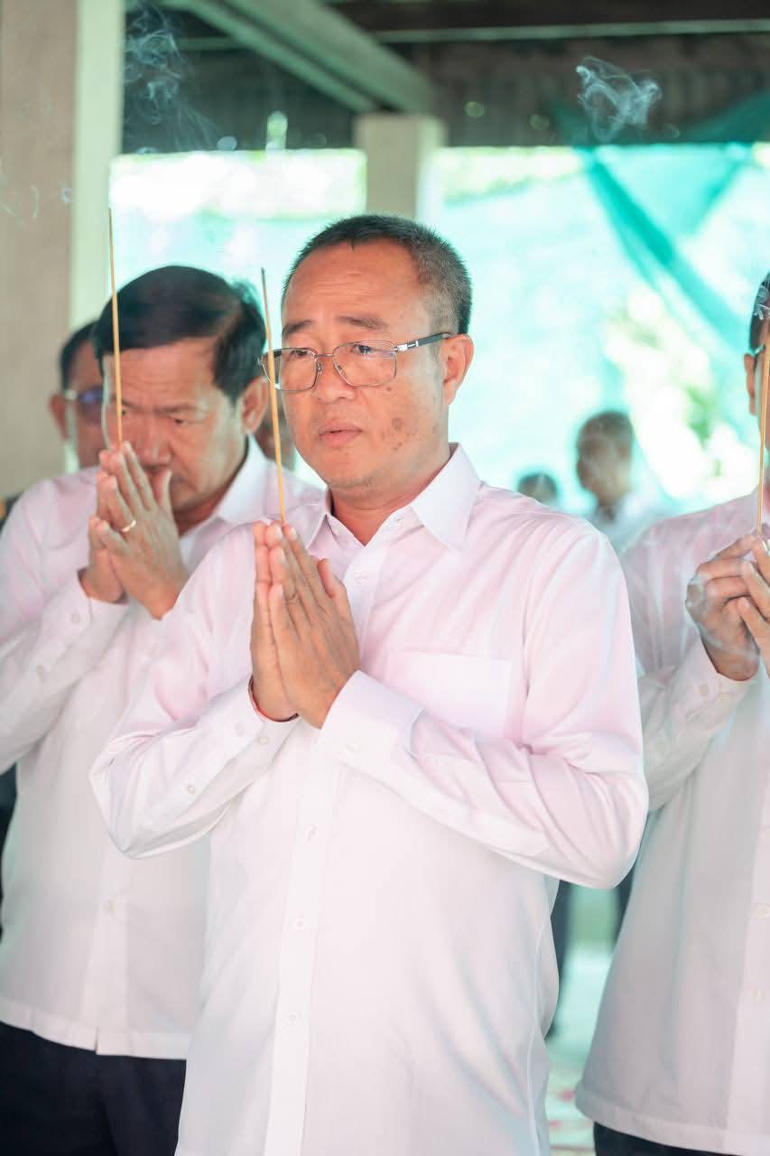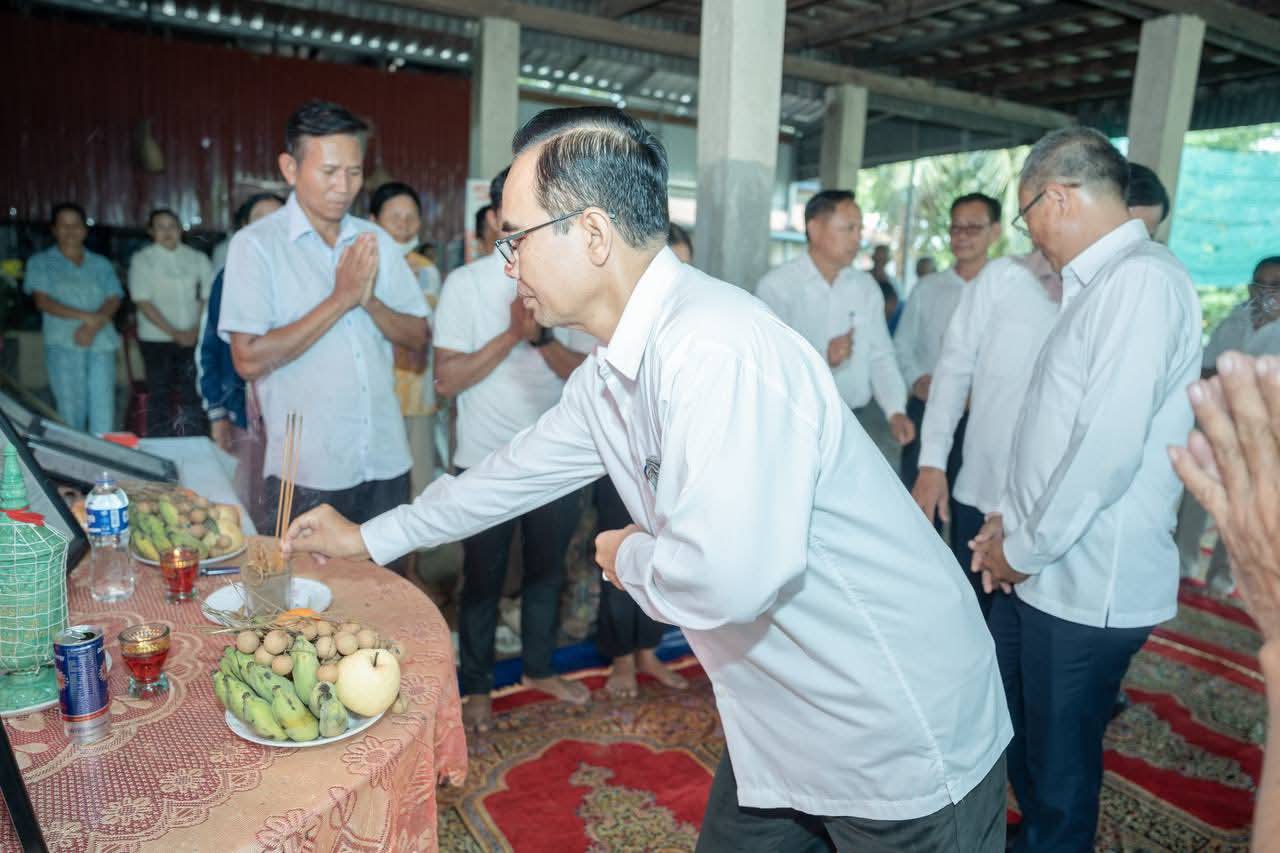(ព្រៃវែង) :នារសៀលថ្ងៃអង្គារ ១១កើត ខែស្រាពណ៍ ឆ្នាំម្សាញ់ សប្តស័ក ពុទ្ធសករាជ ២៥៦៩ ត្រូវនឹងថ្ងៃទី៥ ខែសីហា ឆ្នាំ២០២៥ នេះឯកឧត្តម សួន សុម៉ាលីន អភិបាល នៃគណៈ អភិបាលខេត្តព្រៃវែង រួមជាមួយថ្នាក់ដឹកនាំខេត្ត បានអញ្ជើញអមដំណើរ ឯកឧត្តម អ៊ូ វណ្ណា អនុរដ្ឋលេខាធិការក្រសួងមហាផ្ទៃ និងជានាយករងខុទ្ទកាល័យប្រចាំការ តំណាងដ៏ខ្ពង់ខ្ពស់ ឯកឧត្តមអភិសន្តិបណ្ឌិត ស សុខា ឧបនាយករដ្ឋមន្ត្រី រដ្ឋមន្ត្រីក្រសួងមហាផ្ទៃ និងជាប្រធានក្រុមការងាររាជរដ្ឋាភិបាលចុះមូលដ្ឋានខេត្តព្រៃវែង អញ្ជើញចូលរួមគោរពវិញ្ញាណក្ខន្ធសព អនុសេនីយ៍ត្រី មឿន សាម៉េត ជាយោធិននៃកងពលធំអន្តរាគមន៍លេខ២ កងទ័ពជើងគោកដែលបានទទួលមរណៈភាព កាលពីថ្ងៃទី០១ ខែសីហា ឆ្នាំ២០២៥ ដោយរោគាពាធ ក្នុងពេលបំពេញបេសកកម្មការពារបូរណភាពទឹកដី នៅតាមបណ្ដោយព្រំដែន ដែលពិធីបុណ្យប្រារព្ធធ្វើនៅភូមិដងទង់ ឃុំប្រាសាទ ស្រុកកំពង់ត្របែក ខេត្តព្រៃវែង។