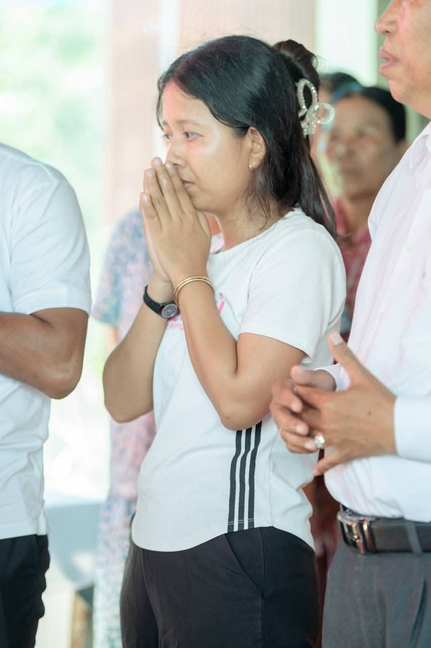 ក្នុងបរិយាកាសដ៏សែនរន្ធត់ក្រៀមក្រំសោកសៅនោះ យេីងខ្ញុំទាំងអស់គ្នា សូមឧទ្ទិសបួងសួងដល់គុណបុណ្យព្រះរតនត្រ័យ វត្ថុស័ក្តិសិទ្ធិទាំងឡាយក្នុងលោក ជួយដឹកនាំដួងវិញ្ញាណក្ខន្ធ លោកអនុសេនីយ៍ត្រី មឿន សាម៉េត ទៅសោយសុខក្នុងឋានសុគតិភព កុំបីឃ្លៀងឃ្លាតឡើយ។