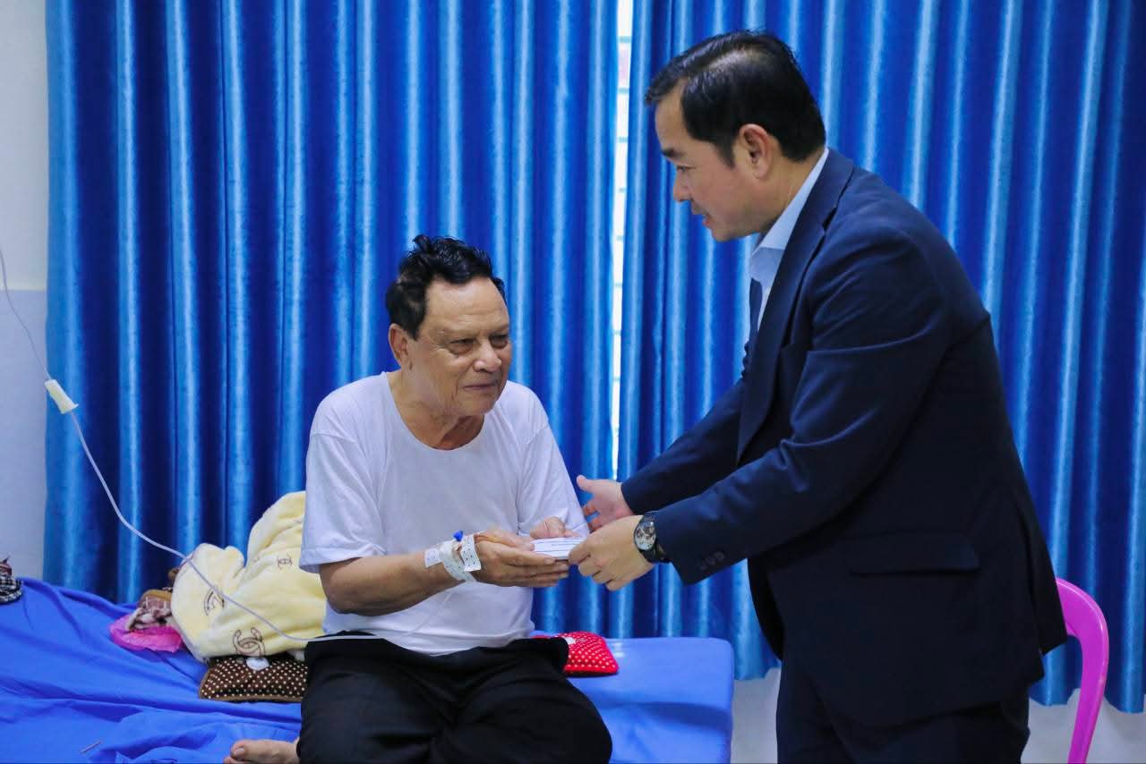 (កំពង់ចាម): បន្ទាប់ពីទទួលបានដំណឹងថា ឯកឧត្តម ខ្លូត ផន ប្រធានក្រុមប្រឹក្សាខេត្តកំពង់ចាម លោកមានបញ្ហាសុខភាព នឹងបានចូលសម្រាកព្យាបាលជំងឺនៅមន្ទីរពេទ្យបង្អែកខេត្តកំពង់ចាម, នៅវេលាម៉ោង១២:៣០ ថ្ងៃត្រង់ ថ្ងៃទី២១ ខែតុលា ឯកឧត្តម អ៊ុន ចាន់ដា អភិបាលនៃគណៈអភិបាលខេត្តកំពង់ចាម បានដឹកនាំក្រុមការងារ អញ្ជើញជួបសួរសុខទុក្ខ និងជូនថវិកាមួយចំនួន ដល់ឯកឧត្តមប្រធានក្រុមប្រឹក្សាខេត្ត ដើម្បីលោកយកប្រើប្រាស់តាមការចាំបាច់។