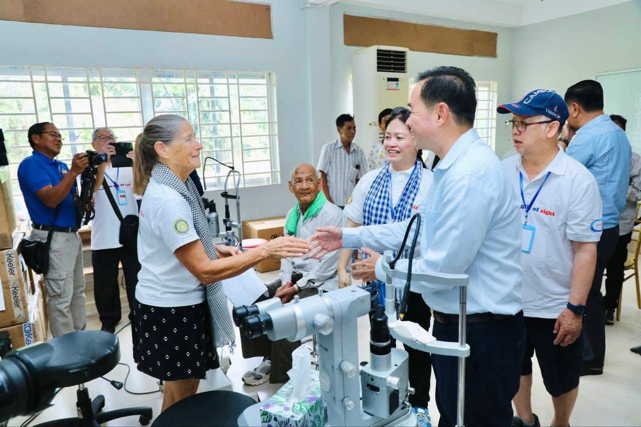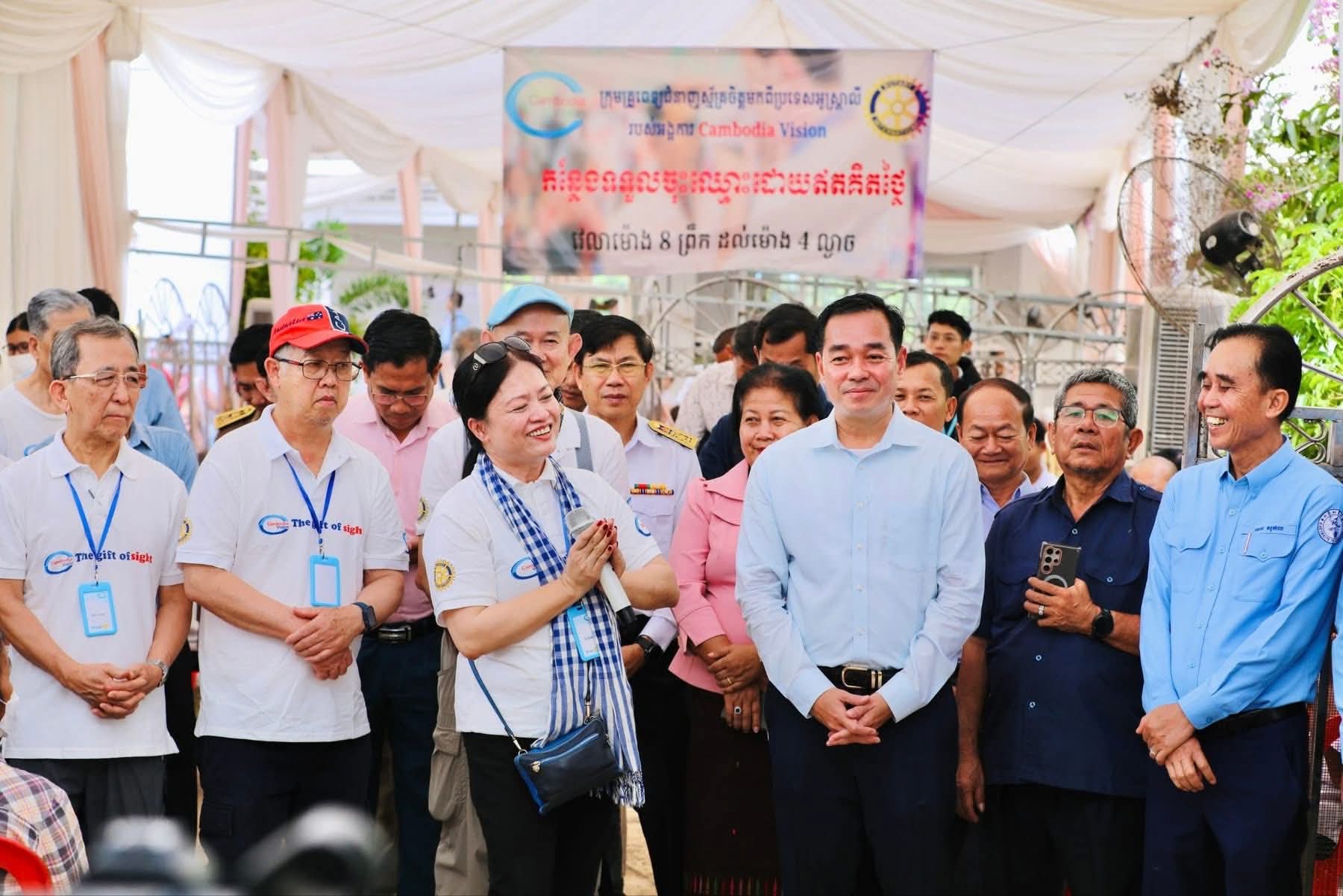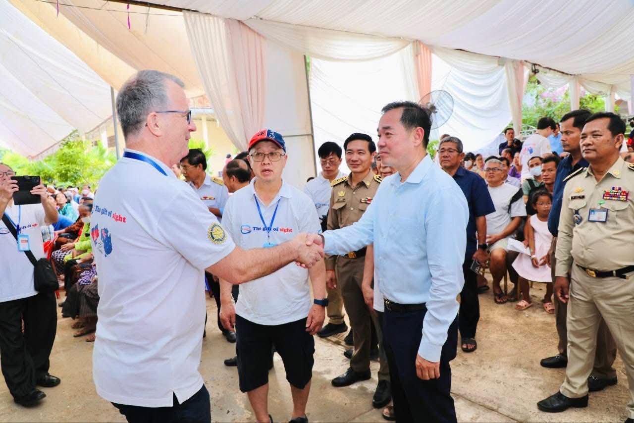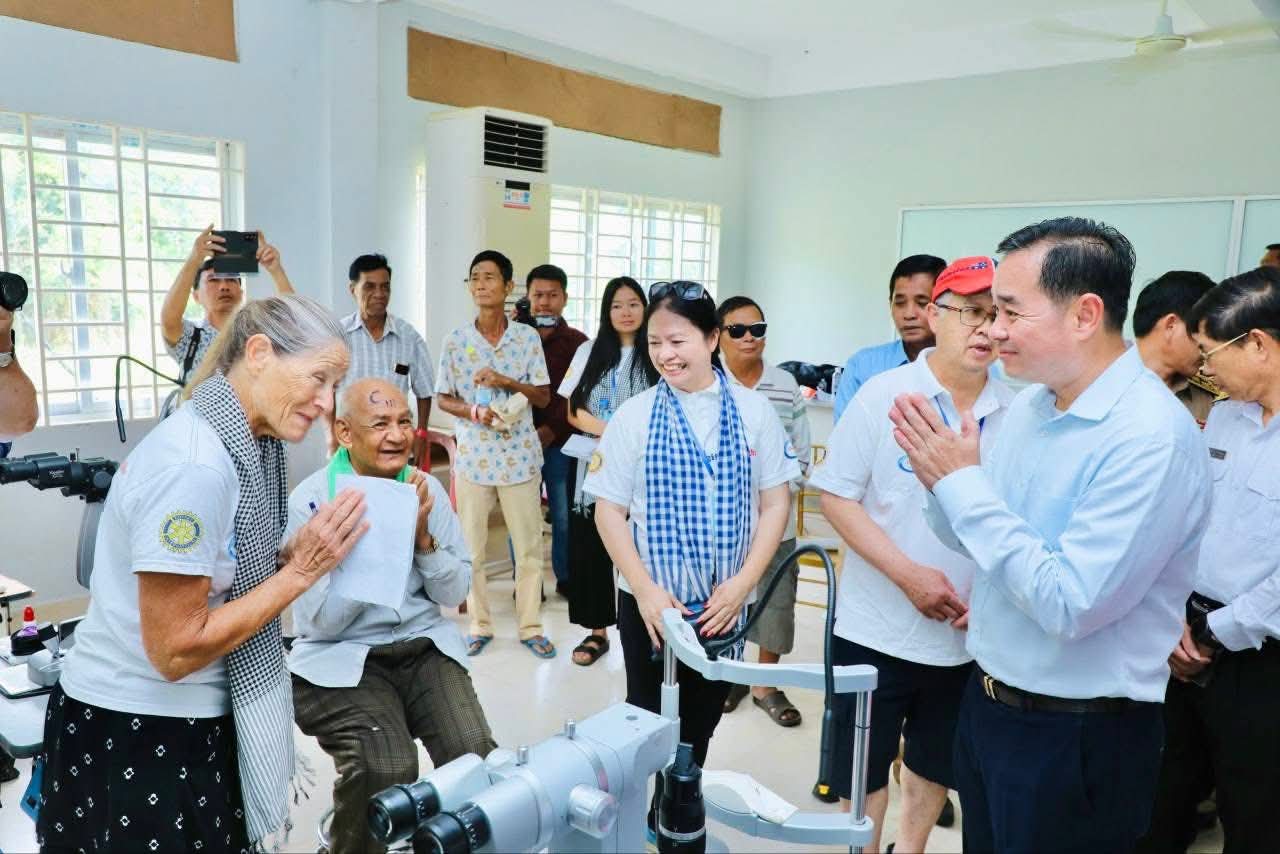 (កំពង់ចាម): អភិបាលនៃគណៈអភិបាលខេត្តកំពង់ចាម ឯកឧត្តម អ៊ុន ចាន់ដា បានថ្លែងអំណរគុណ ចំពោះក្រុមគ្រូពេទ្យជំនាញស្ម័គ្រចិត្តមកពីប្រទេសអូស្ត្រាលី របស់អង្គការ Cambodia Vision ដែលបានលះបង់ពេលវេលាចុះពិនិត្យព្យាបាលជម្ងឺភ្នែកឡើងបាយ ដុះកន្ទុយថ្លែន និងពិនិត្យជម្ងឺ គ ថ្លង់ ដោយឥតគិតថ្លៃ ចាប់ពីថ្ងៃទី១៩ ដល់ថ្ងៃទី២៤ ខែតុលា ឆ្នាំ២០២៥ នៅមជ្ឈមណ្ឌល គរុកោសល្យភូមិភាគខេត្តកំពង់ចាម ស្ថិតក្នុងភូមិទី៦ សង្កាត់វាលវង់ ក្រុងកំពង់ចាម (ជិត វិមានឯករាជ្យ) ។