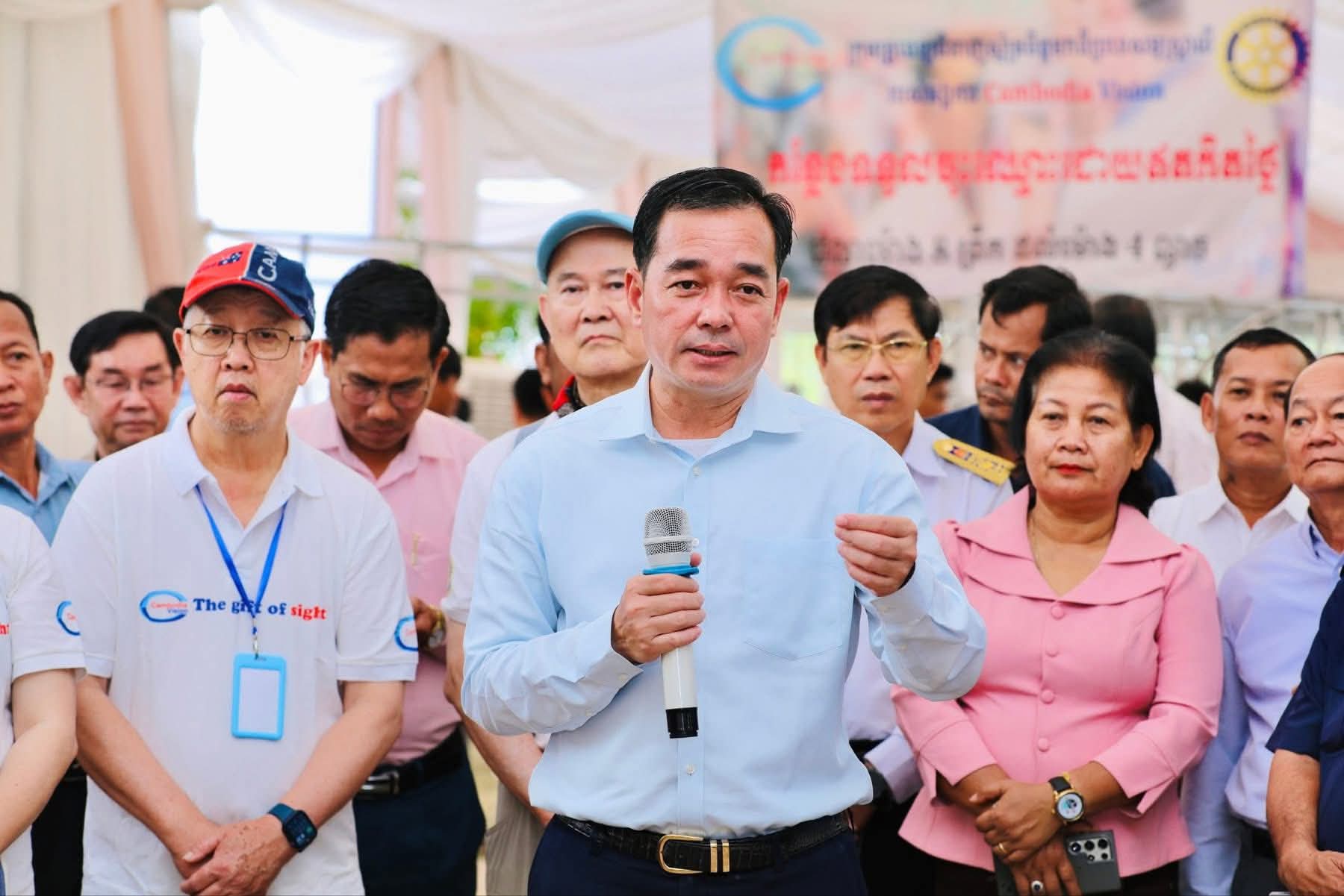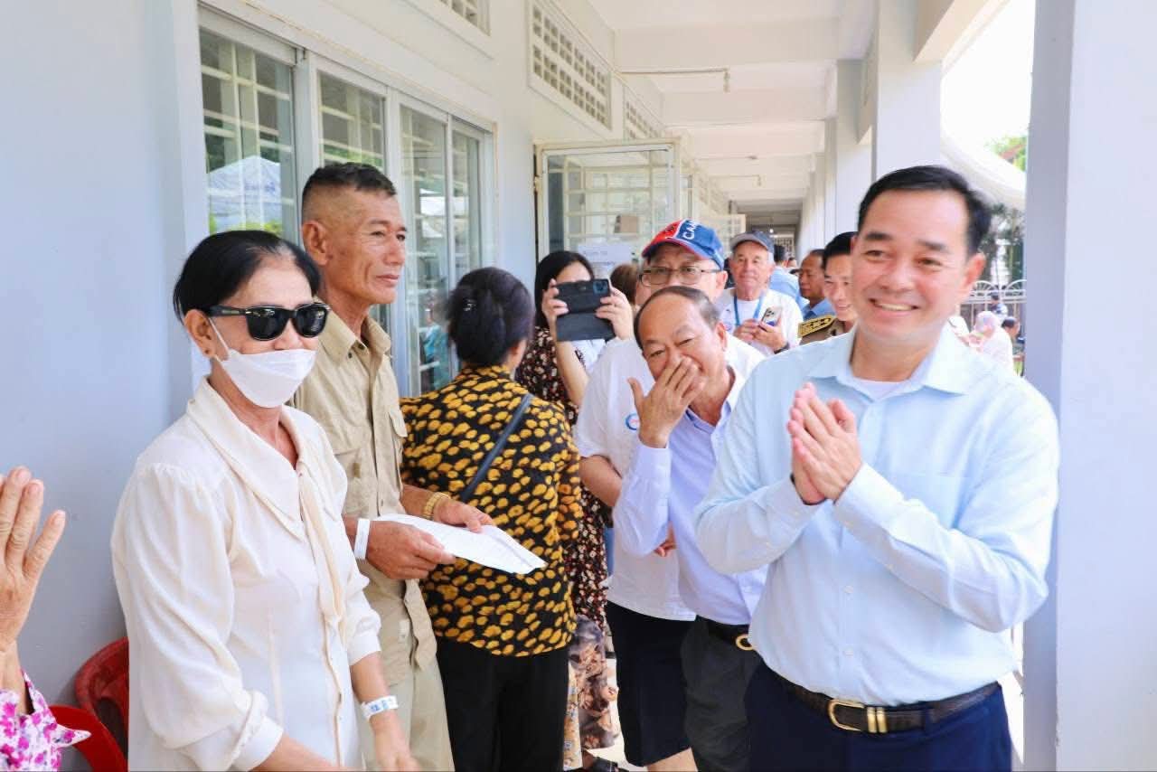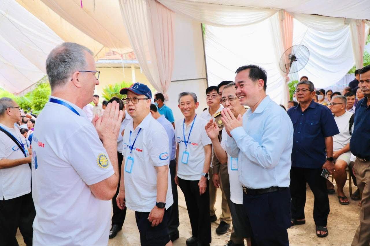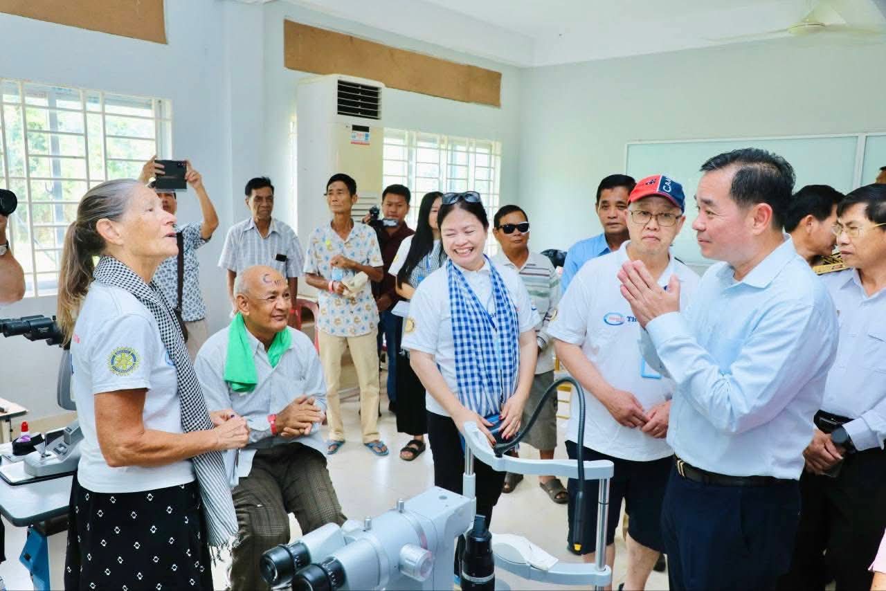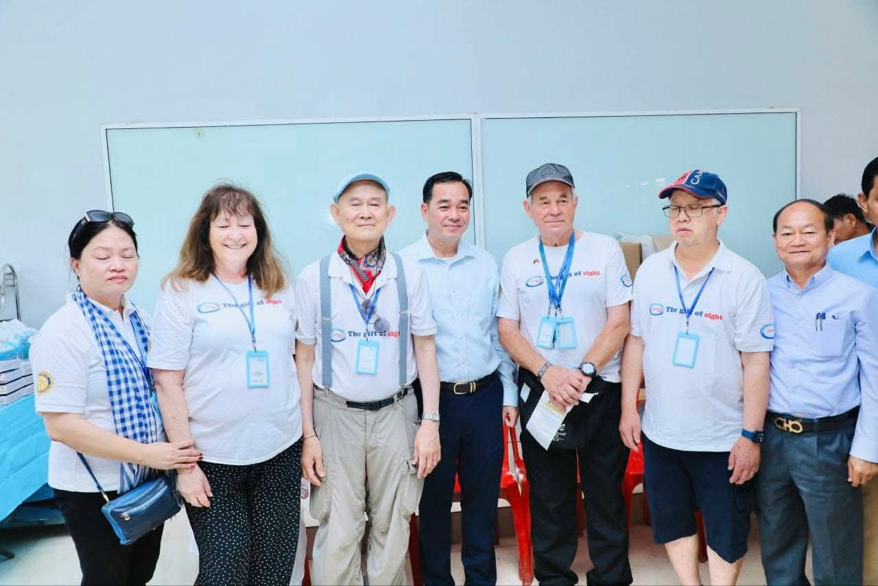 (កំពង់ចាម): អភិបាលនៃគណៈអភិបាលខេត្តកំពង់ចាម ឯកឧត្តម អ៊ុន ចាន់ដា បានថ្លែងអំណរគុណ ចំពោះក្រុមគ្រូពេទ្យជំនាញស្ម័គ្រចិត្តមកពីប្រទេសអូស្ត្រាលី របស់អង្គការ Cambodia Vision ដែលបានលះបង់ពេលវេលាចុះពិនិត្យព្យាបាលជម្ងឺភ្នែកឡើងបាយ ដុះកន្ទុយថ្លែន និងពិនិត្យជម្ងឺ គ ថ្លង់ ដោយឥតគិតថ្លៃ ចាប់ពីថ្ងៃទី១៩ ដល់ថ្ងៃទី២៤ ខែតុលា ឆ្នាំ២០២៥ នៅមជ្ឈមណ្ឌល គរុកោសល្យភូមិភាគខេត្តកំពង់ចាម ស្ថិតក្នុងភូមិទី៦ សង្កាត់វាលវង់ ក្រុងកំពង់ចាម (ជិត វិមានឯករាជ្យ) ។