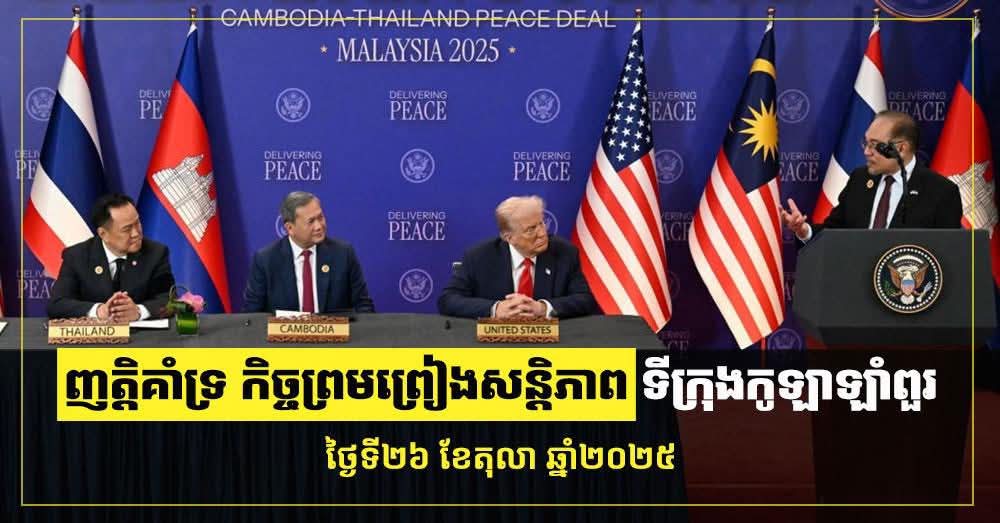 បញ្ជាការដ្ឋានកងរាជអាវុធហត្ថរាជធានីភ្នំពេញ សូមចូលរួមអបអរសាទរ ចំពោះកិច្ចខិតខំប្រឹងប្រែងរបស់រាជរដ្ឋាភិបាលនៃប្រទេសទាំងពីរ ក្រោមការដឹកនាំរបស់ សម្តេចមហាបវរធិបតី ហ៊ុន ម៉ាណែត នាយករដ្ឋមន្ត្រី នៃព្រះរាជាណាចក្រកម្ពុជា និងឯកឧត្តម អានុទីន ចាន់វីរៈគុល នាយករដ្ឋមន្ត្រី នៃព្រះរាជាណាចក្រថៃ និងតួនាទីស្នូលរបស់ ឯកឧត្តម អាន់វ៉ា អ៉ីប្រាហ៊ីម នាយករដ្ឋមន្ត្រីម៉ាឡេស៊ី និងជាប្រធានប្តូរវេនអាស៊ាន ជាពិសេសតួនាទីមិនអាចខ្វះបានរបស់ ឯកឧត្តម ដូណាល់ ត្រាំ ប្រធានាធិបតី សហរដ្ឋអាមេរិក។