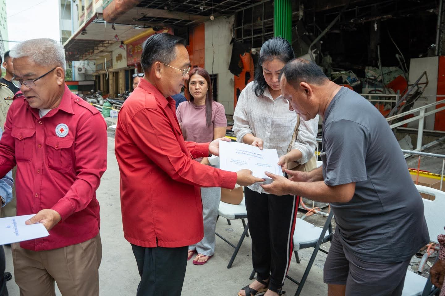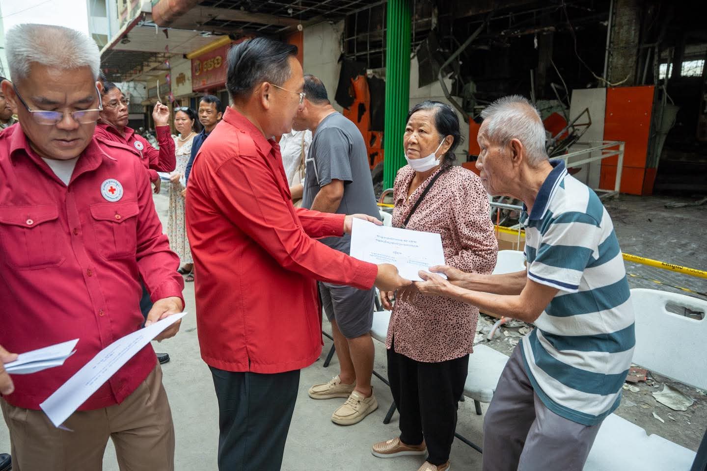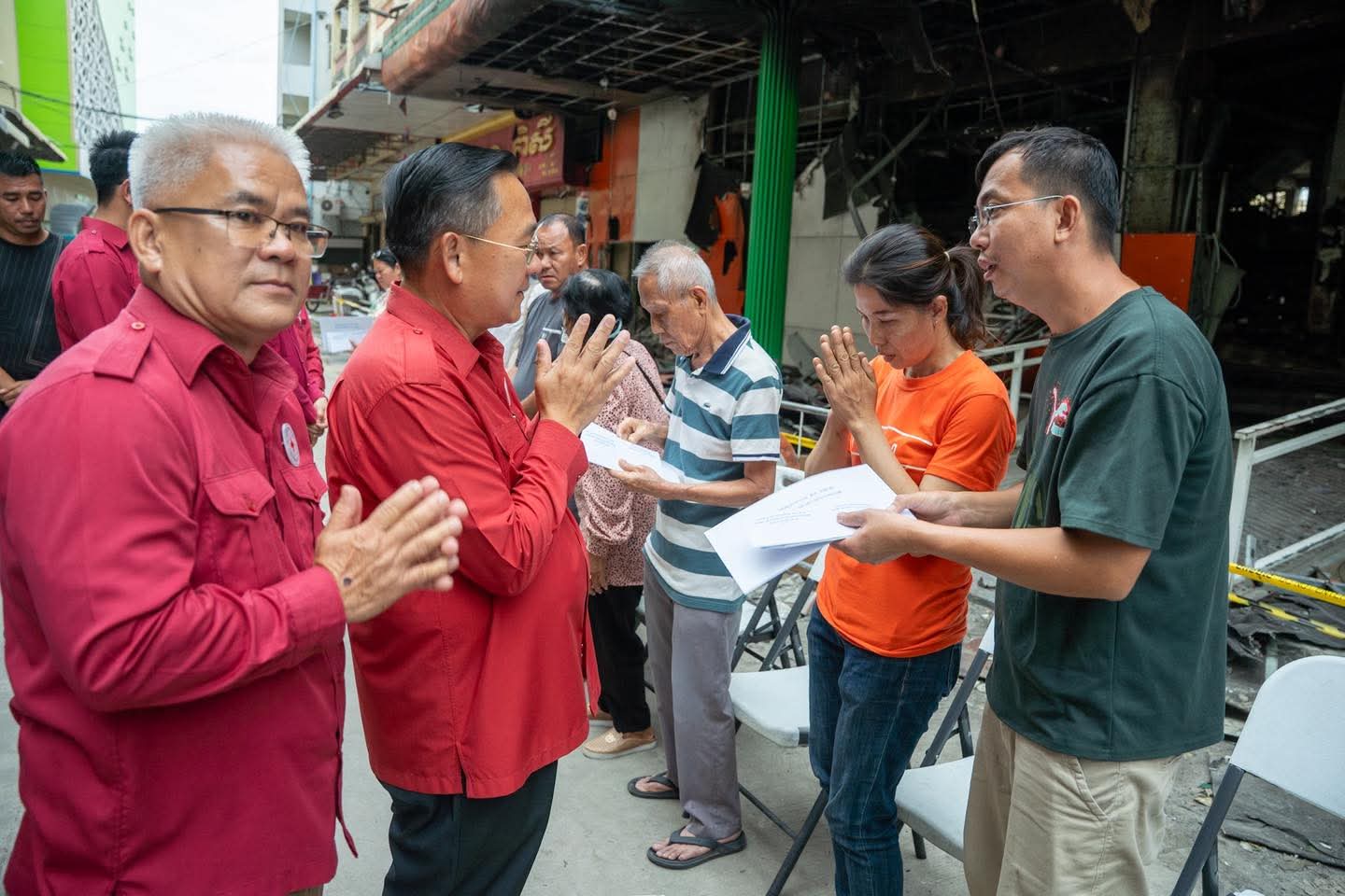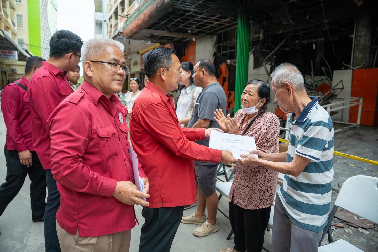 (បាត់ដំបង) :រសៀលថ្ងៃទី២៧ ខែតុលា ឆ្នាំ២០២៥ នេះ ប្រតិភូសាខាកាកបាទក្រហមកម្ពុជាខេត្តបាត់ដំបង ដឹកនាំដោយឯកឧត្តម សុខ លូ អភិបាលខេត្ត និងជាប្រធានគណៈកម្មាធិការសាខា និងសហការី បាននាំយកសារលិខិតរបស់សម្ដេចក្រឡាហោម ស ខេង ឧត្តមប្រឹក្សាផ្ទាល់ព្រះមហាក្សត្រ និងថវិកាមួយចំនួន របស់សាខាកាកបាទក្រហមកម្ពុជា ខេត្តបាត់ដំបង ផ្តល់ជូនប្រជាពលរដ្ឋដែលបានរងគ្រោះដោយអគ្គិភ័យចំនួន៥គ្រួសារ(ស្មើ២៧ល្វែង) ដែលបានកើតឡើងកាលពីយប់ថ្ងៃទី២៣ ឈានចូលថ្ងៃទី២៤ ខែតុលា ឆ្នាំ២០២៥ ដោយបានបំផ្លិចបំផ្លាញលំនៅដ្ឋាន និងទ្រព្យសម្បត្តិផ្ទាល់ខ្លួនជាច្រើន ស្ថិតចំណុចផ្សារទំនើបហេងឆាយលី ភូមិព្រែកមហាទេព សង្កាត់ស្វាយប៉ោ ក្រុងបាត់ដំបង ខេត្តបាត់ដំបង ។