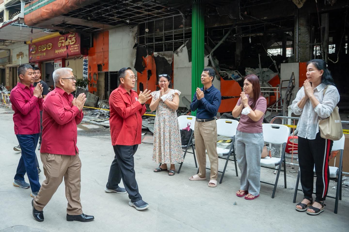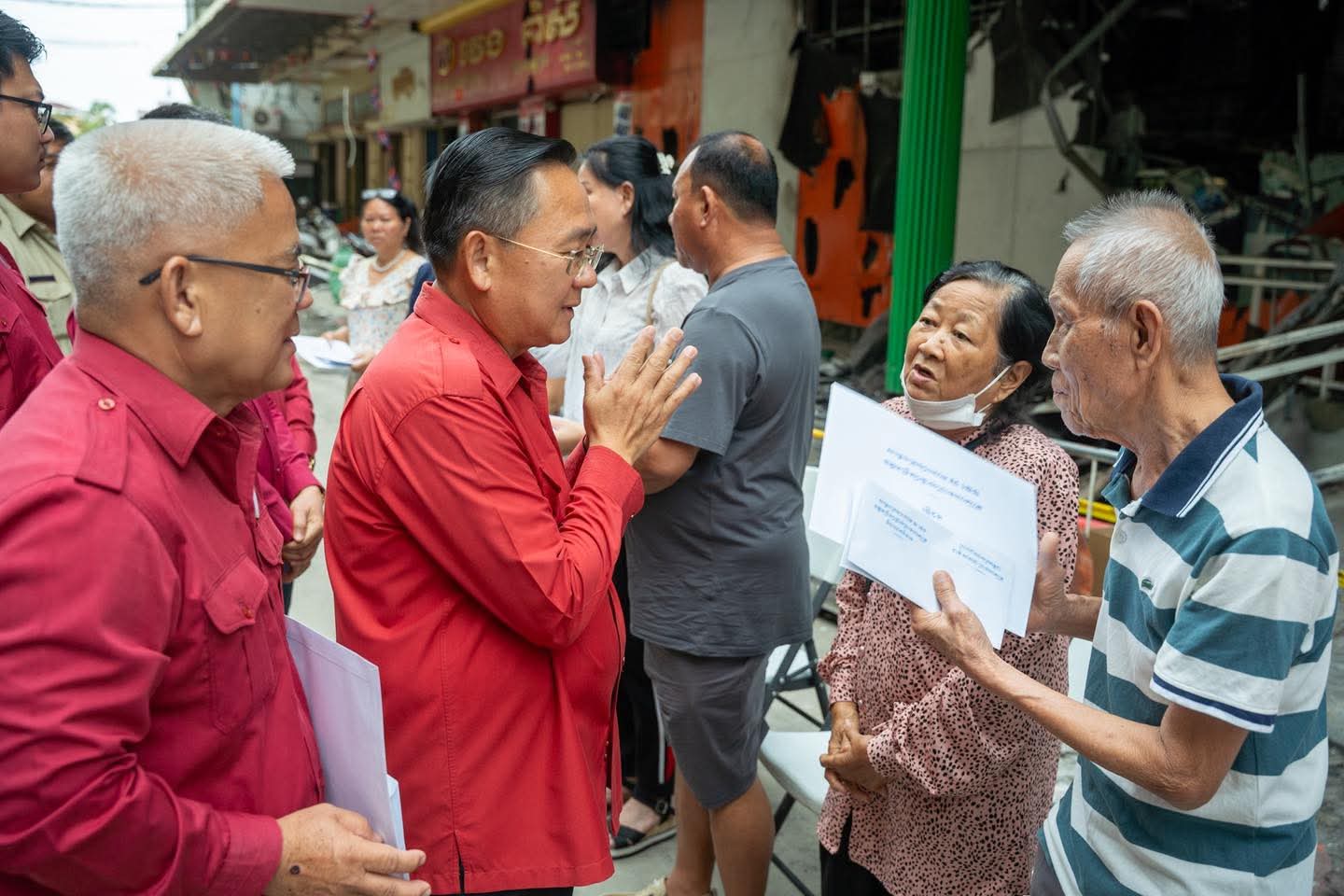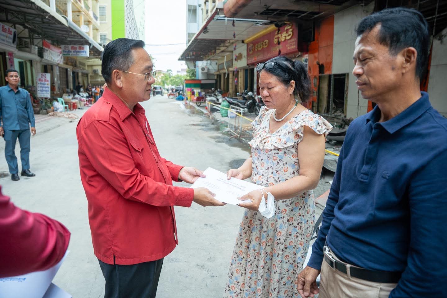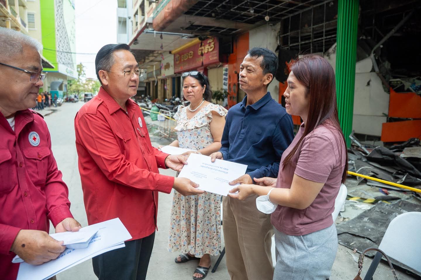 (បាត់ដំបង) :រសៀលថ្ងៃទី២៧ ខែតុលា ឆ្នាំ២០២៥ នេះ ប្រតិភូសាខាកាកបាទក្រហមកម្ពុជាខេត្តបាត់ដំបង ដឹកនាំដោយឯកឧត្តម សុខ លូ អភិបាលខេត្ត និងជាប្រធានគណៈកម្មាធិការសាខា និងសហការី បាននាំយកសារលិខិតរបស់សម្ដេចក្រឡាហោម ស ខេង ឧត្តមប្រឹក្សាផ្ទាល់ព្រះមហាក្សត្រ និងថវិកាមួយចំនួន របស់សាខាកាកបាទក្រហមកម្ពុជា ខេត្តបាត់ដំបង ផ្តល់ជូនប្រជាពលរដ្ឋដែលបានរងគ្រោះដោយអគ្គិភ័យចំនួន៥គ្រួសារ(ស្មើ២៧ល្វែង) ដែលបានកើតឡើងកាលពីយប់ថ្ងៃទី២៣ ឈានចូលថ្ងៃទី២៤ ខែតុលា ឆ្នាំ២០២៥ ដោយបានបំផ្លិចបំផ្លាញលំនៅដ្ឋាន និងទ្រព្យសម្បត្តិផ្ទាល់ខ្លួនជាច្រើន ស្ថិតចំណុចផ្សារទំនើបហេងឆាយលី ភូមិព្រែកមហាទេព សង្កាត់ស្វាយប៉ោ ក្រុងបាត់ដំបង ខេត្តបាត់ដំបង ។