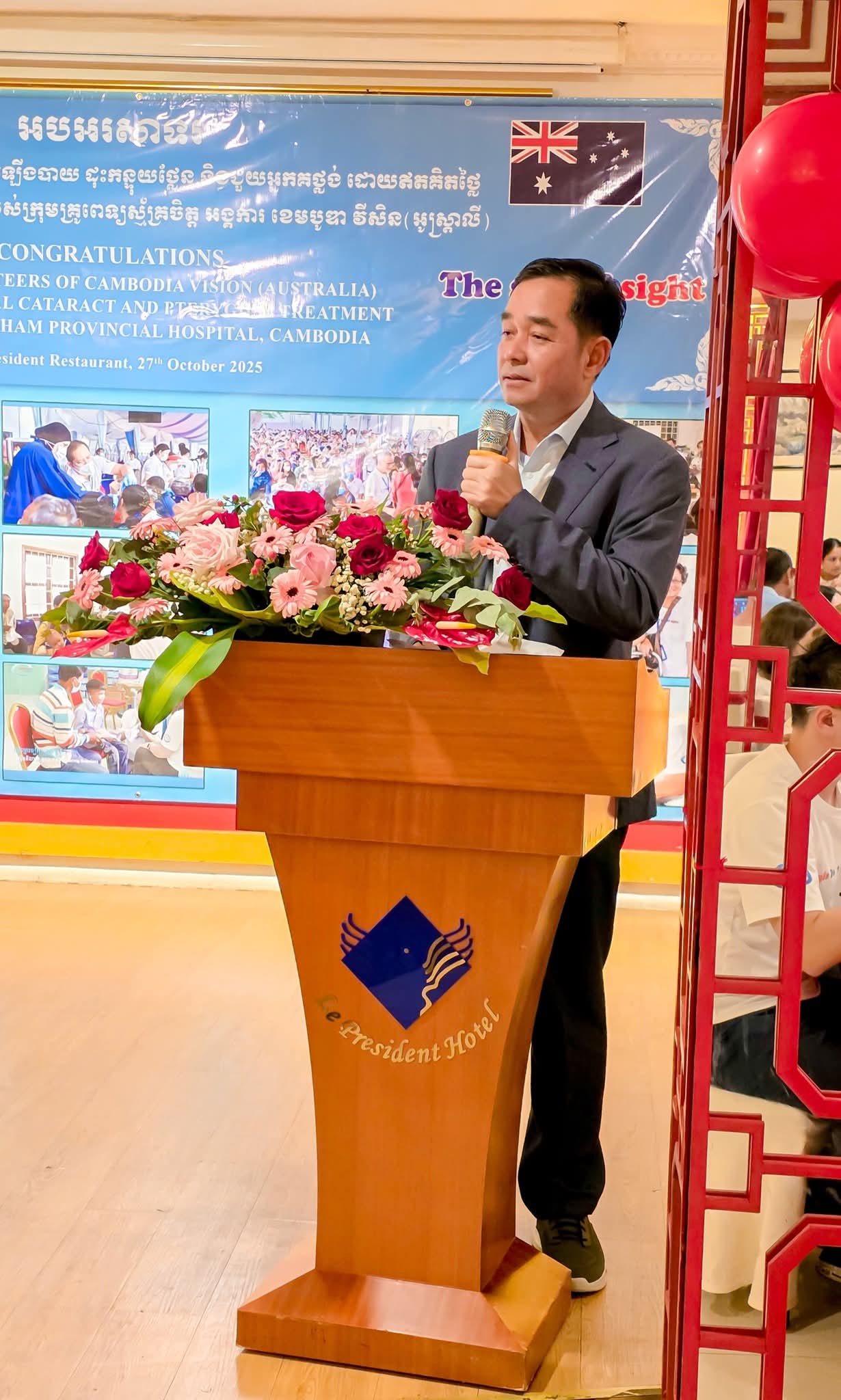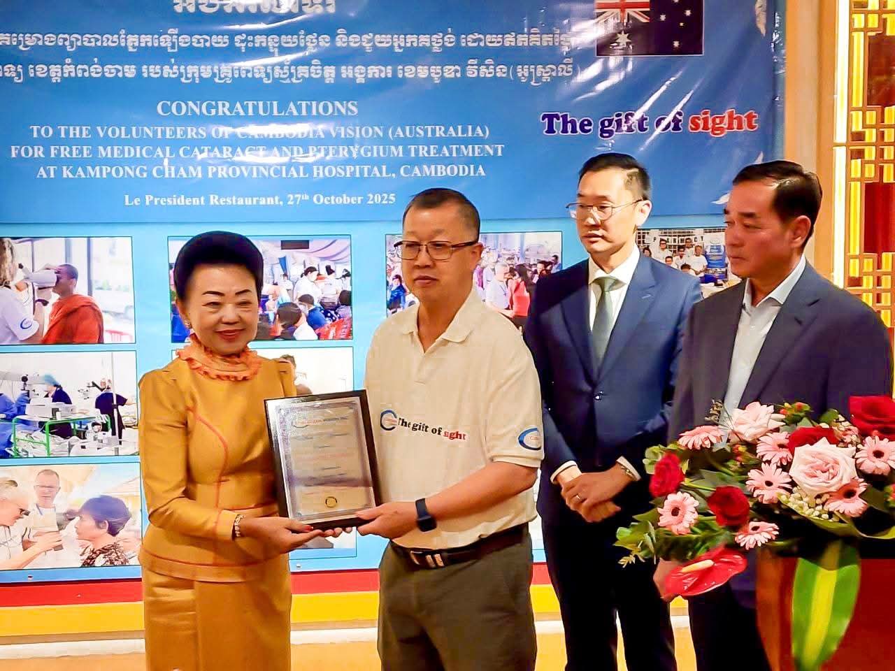 (កំពង់ចាម) :នារាត្រីថ្ងៃទី២៨ ខែតុលា ឆ្នាំ២០២៥ នេះ ឯកឧត្តម អ៊ុន ចាន់ដា អភិបាលនៃគណៈអភិបាលខេត្តកំពង់ចាម បានអញ្ជើញចូលរួមជាភ្ញៀវកិត្តិយសក្នុងពិធីសំណេះសំណាល និងពិសារអាហារសាមគ្គីជាមួយឯកឧត្ដម Derek Yip ឯកអគ្គរដ្ឋទូតអូស្ត្រាលី ប្រចាំព្រះរាជាណាចក្រកម្ពុជា និងក្រុមការងារ Cambodia Vision ដេីម្បីពិភាក្សាការងារ និងរៀបចំផែនការព្យាបាលជំងឺភ្នែក ត្រចៀក ដោយឥតគិតថ្លៃជូនប្រជាជន ប្រចាំឆ្នាំ២០២ ក្នងខេត្តកំពង់ចាម ដែលកម្មវិធីនេះធ្វើឡើង នៅ ភោជនីយដ្ឋាន ប្រេសុីដង រាជធានីភ្នំពេញ។